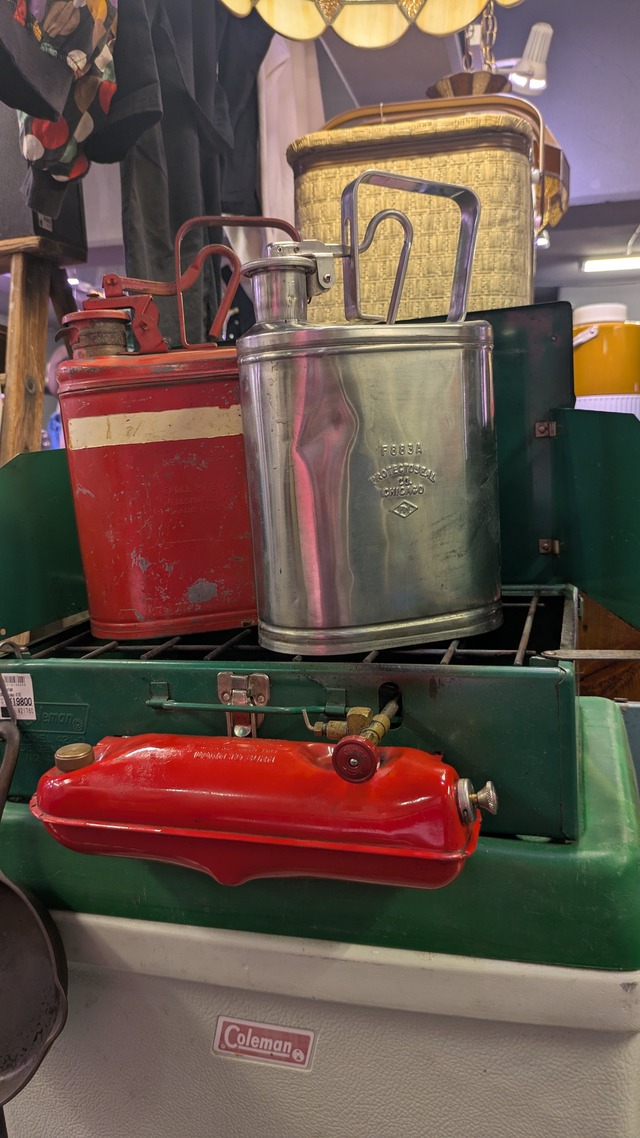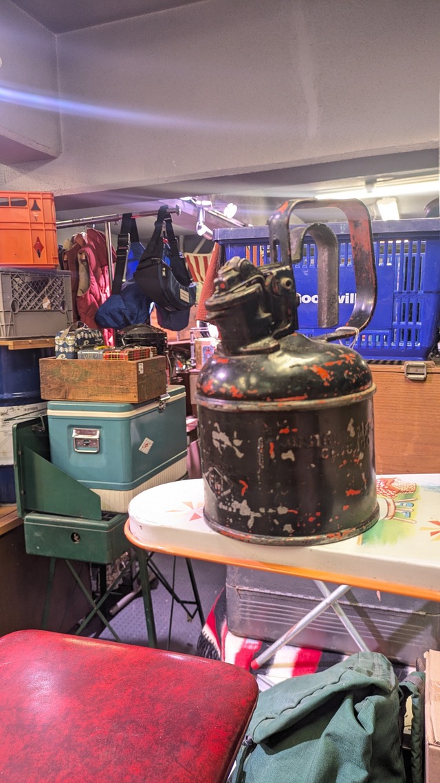 アメリカにて買い付けたアメリカらしい屈強さと 見た目の雰囲気等々で人気のビンテージセーフティー缶です。 中でも人気の高いJUSTRITE社のギミックが変わり種、 またフォルムが抜群に可愛らしい一台です。 これぞアメリカンビンテージが詰まった一品は、。 ビンテージスタイルのキャンプでの使用にも人気で、 用途はもちろん、置いておくだけで絵になる最高なアイテムです! 約2ガロン程度のストーブなどで必須な灯油などに人気のサイズです。 屈強なボディなので、ホワイトガソリンや灯油、 パラフィン系のオイルなどの携行缶におすすめです! 当店の扱うアイテムは、全て一点物となっております。 同じものの無い唯一無二のアイテムを是非ご愛用くださいませ。 こちらのアイテムはビンテージ品となります。 画像にありますように古い物になりますが、 漏れなどもなく使用に関して支障のある箇所等もありません。 ビンテージ・Used品となりますので、 色やサイズ、状態等で気になる点がありましたら、お気軽にお問い合わせください。 Size 約2ガロン程度 縦 約32cm 底部直径 約24cm <返品・交換> 当店のアイテムは基本的にビンテージ・Used品になり、 返品交換等は承っておりません。 当店の原因による破損や不良等に関しましては、お問い合わせくださいませ。 <注意事項> 当店のアイテムは全て一点物になります。 掲載アイテムは店舗でも販売しておりますので、入れ違いの際は ご了承くださいませ。 また撮影の際に写している周りのアイテム類は対象外になります。