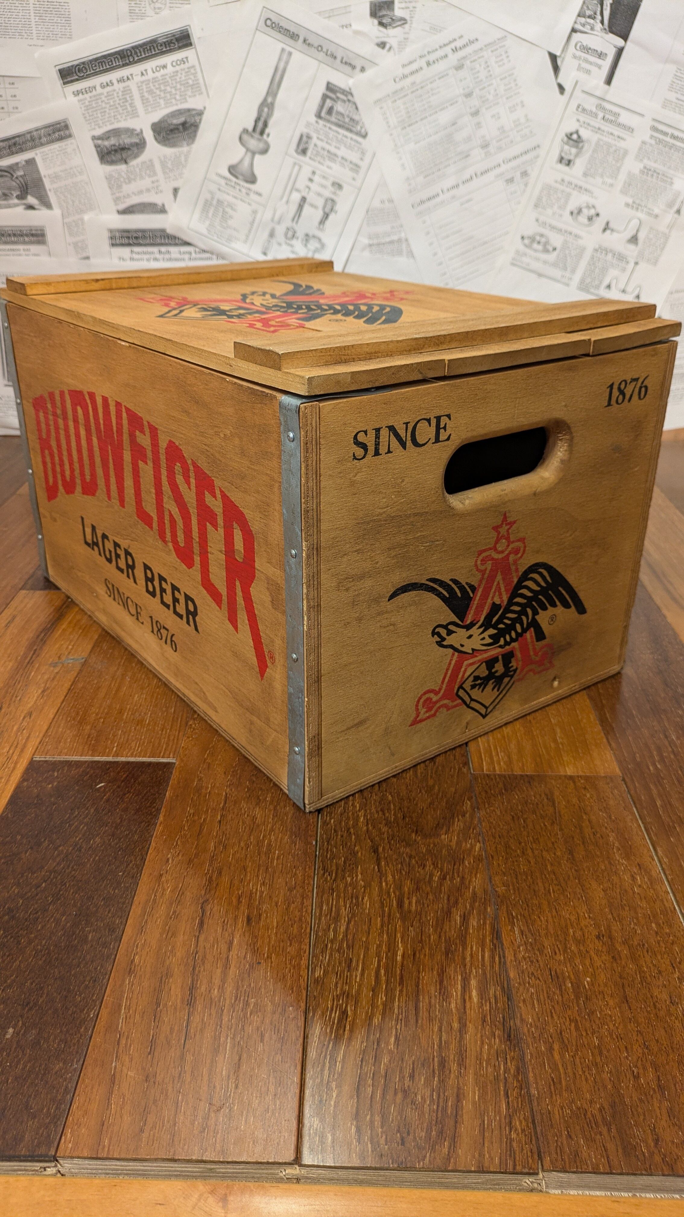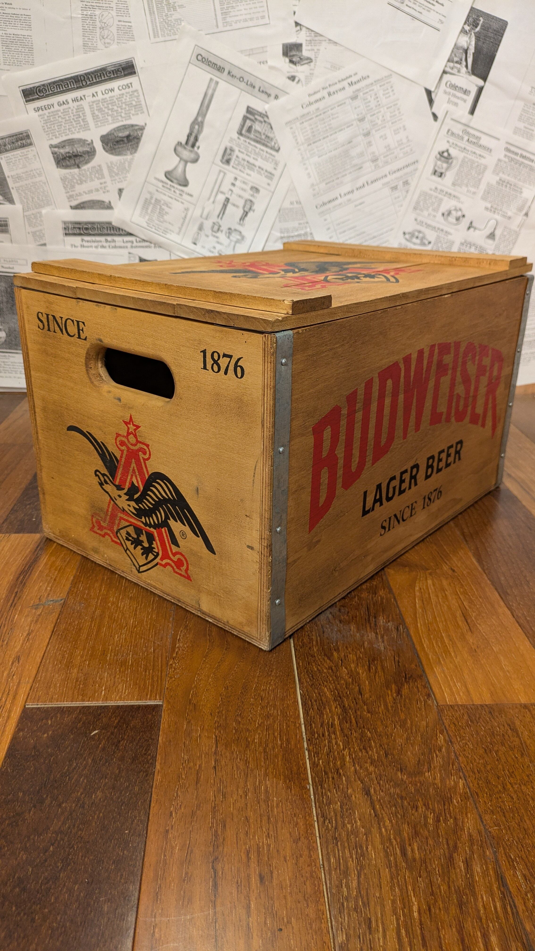 Mint!! Vintage BudWiser WoodBox StorageBox Antique Container ビンテージ バドワイザー ウッドボックス 木箱 収納ボックス