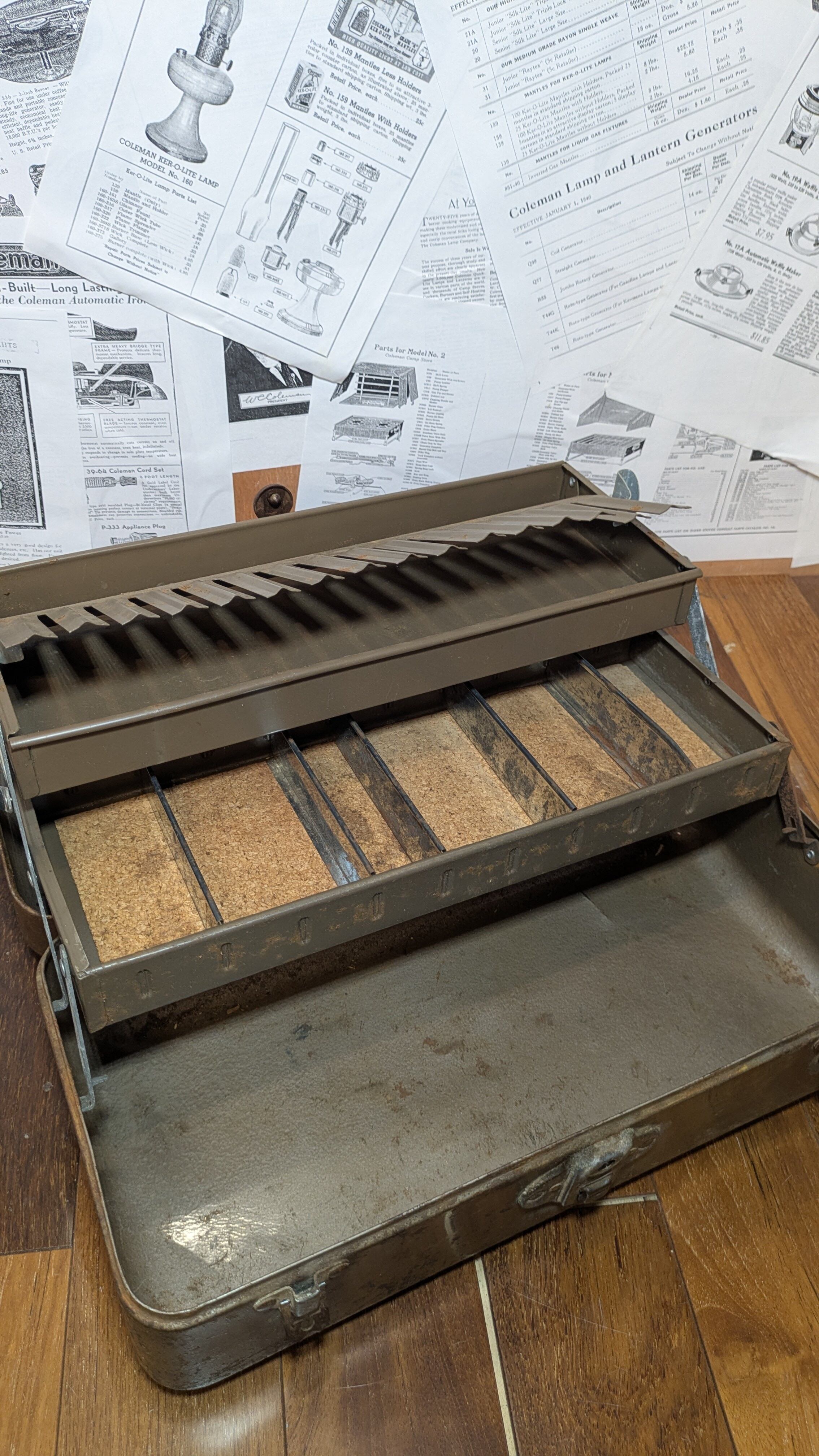 ビンテージJcヒギンスのメタルタックルボックスです。