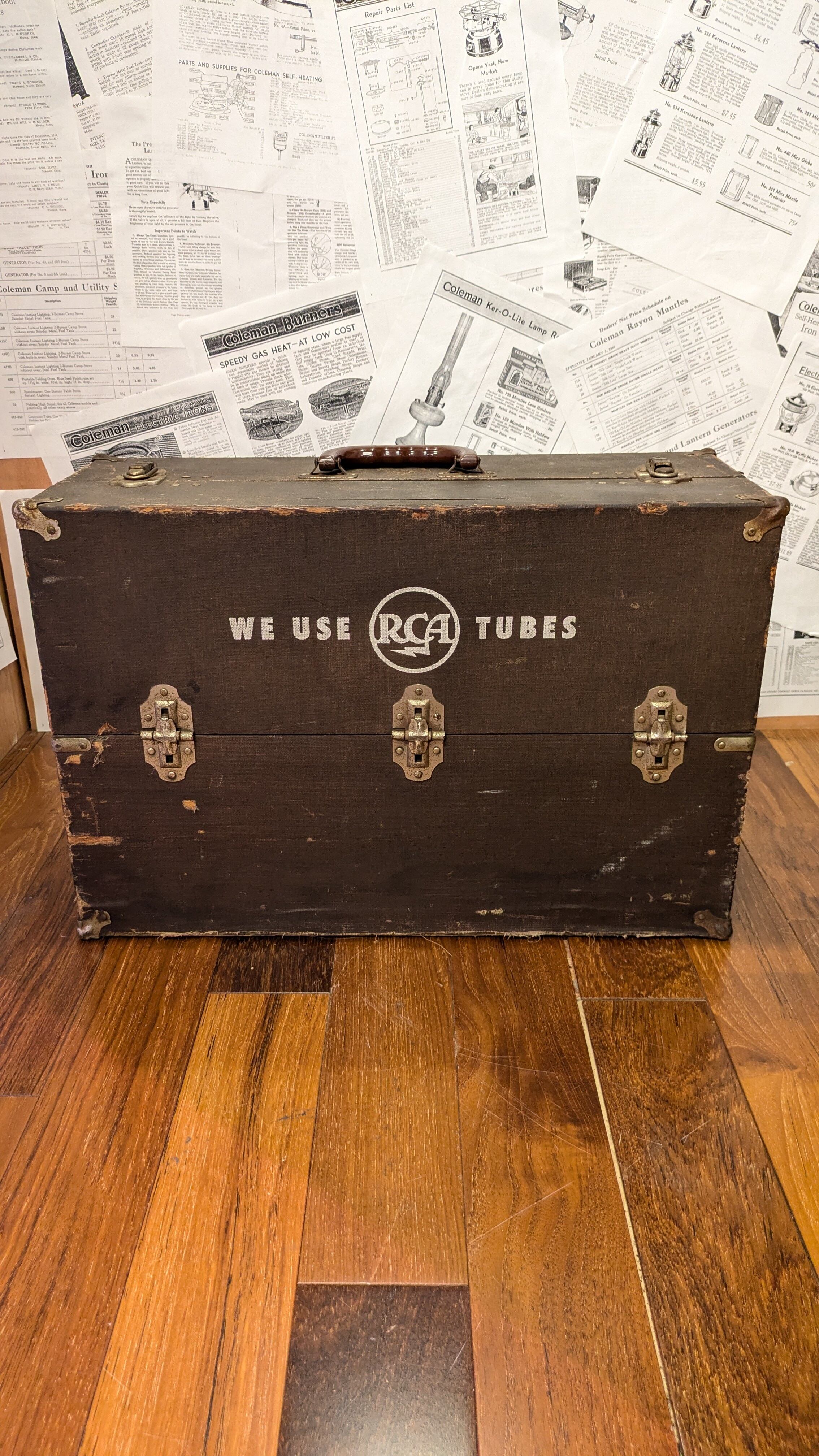 50's Vintage RCA ElectricTubes ServicemanTrunk WoodBox StorageBox Antique ビンテージ ウッドボックス 木箱 収納ボックス サービスマントランク 工具箱