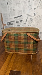 Vintage Picnic Basket StorageBox Antique vintagecamping ビンテージ ピクニックバスケット 収納ボックス チェック柄 籠 バスケット アメリカ ビンテージキャンプ