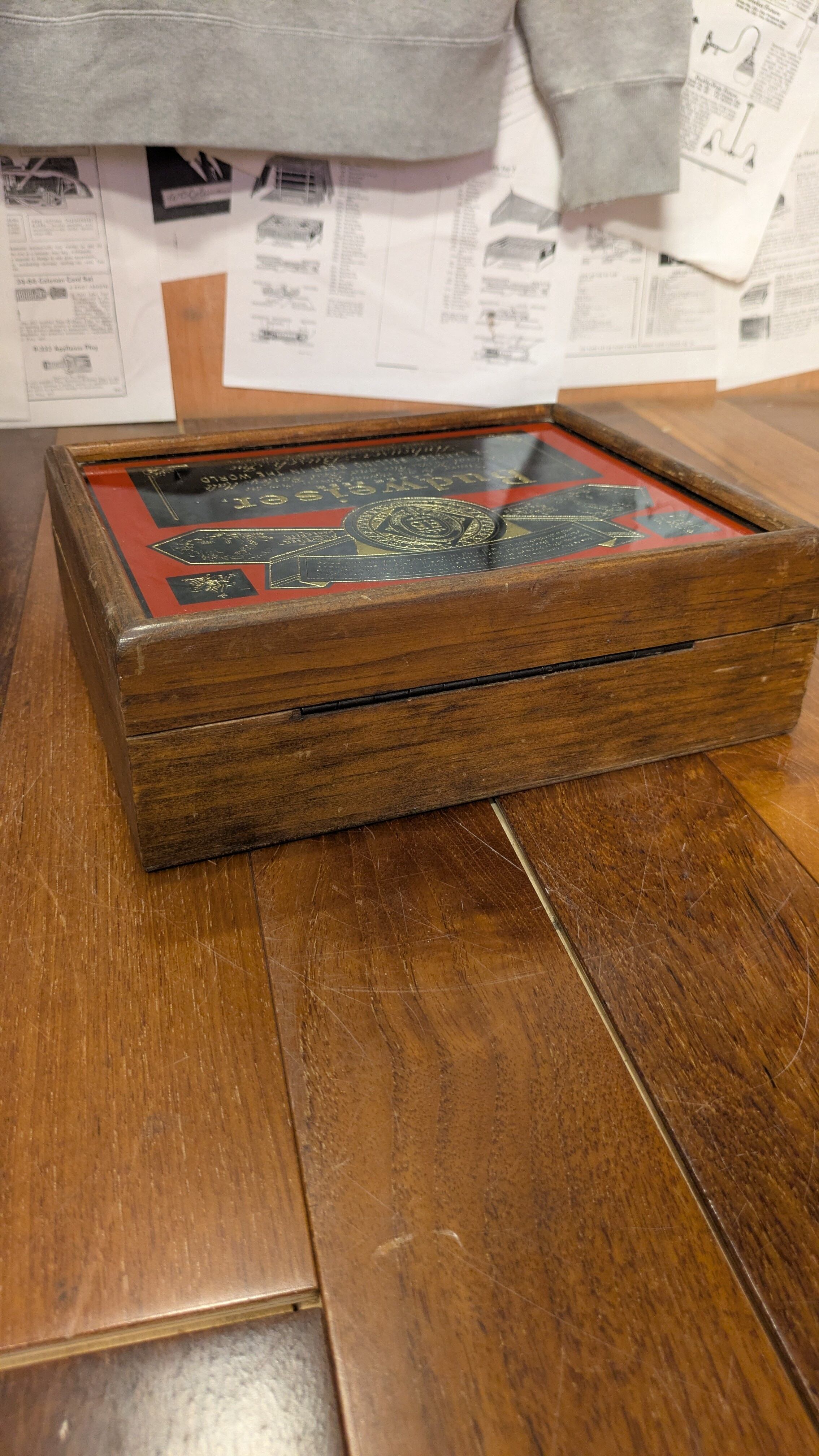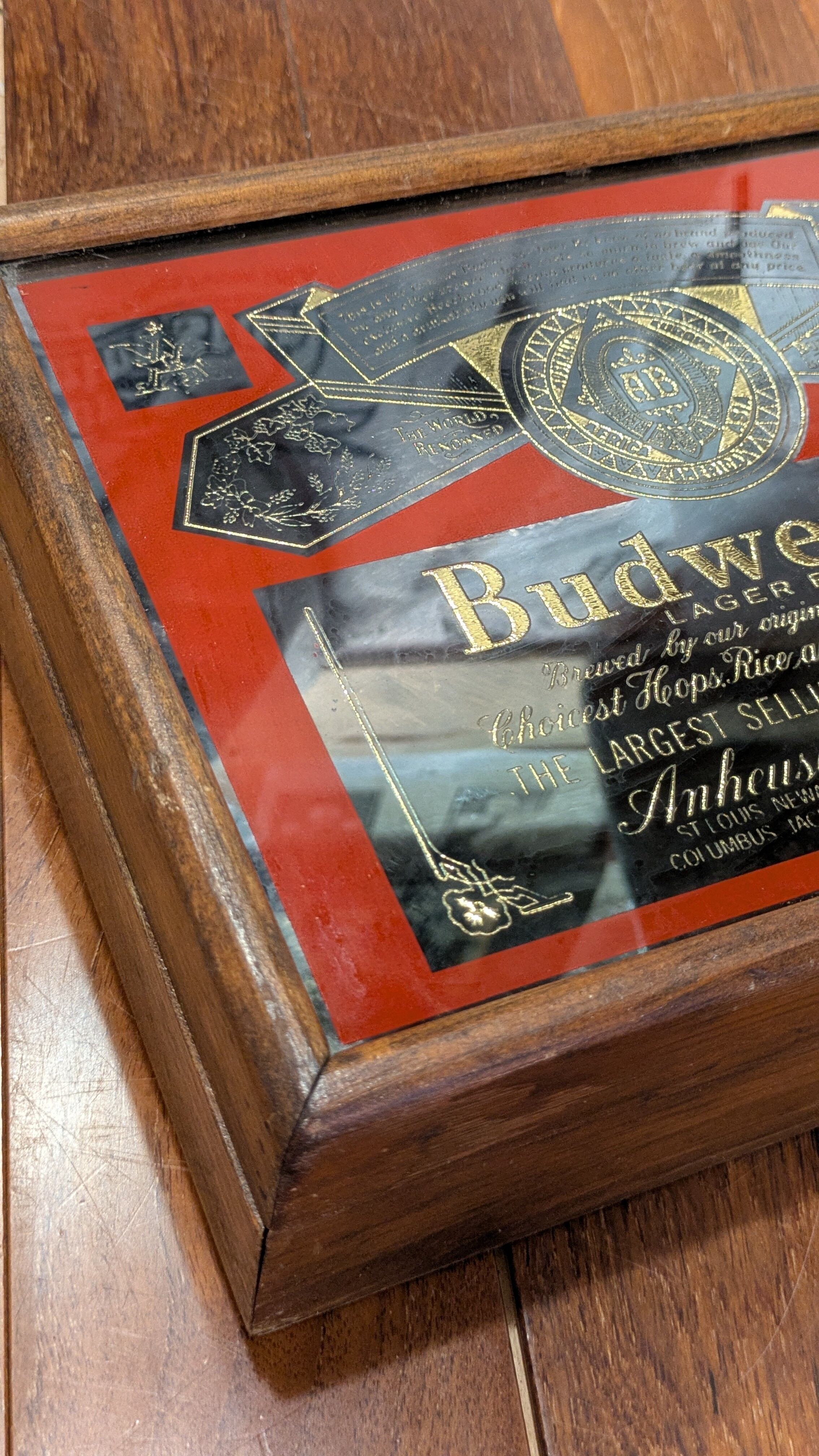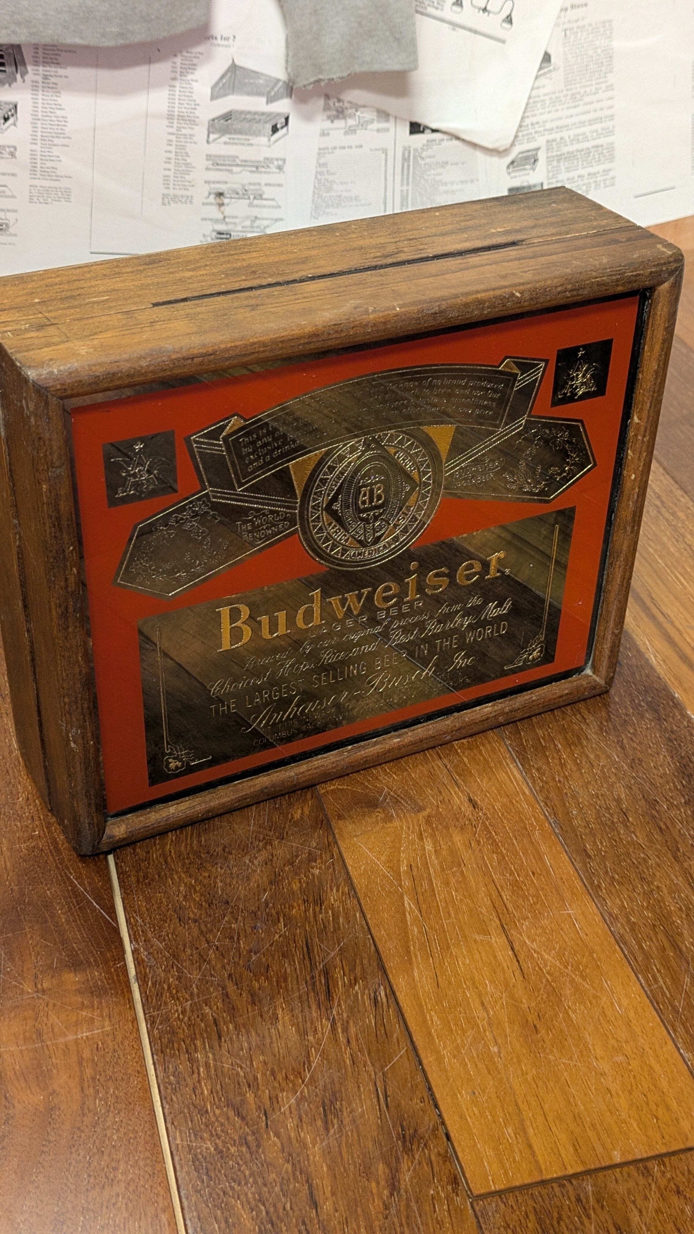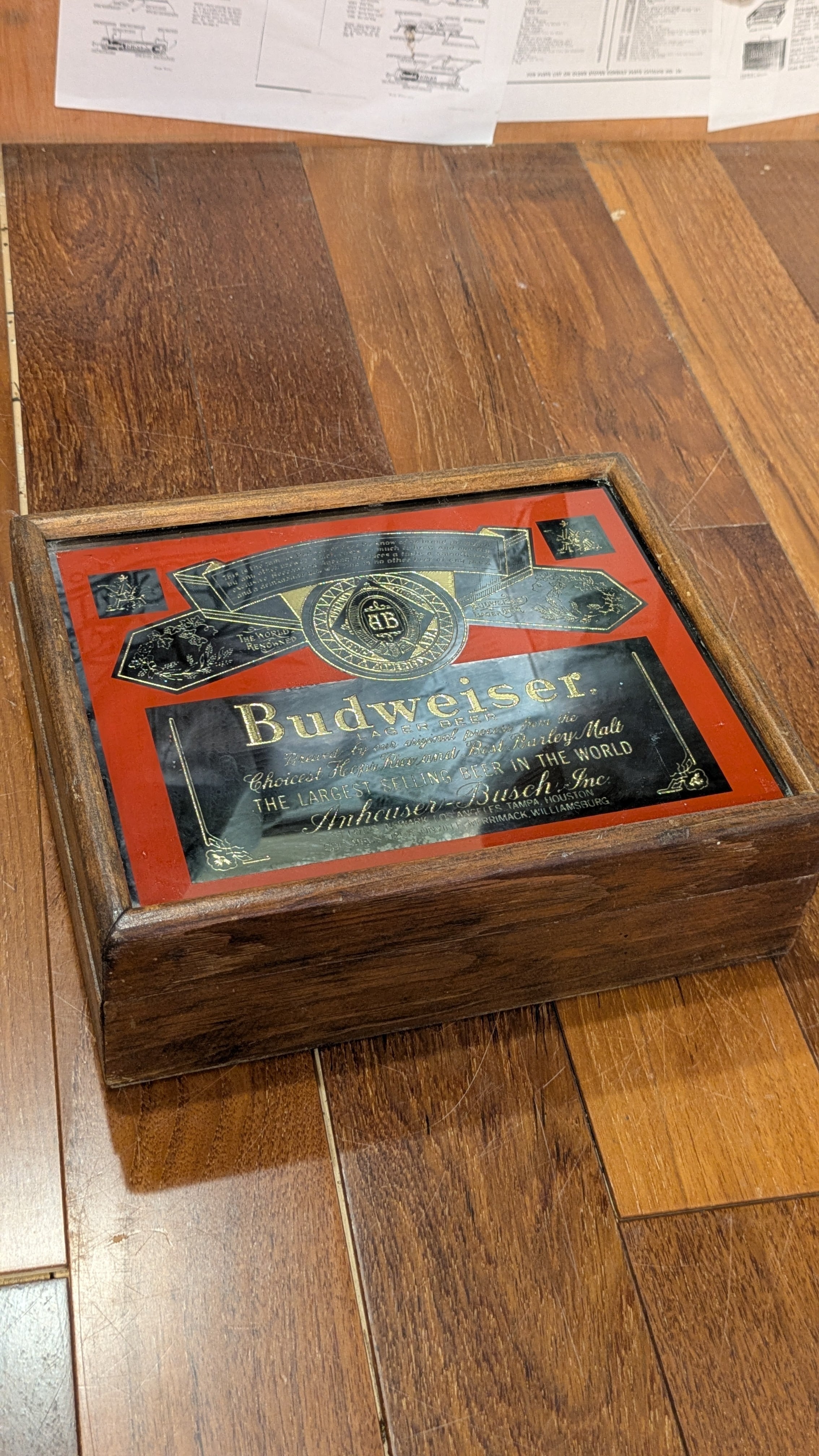 Vintage ANHEUSER-BUSCH BudWiser MINI WoodBox StorageBox PubMirror Antique ビンテージ バドワイザー ミニウッドボックス 木箱 収納ボックス パブミラー