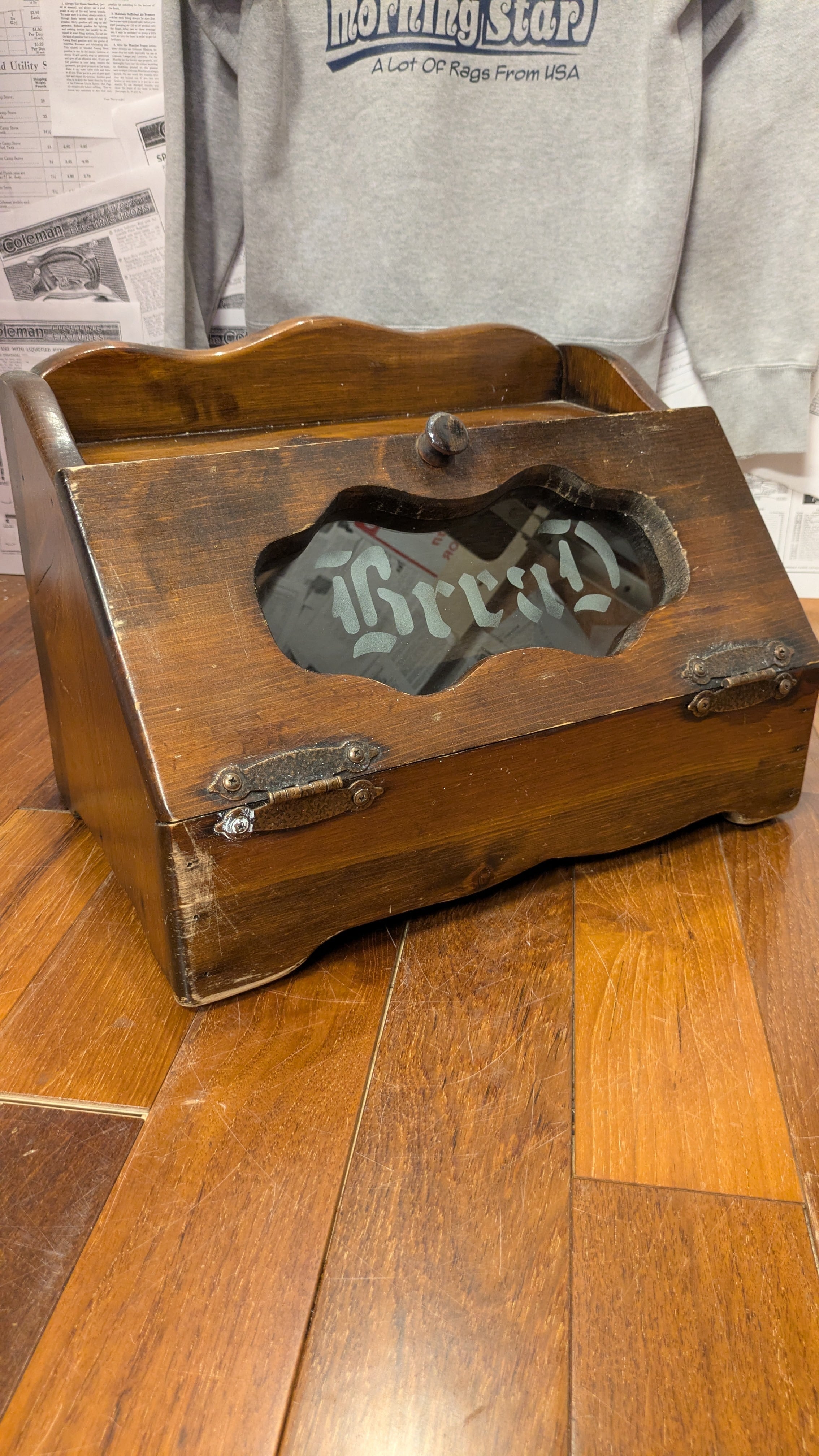 アメリカにて買い付けた人気のビンテージ木製ブレッドケースです。