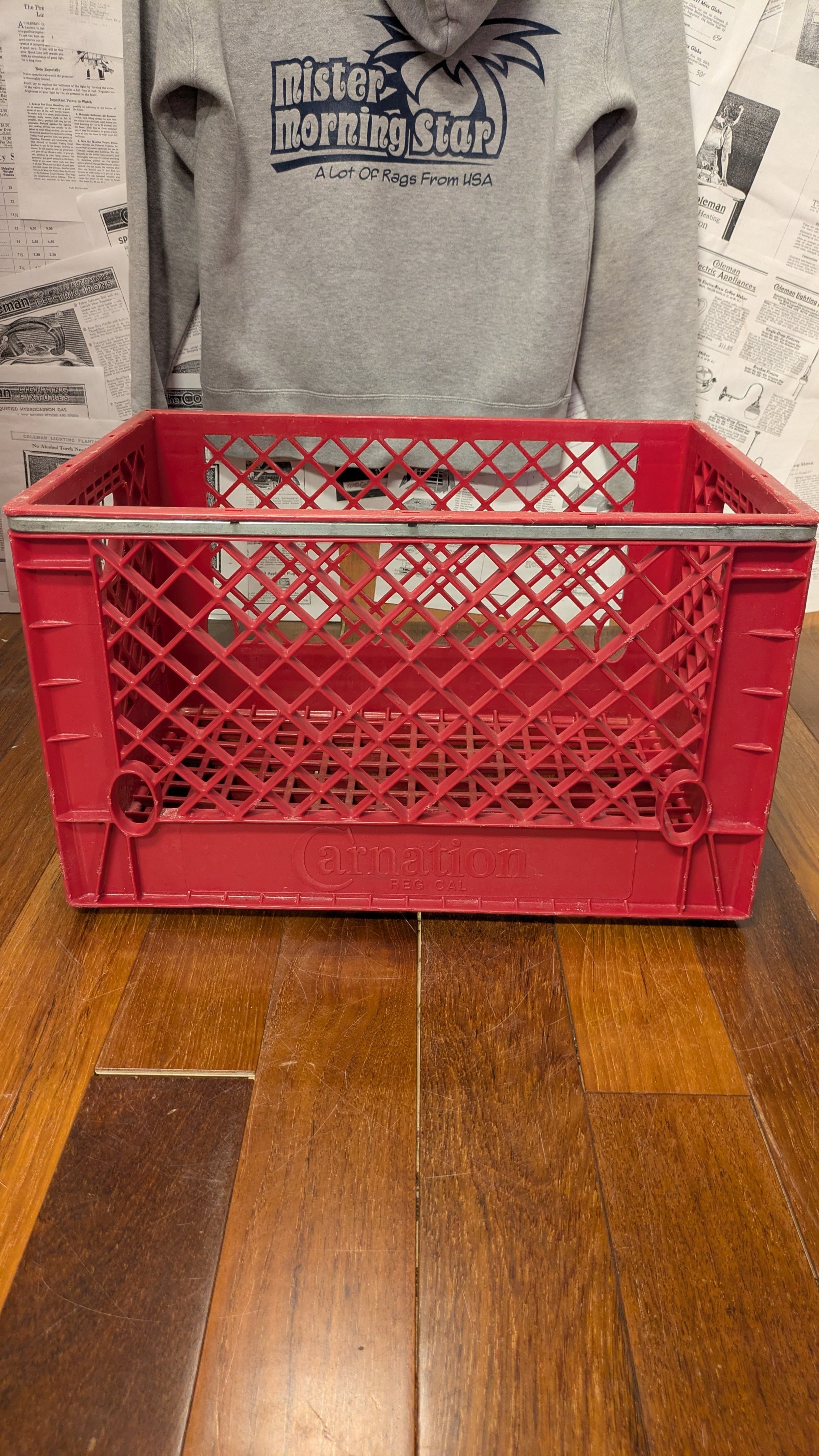 アメリカにて買い付けた人気の高いビンテージCarnationのミルククレートです。