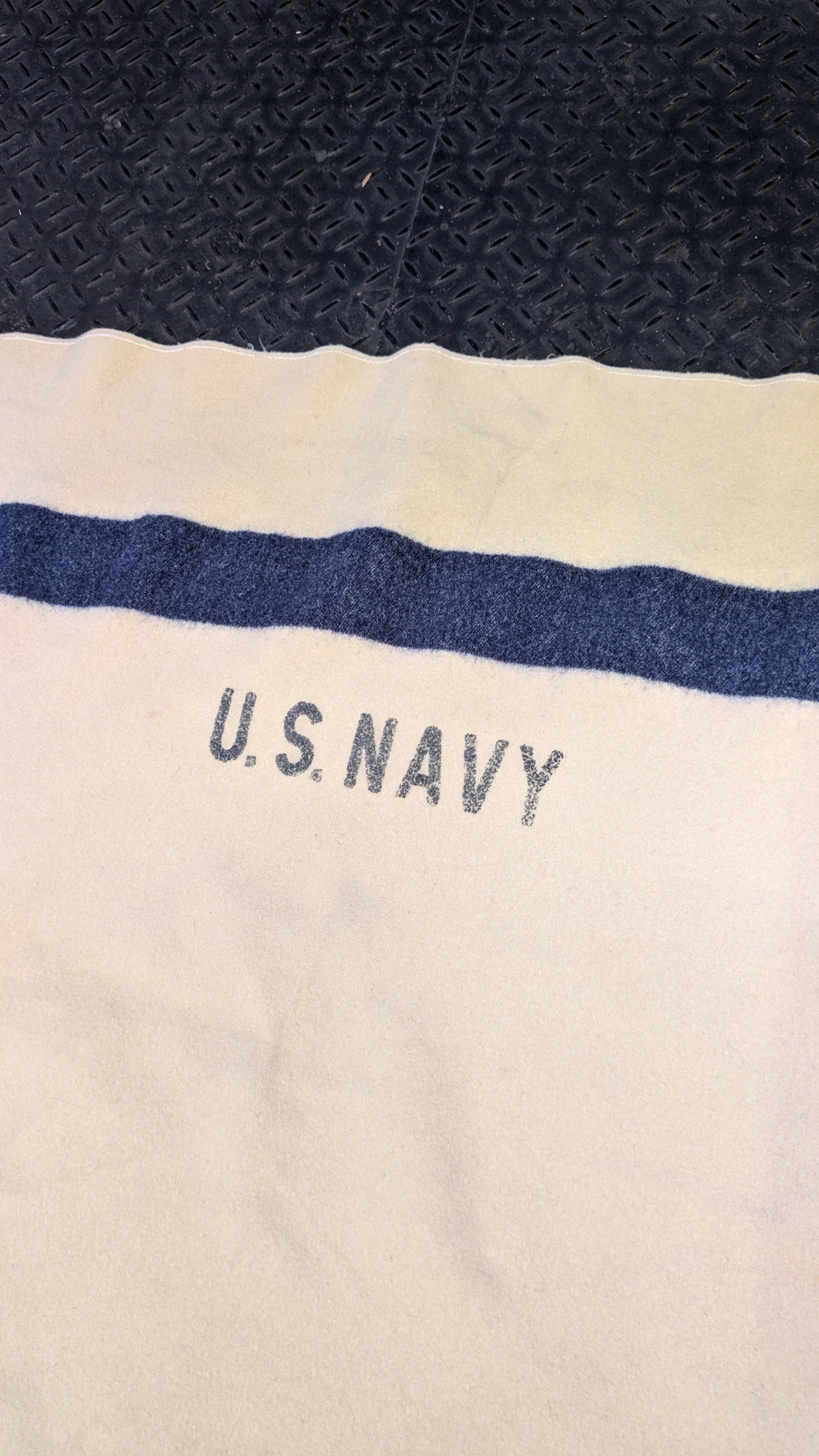 独特の文字体で有名なUS NAVYのミリタリーブランケット。