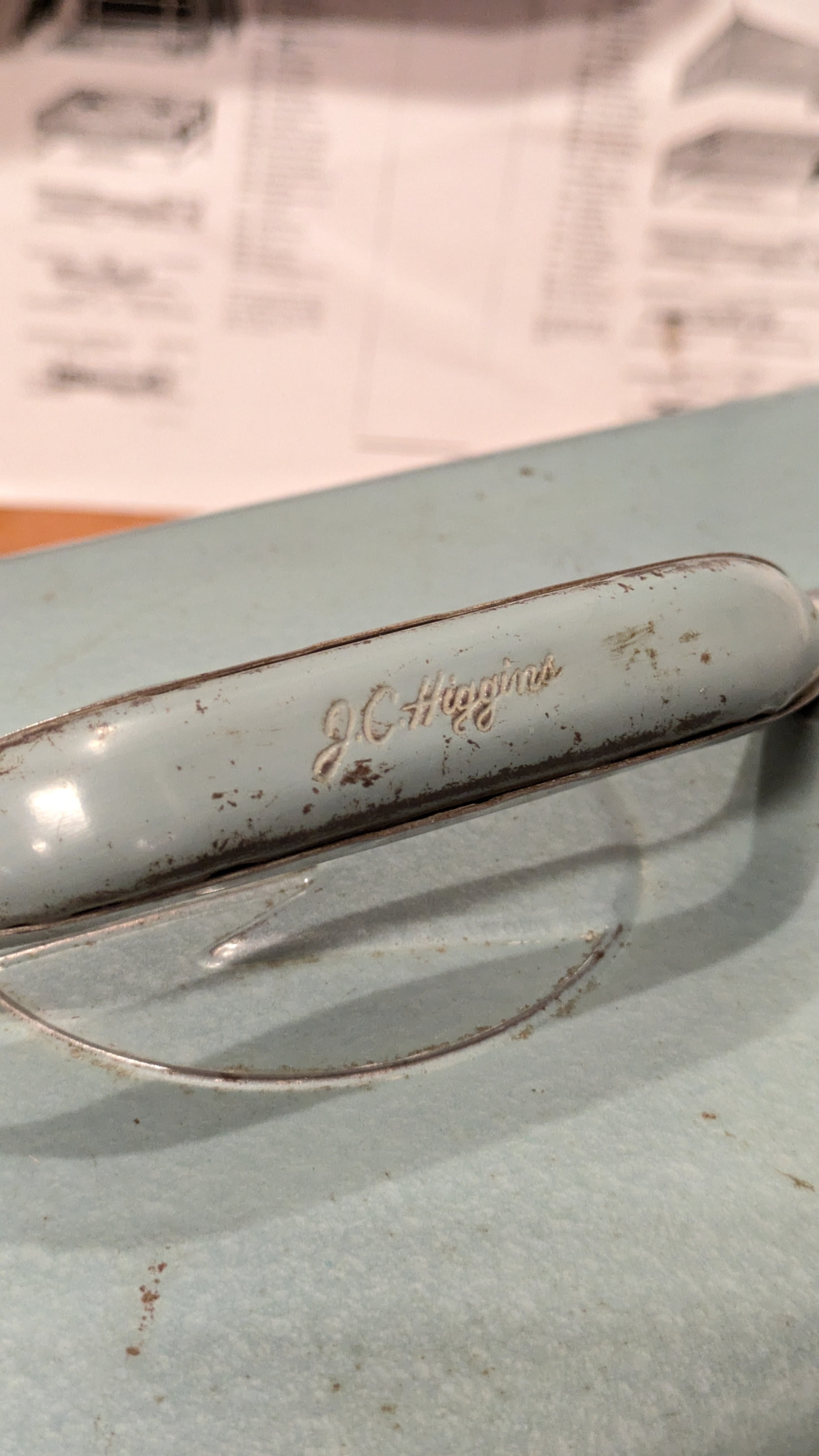 アメリカにて買い付けた珍しいモデルのビンテージJchigginsのタックルボックスです。