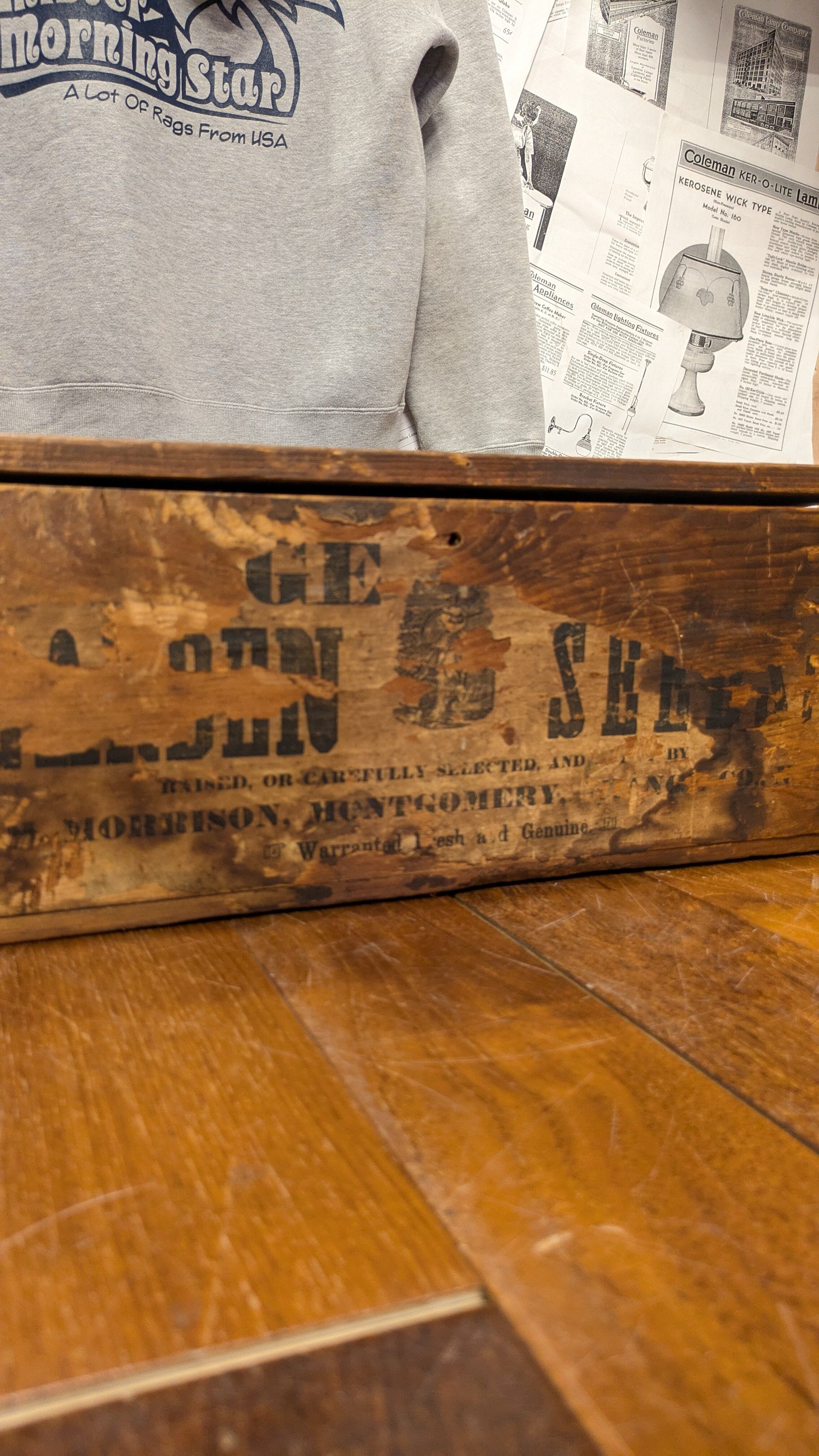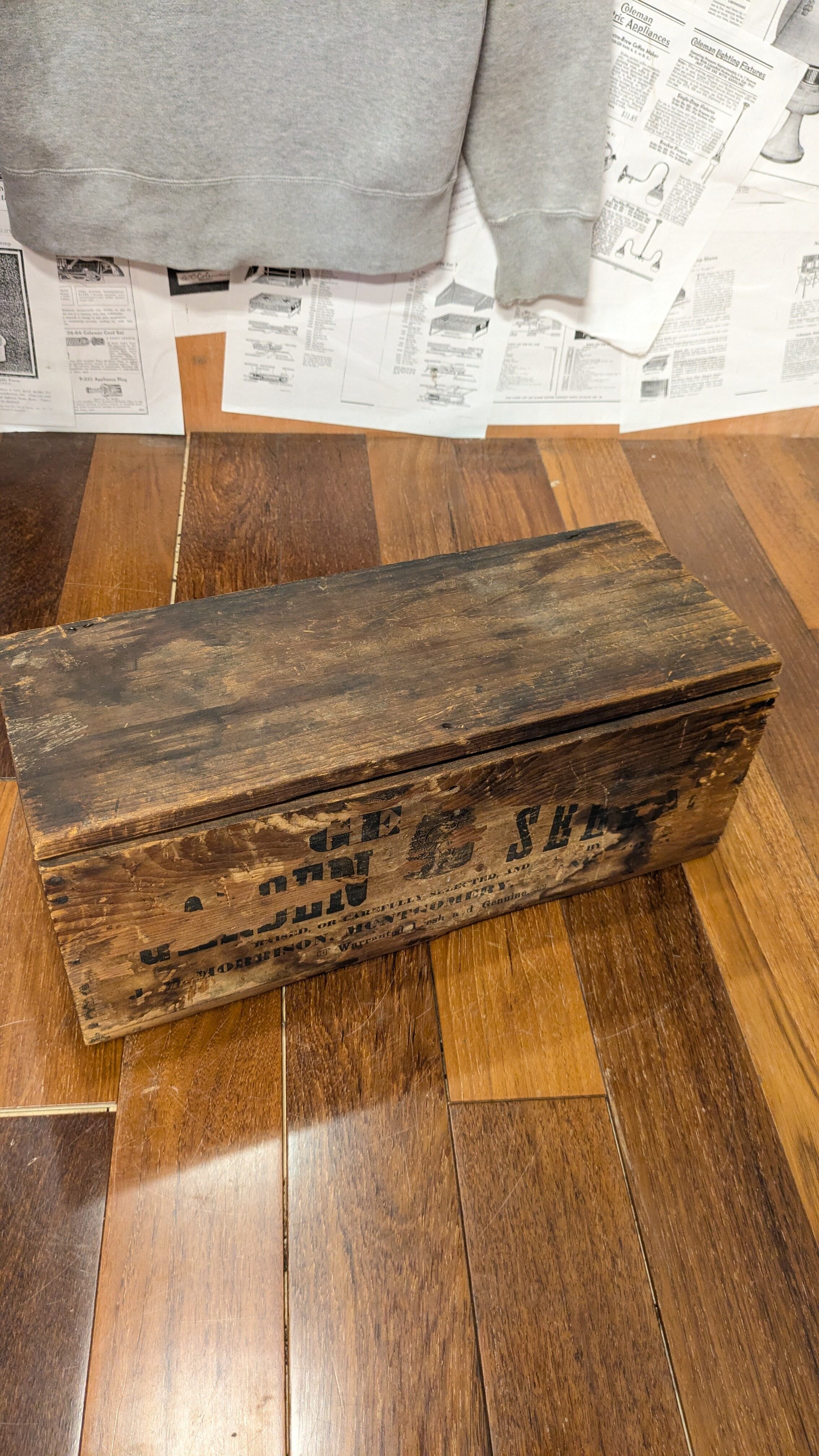 アメリカにて買い付けた抜群のアンティーク感漂わせる古い木箱になります。