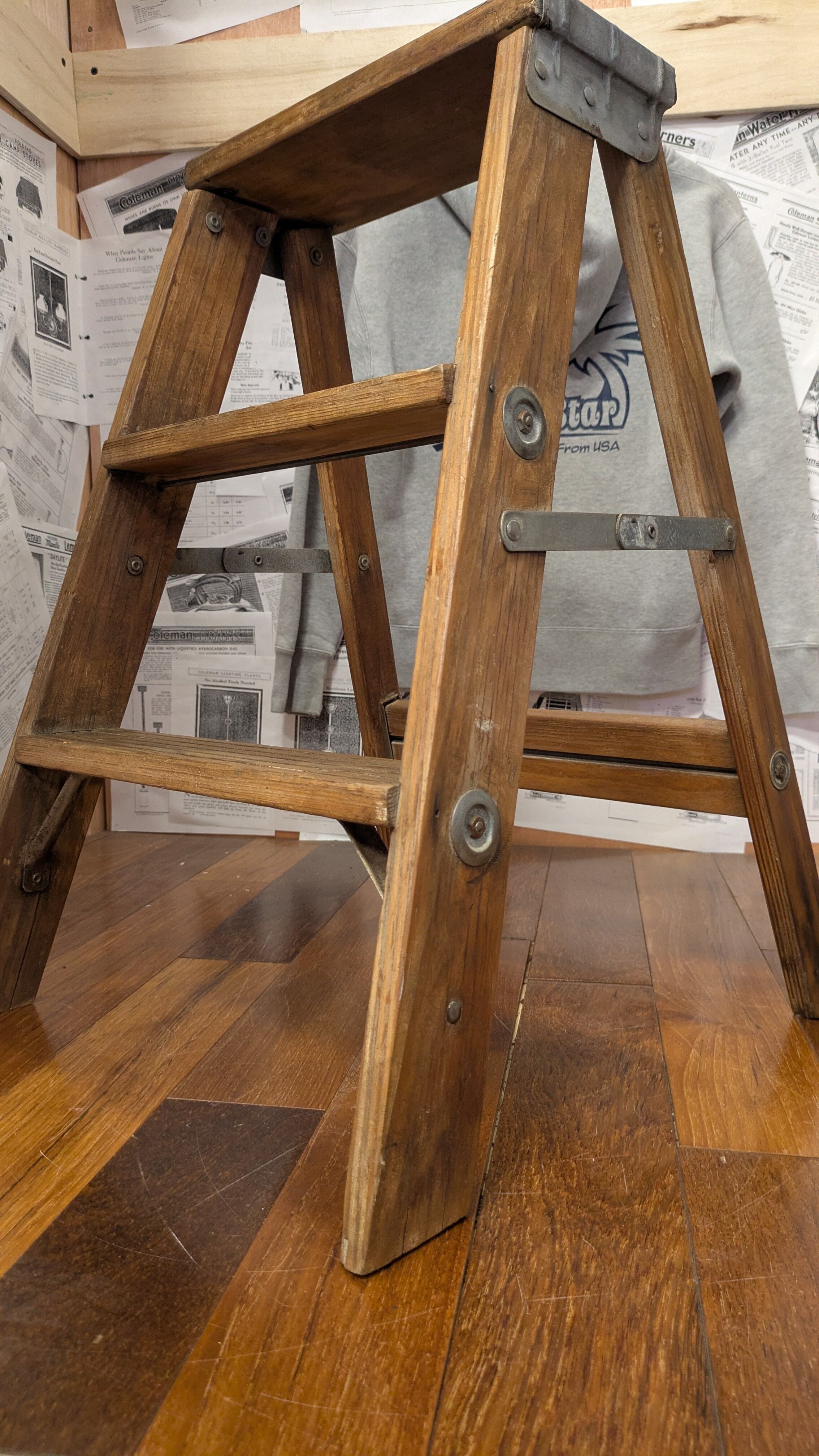 ビンテージスタイルのキャンプでの使用にも人気で、脚立としての使用はもちろん、