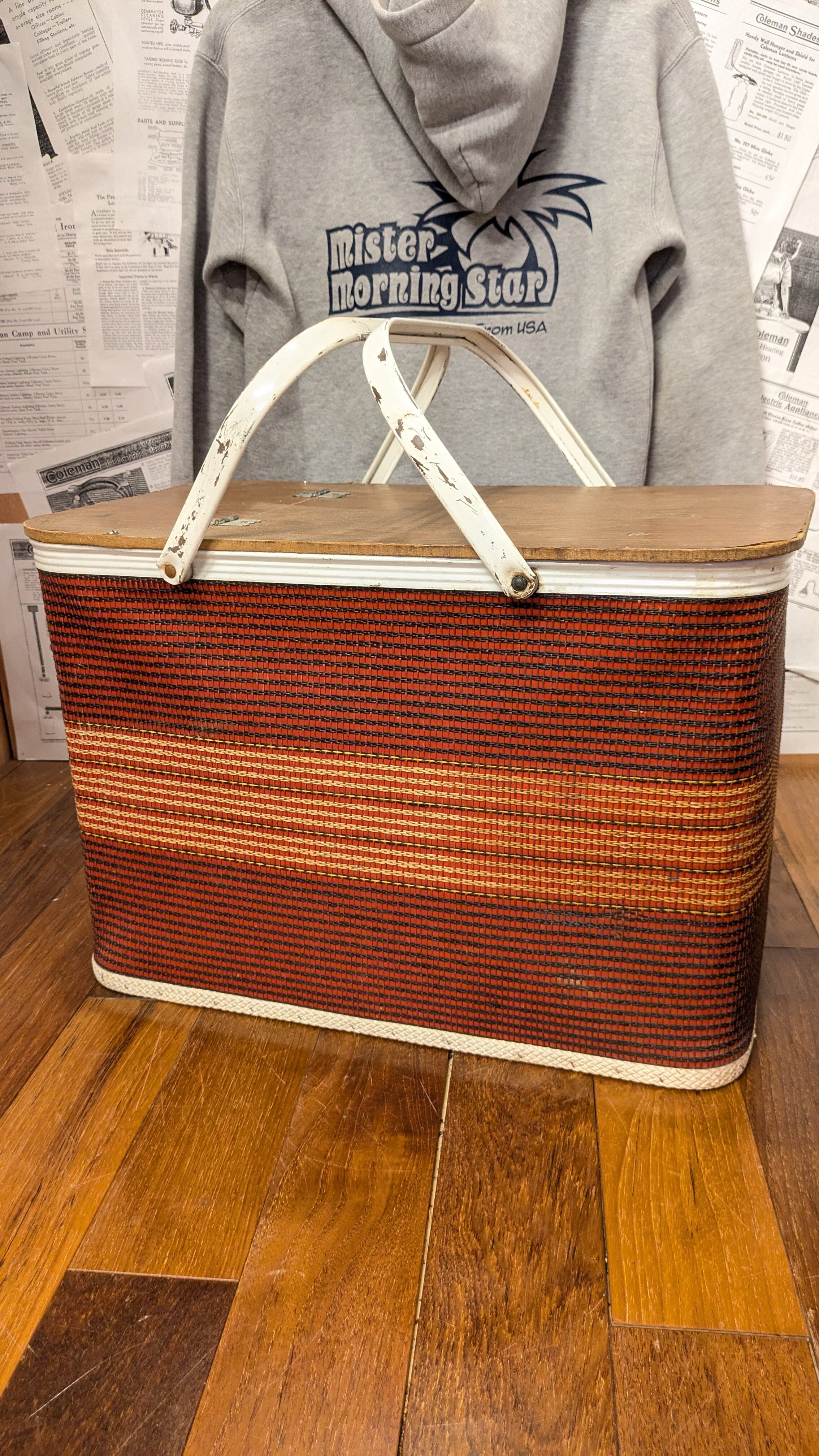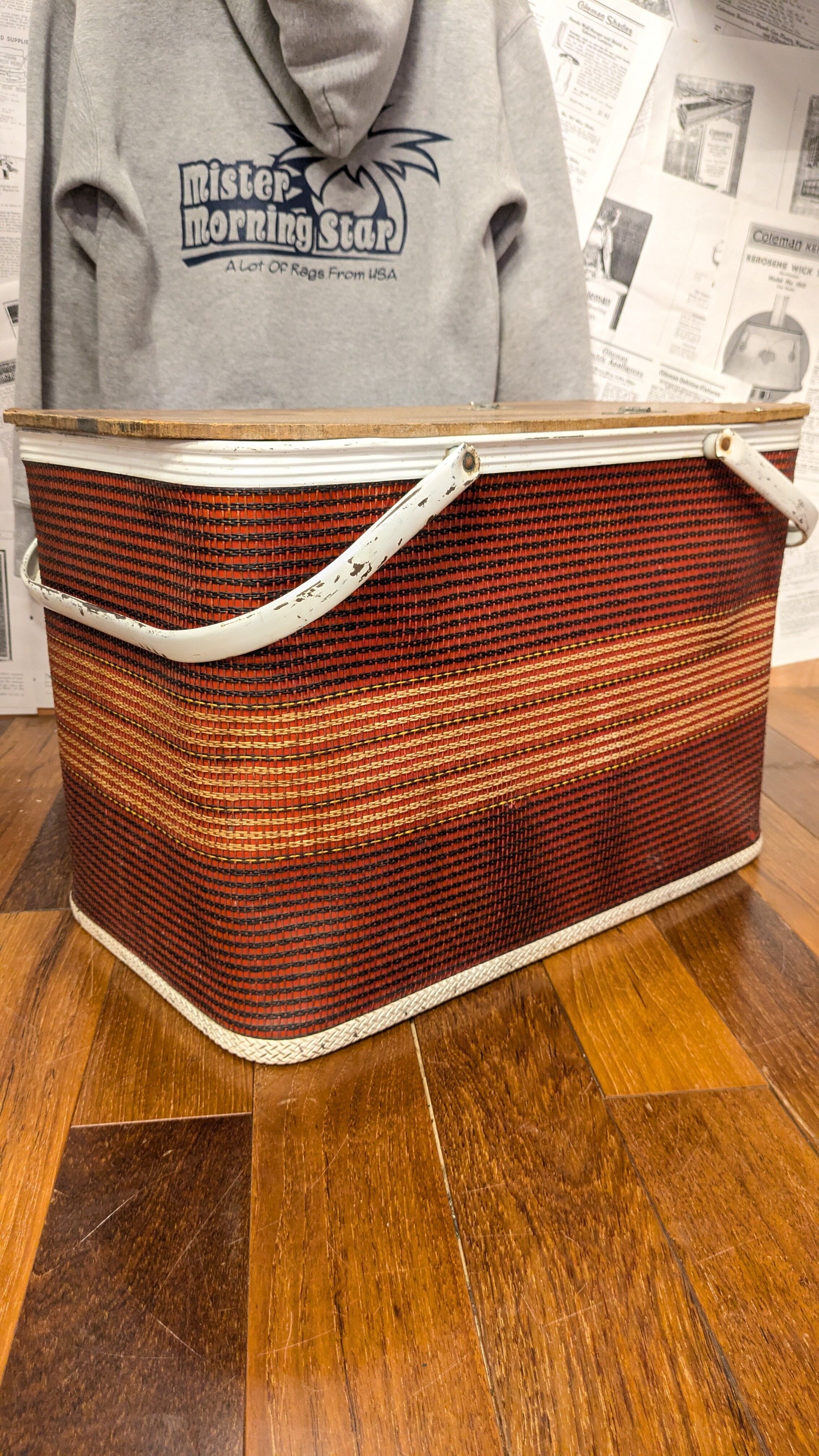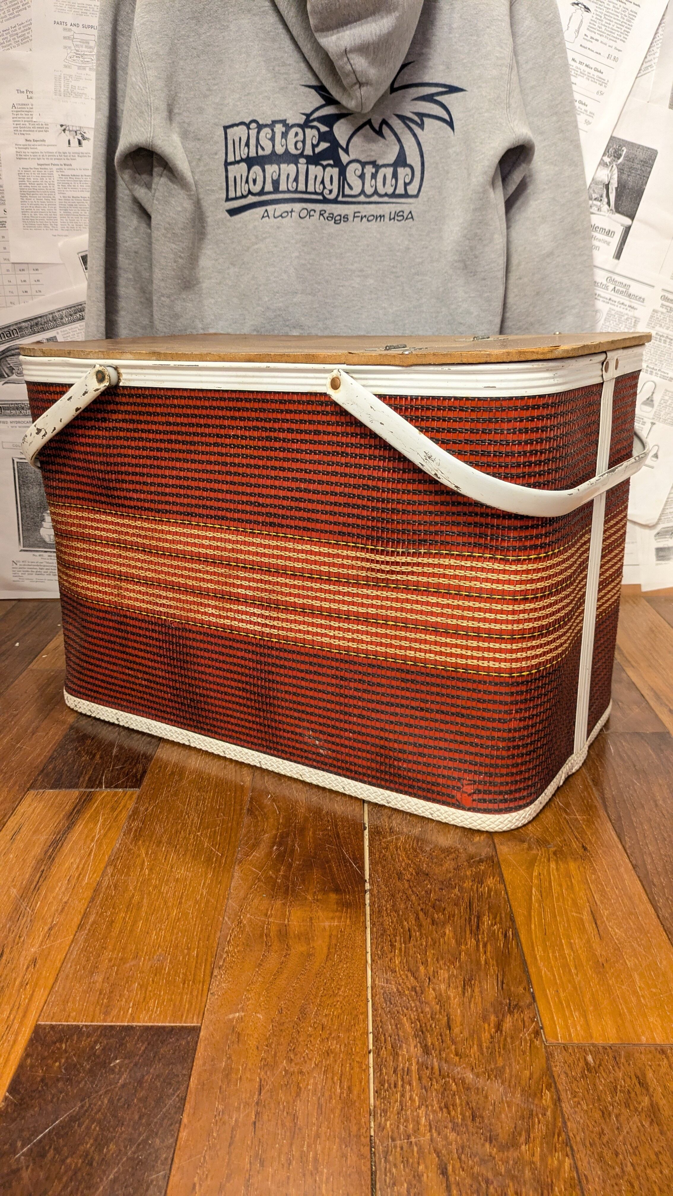Vintage REDMON PicnicBasket OldCampingStyle Border ビンテージ ピクニックバスケット キャンプギア バスケット アメリカ製 収納力抜群