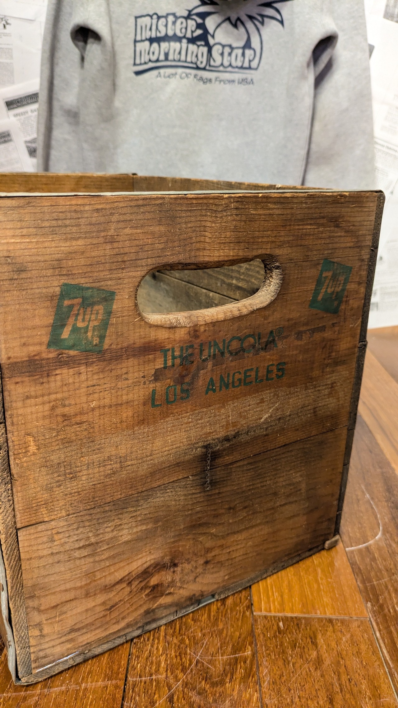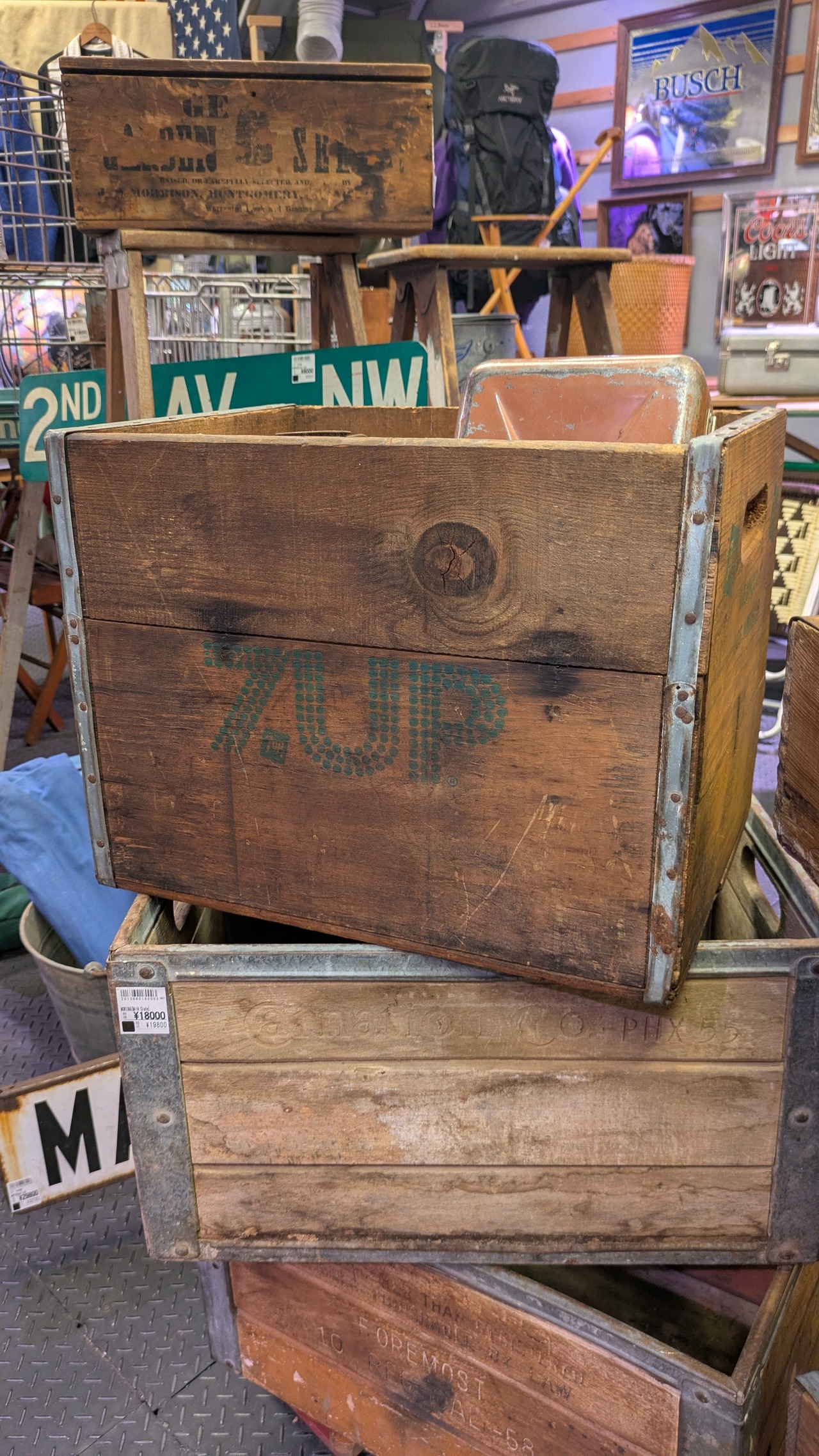 アメリカにて買い付けた人気の高いビンテージ7UPのウッドボックスです。