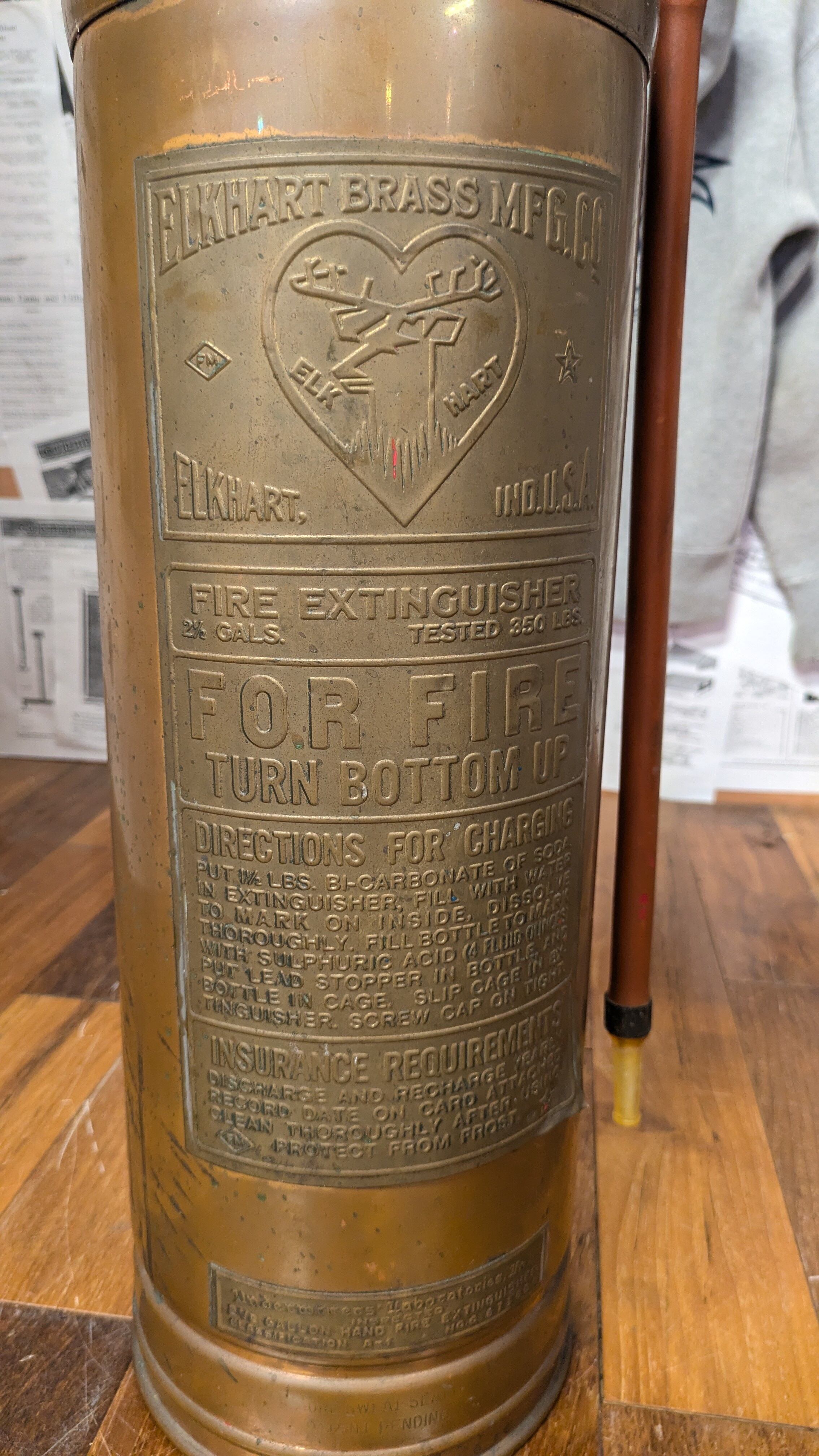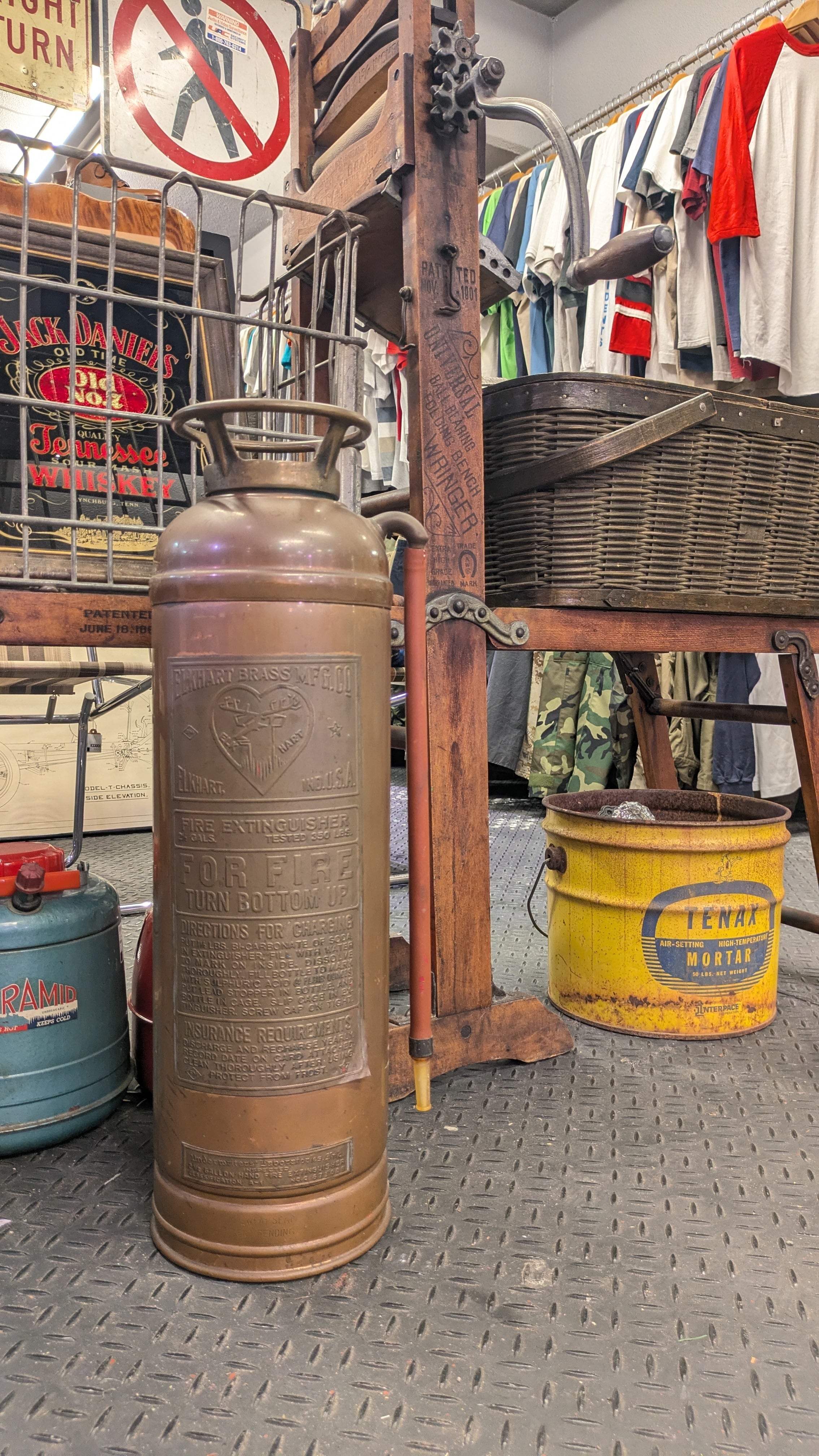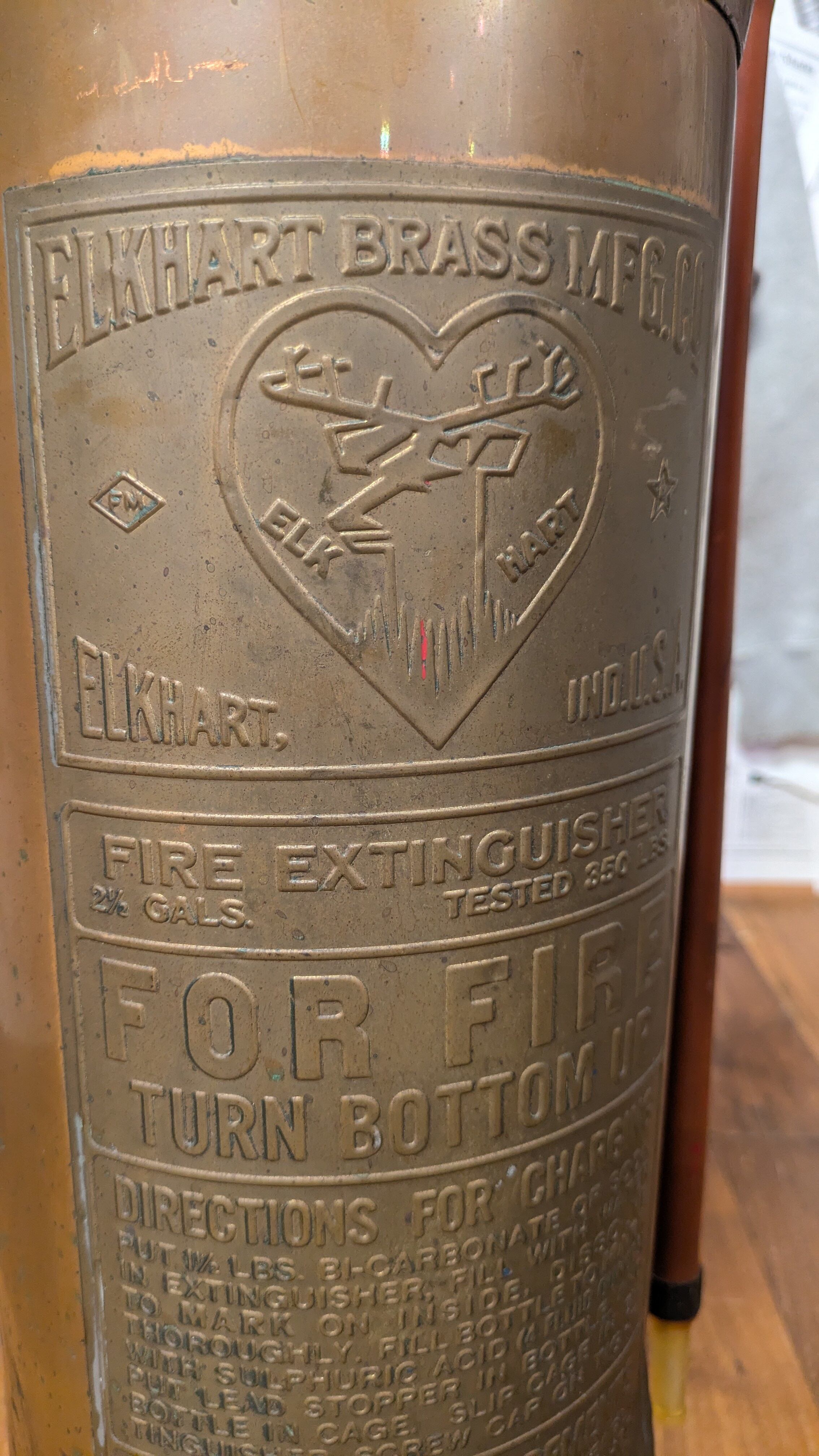 アメリカにて買い付けた雰囲気抜群なビンテージELKHART BRASS社製の消火器です。