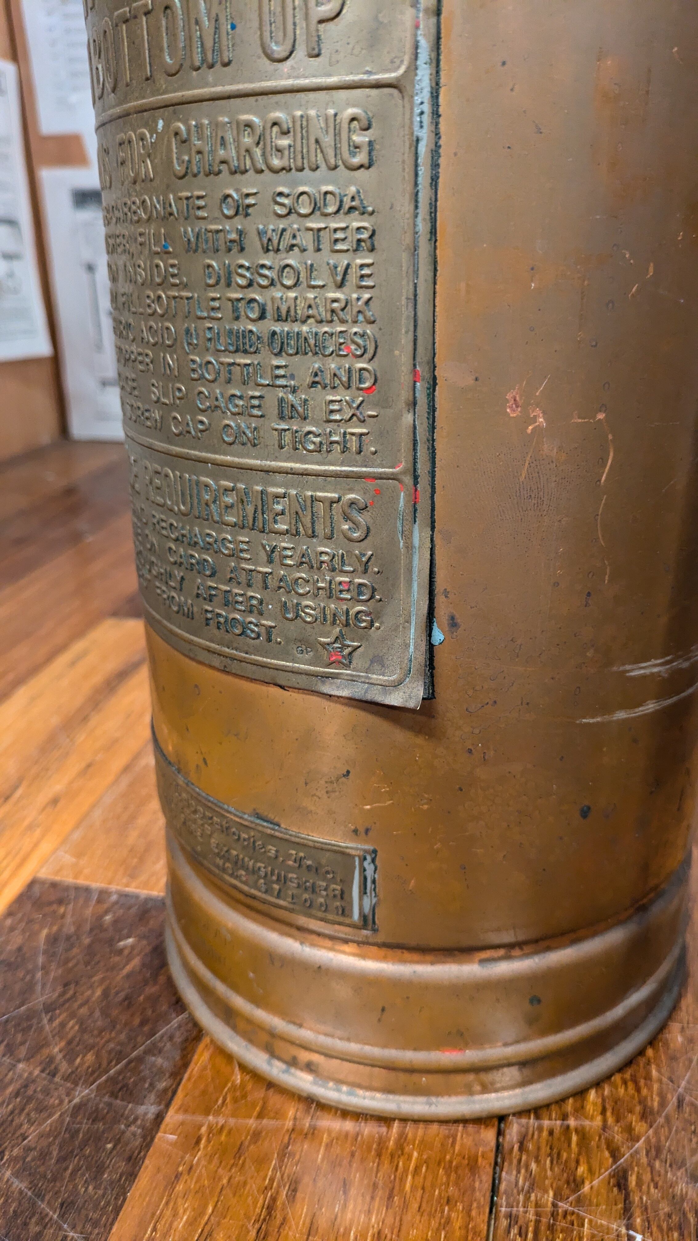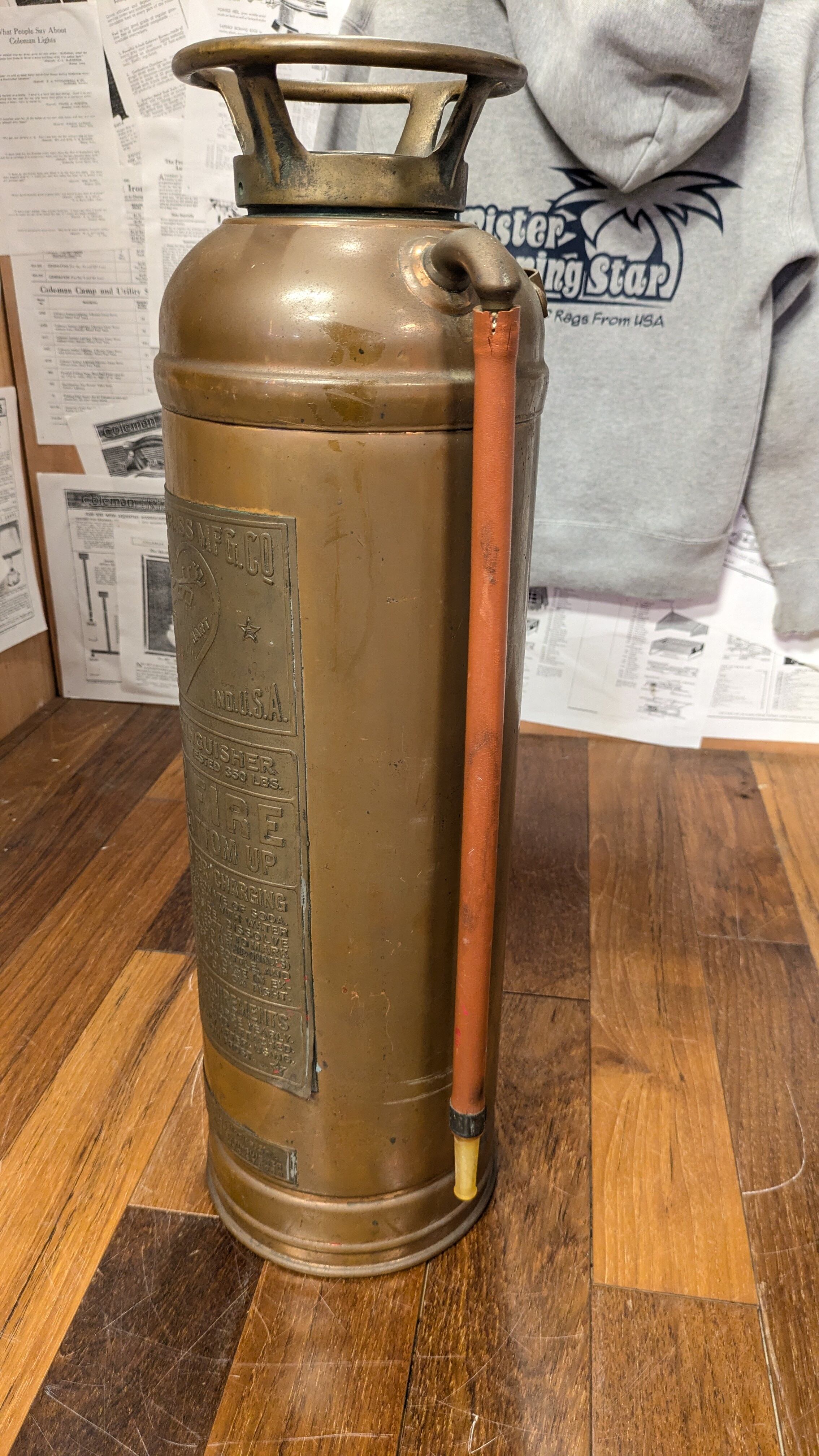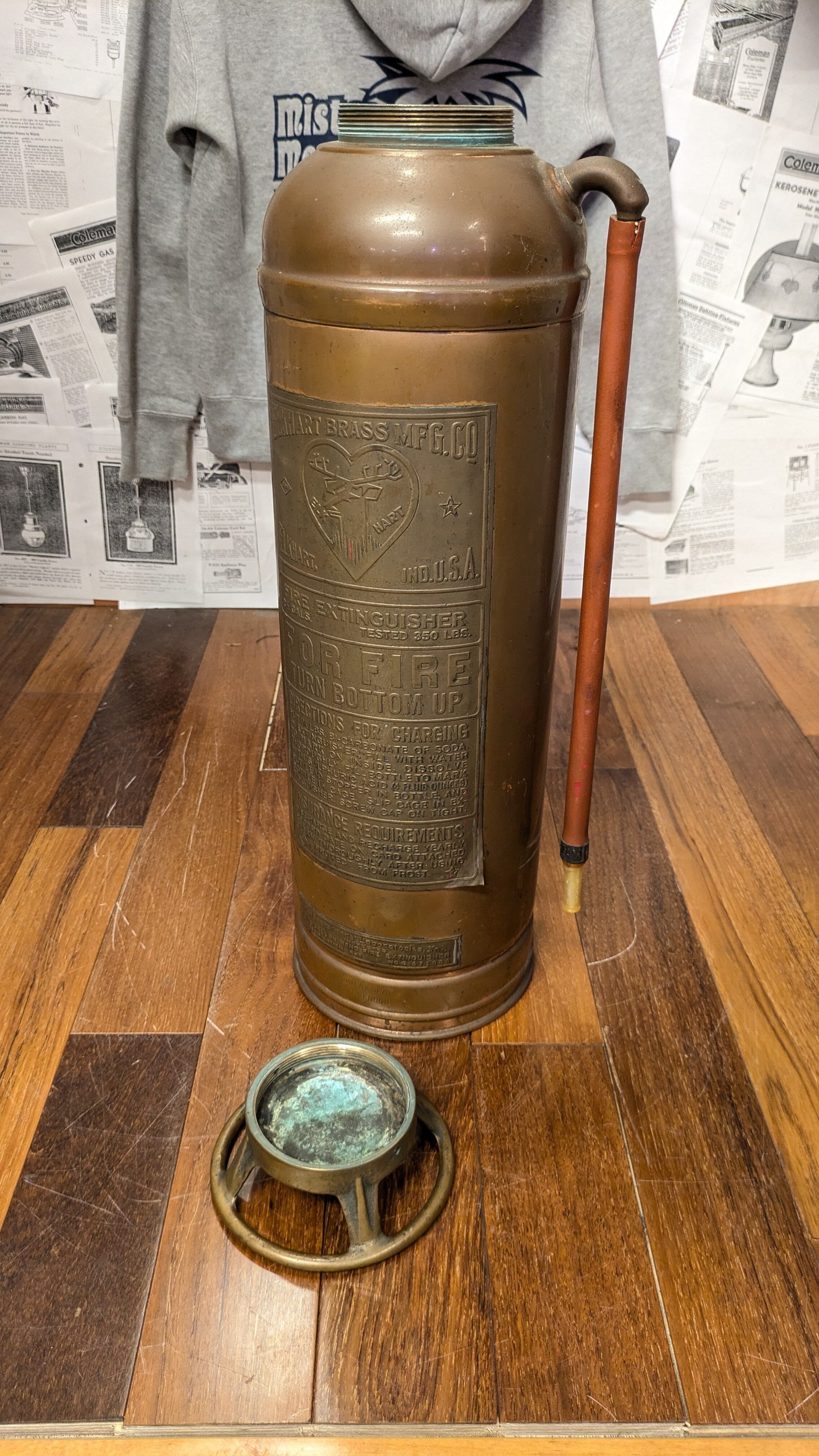 アメリカにて買い付けた雰囲気抜群なビンテージELKHART BRASS社製の消火器です。