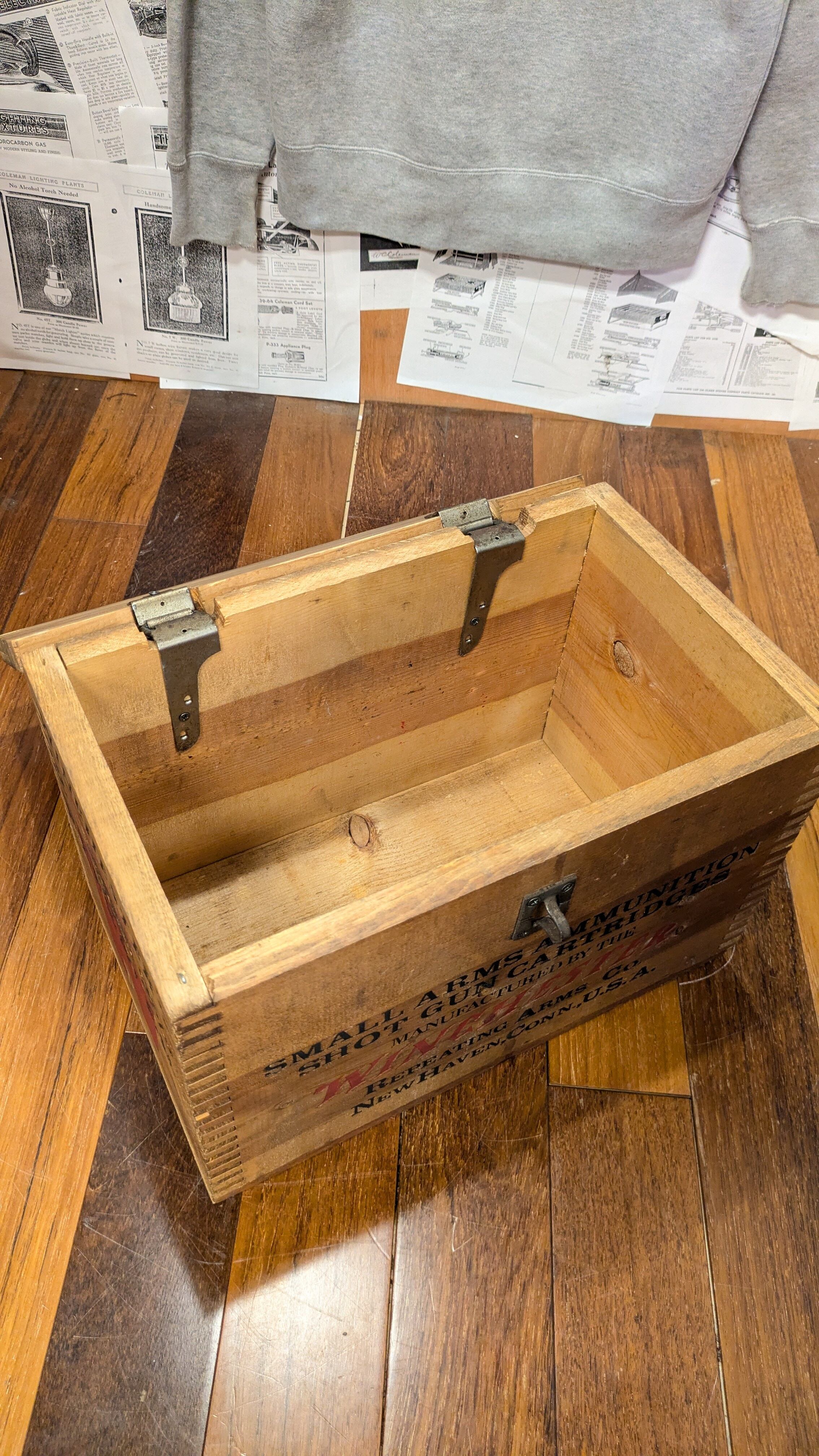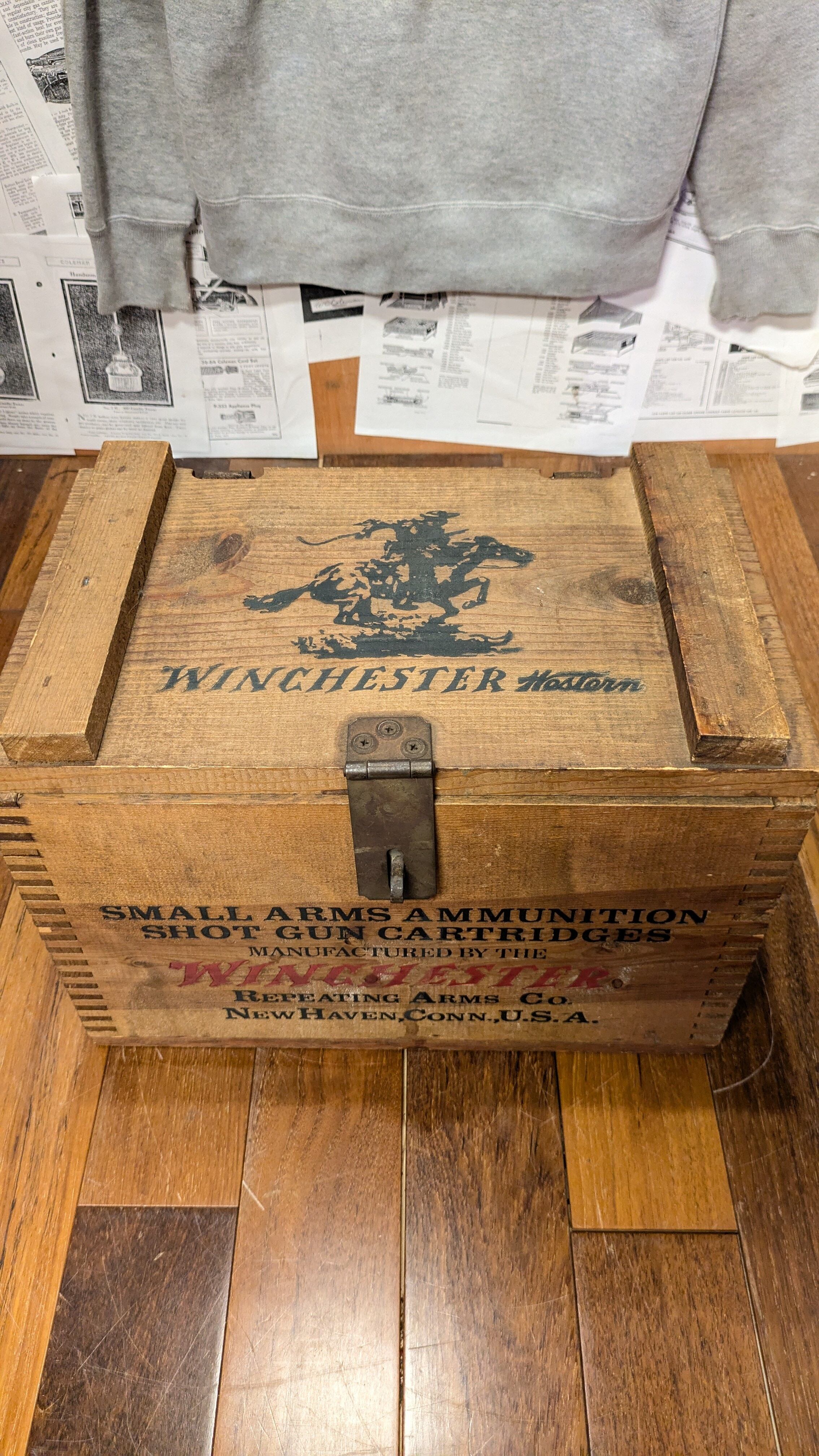 Vintage WINCHESTER Small Arms Ammunition Wood Box ビンテージ ウッドボックス アンモボックス 木製 木箱 収納ボックス ギアボックス キャンプギア クレート アンティーク 蓋付き