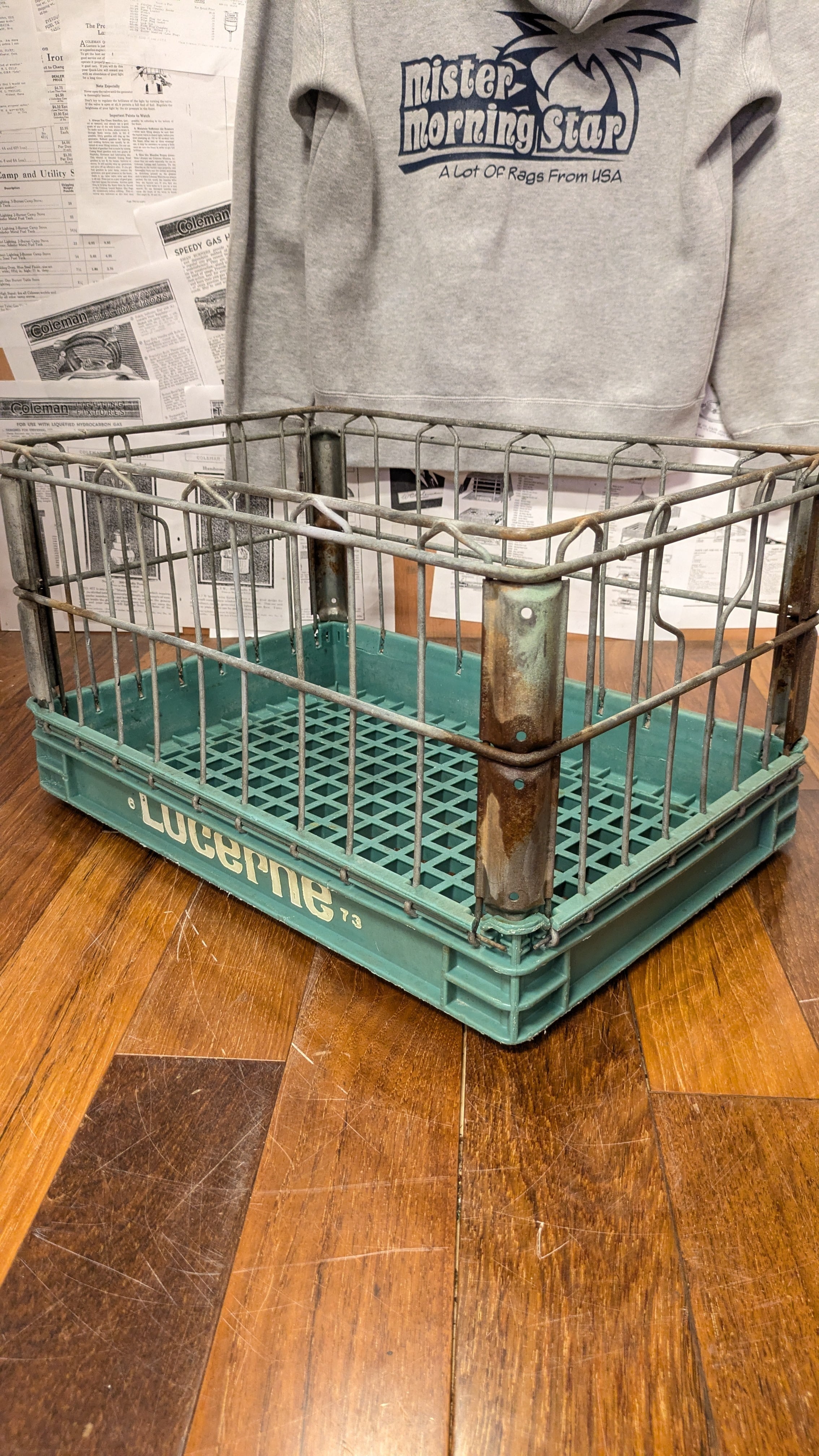 デザイン性に富んだビンテージLUCERNEのワイヤークレートです。