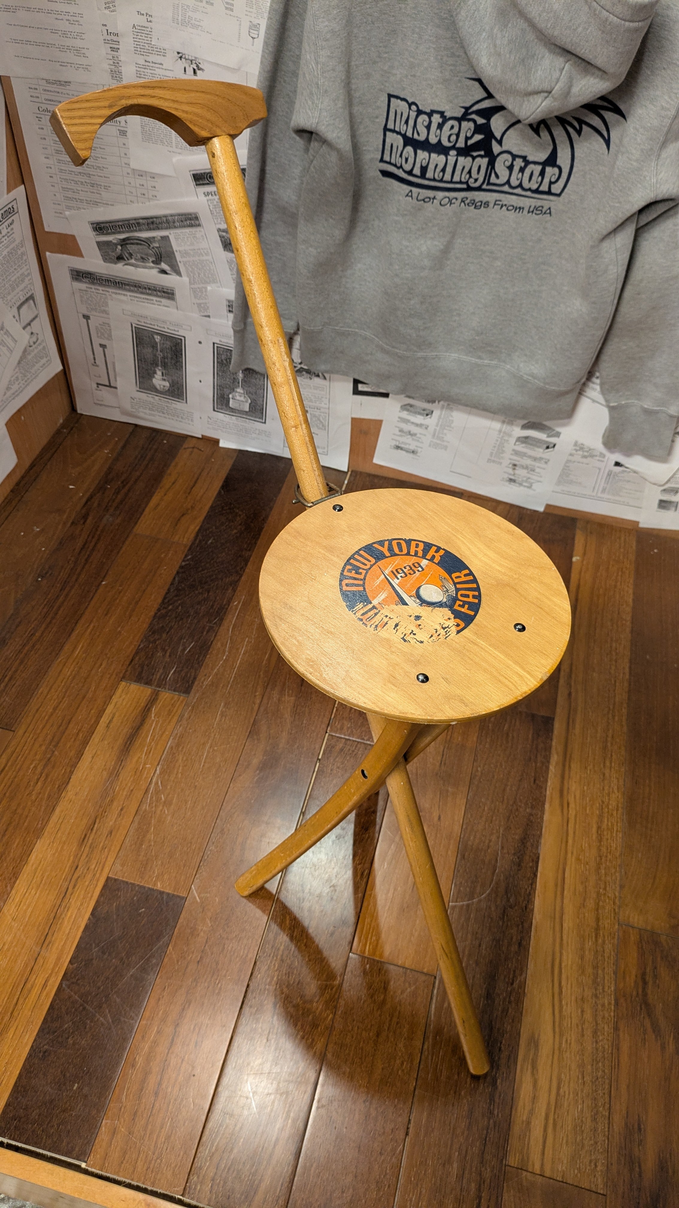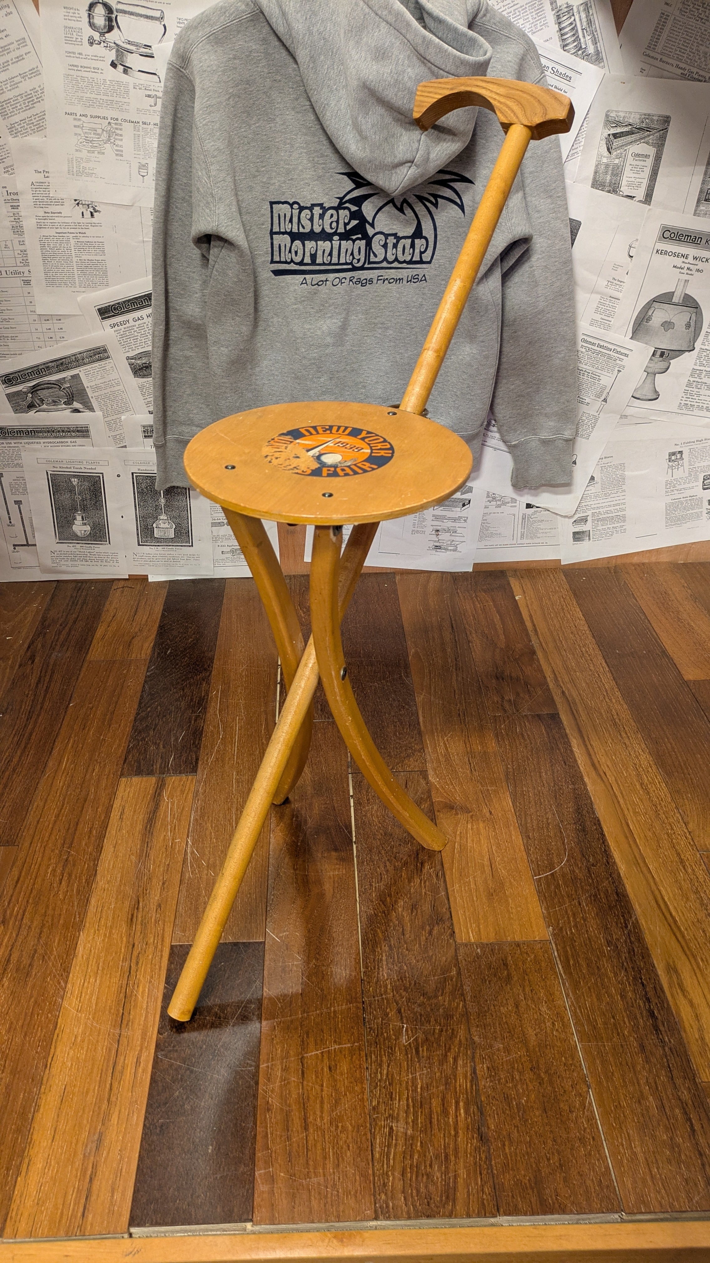 30's~ Vintage KAN-O-SEAT Wood Chair Stand USA NEWYORKFAIR 1939 ウッド フォールディングチェア アンティーク アメリカ製 ビンテージキャンプギア 木製 スタンド