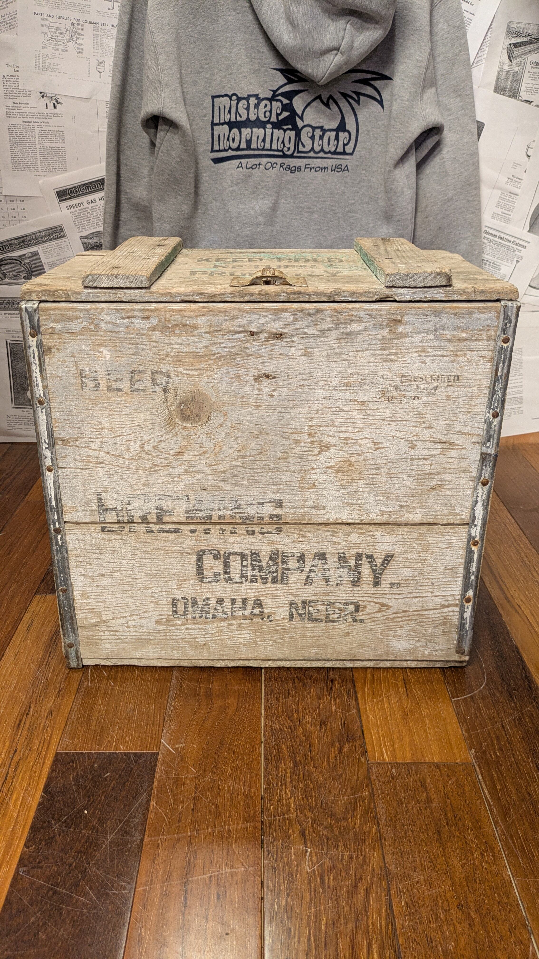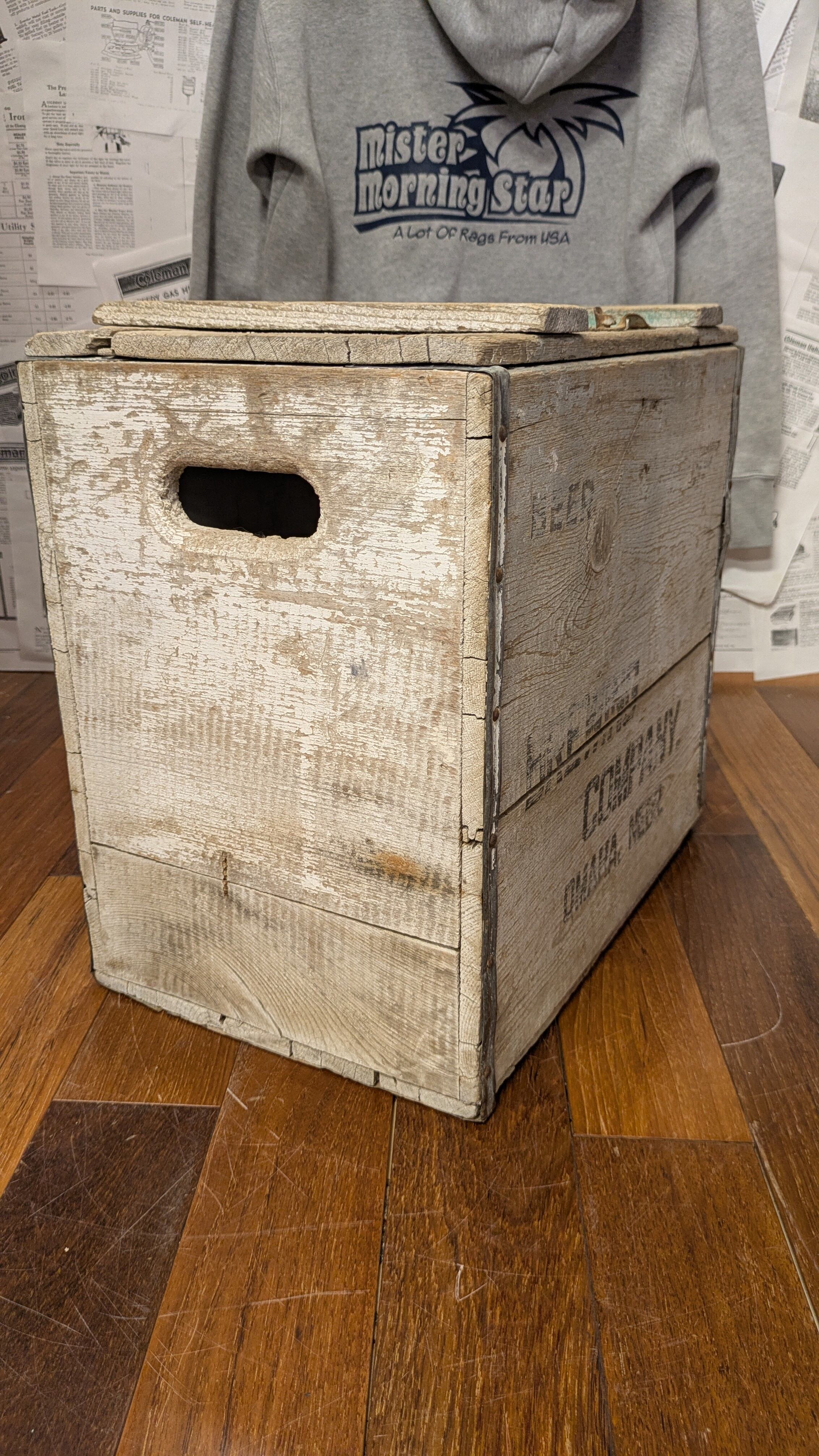 重厚感もあり、非常に雰囲気のあるビンテージ木箱です。