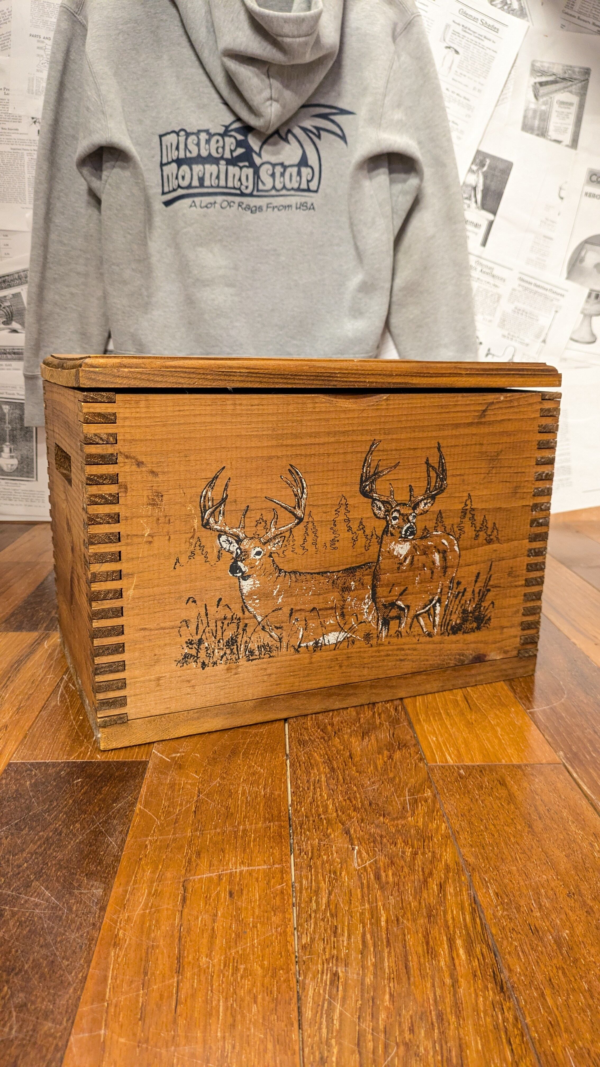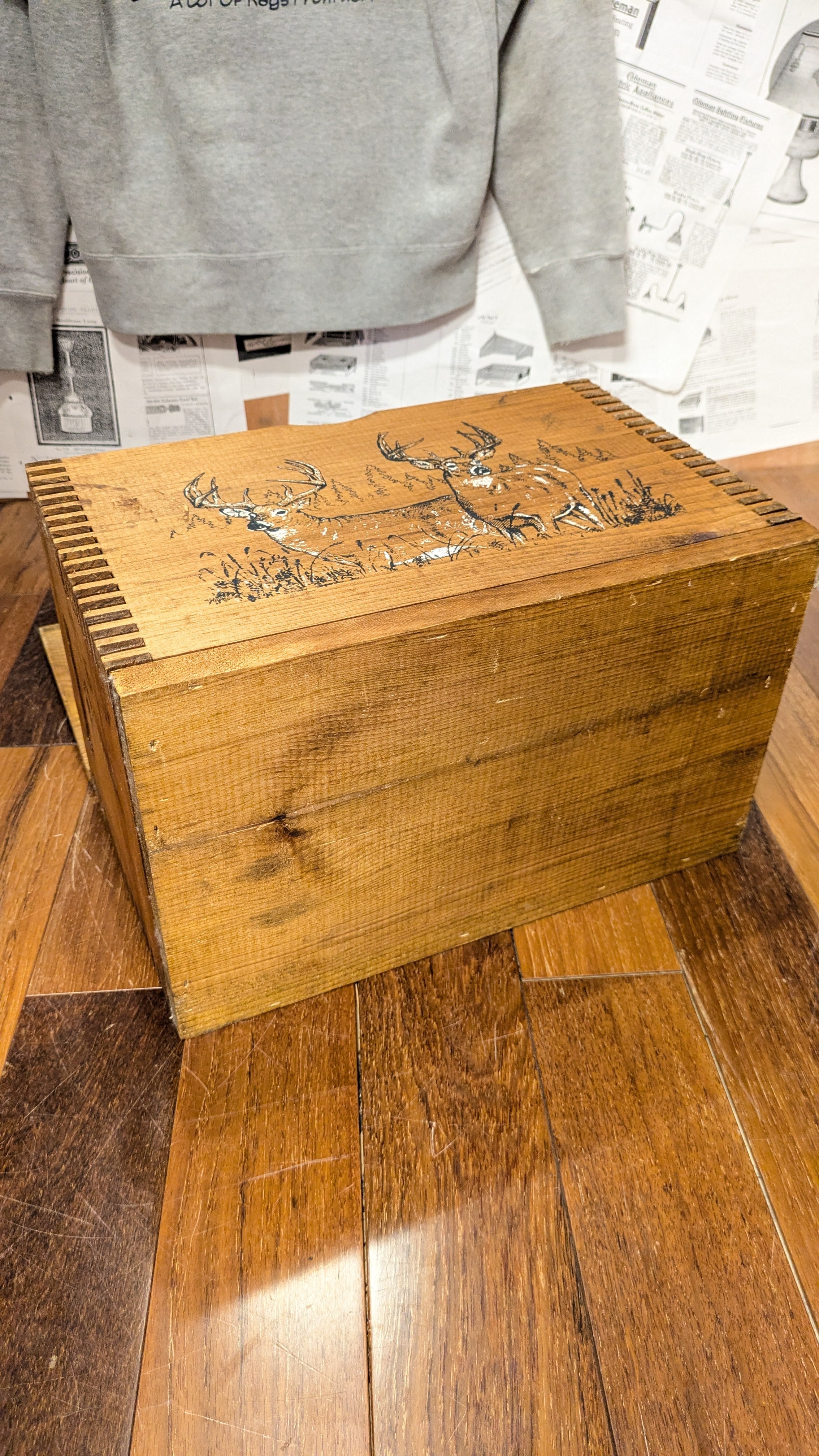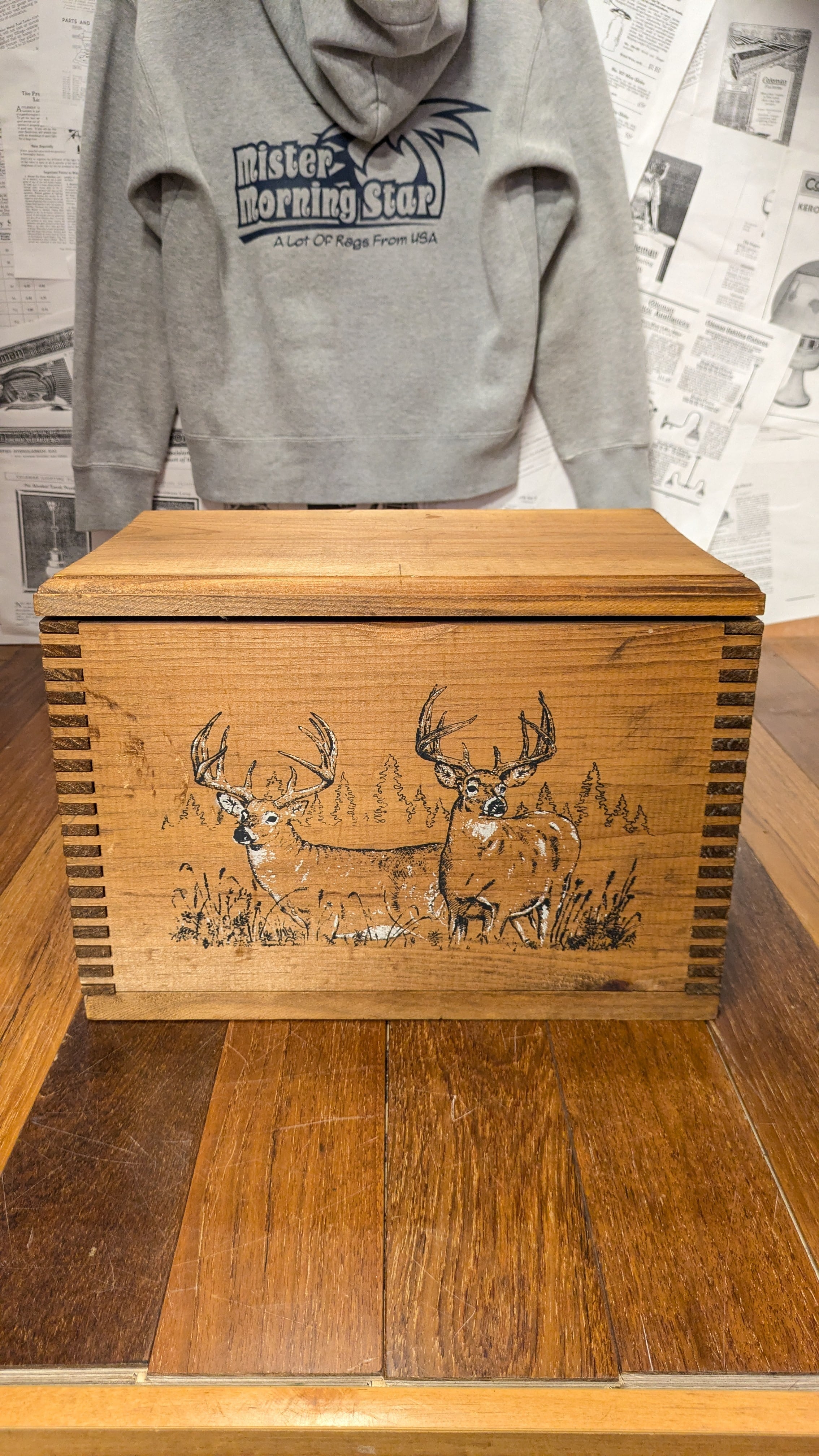 Vintage WoodBox Hunting mini Contrainer Deer Pattern ビンテージ ウッドボックス アンモボックス 木製 木箱 収納ボックス ギアボックス キャンプギア クレート アンティーク 蓋付き