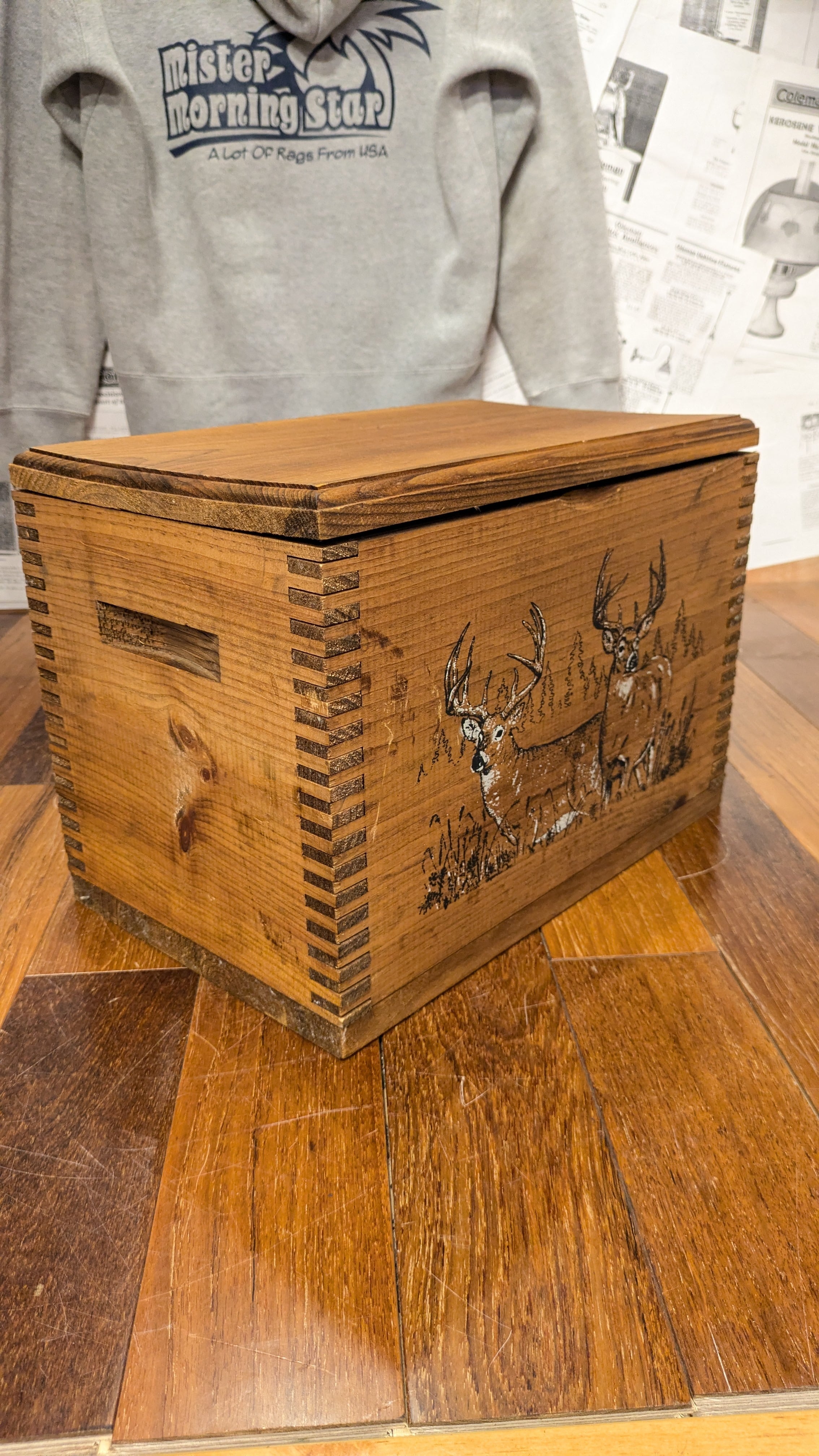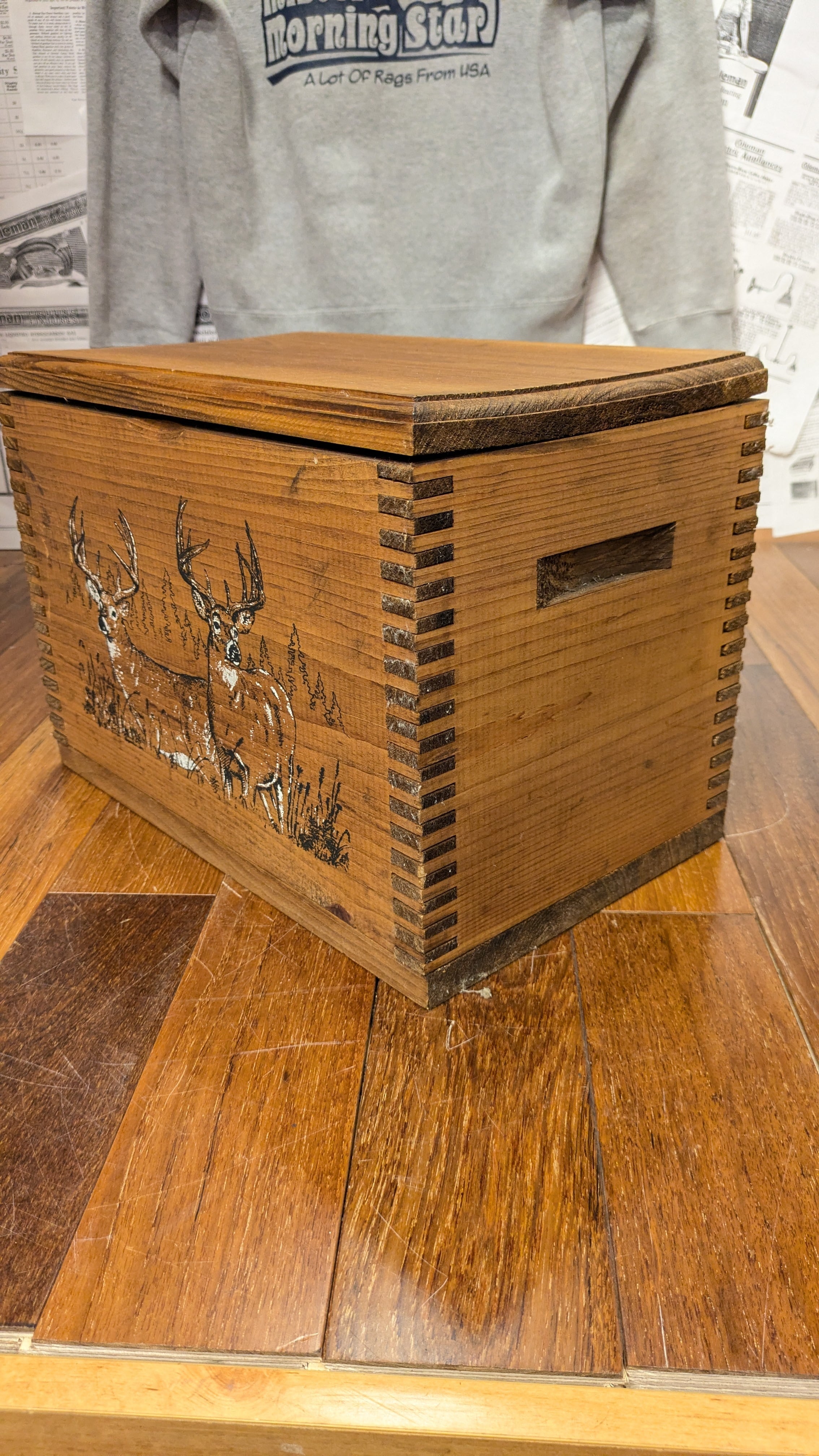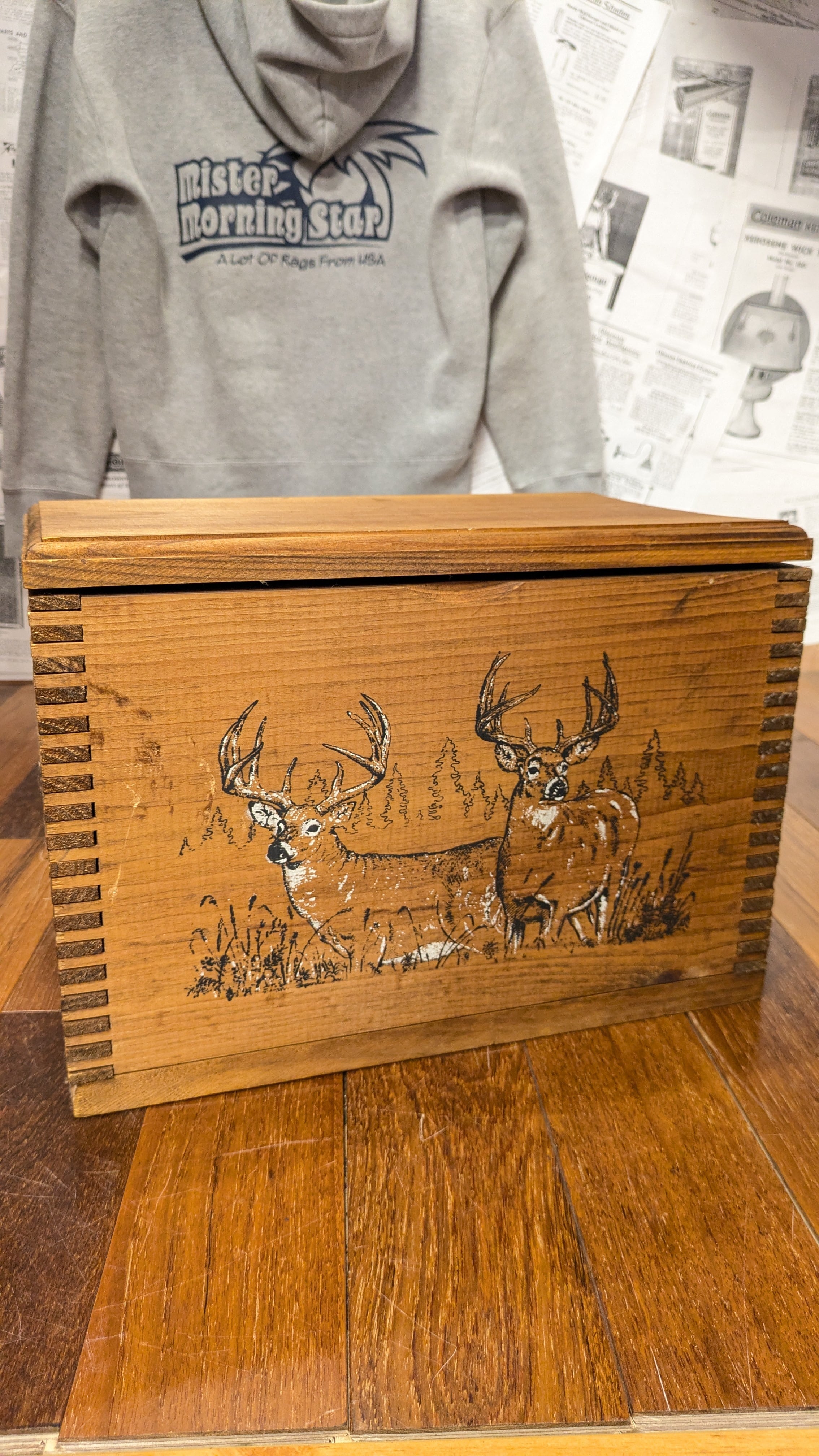 Vintage WoodBox Hunting mini Contrainer Deer Pattern ビンテージ ウッドボックス アンモボックス 木製 木箱 収納ボックス ギアボックス キャンプギア クレート アンティーク 蓋付き