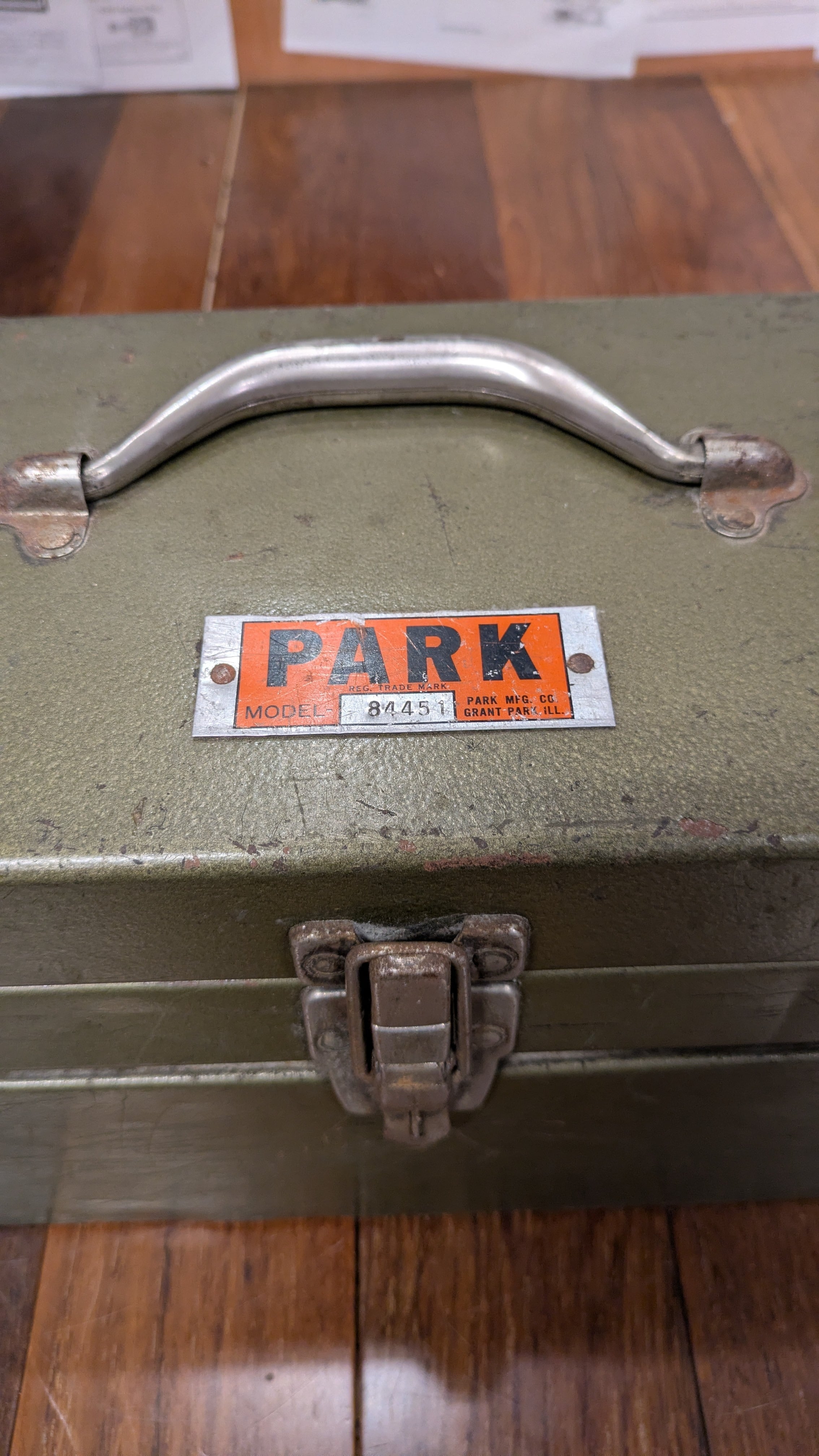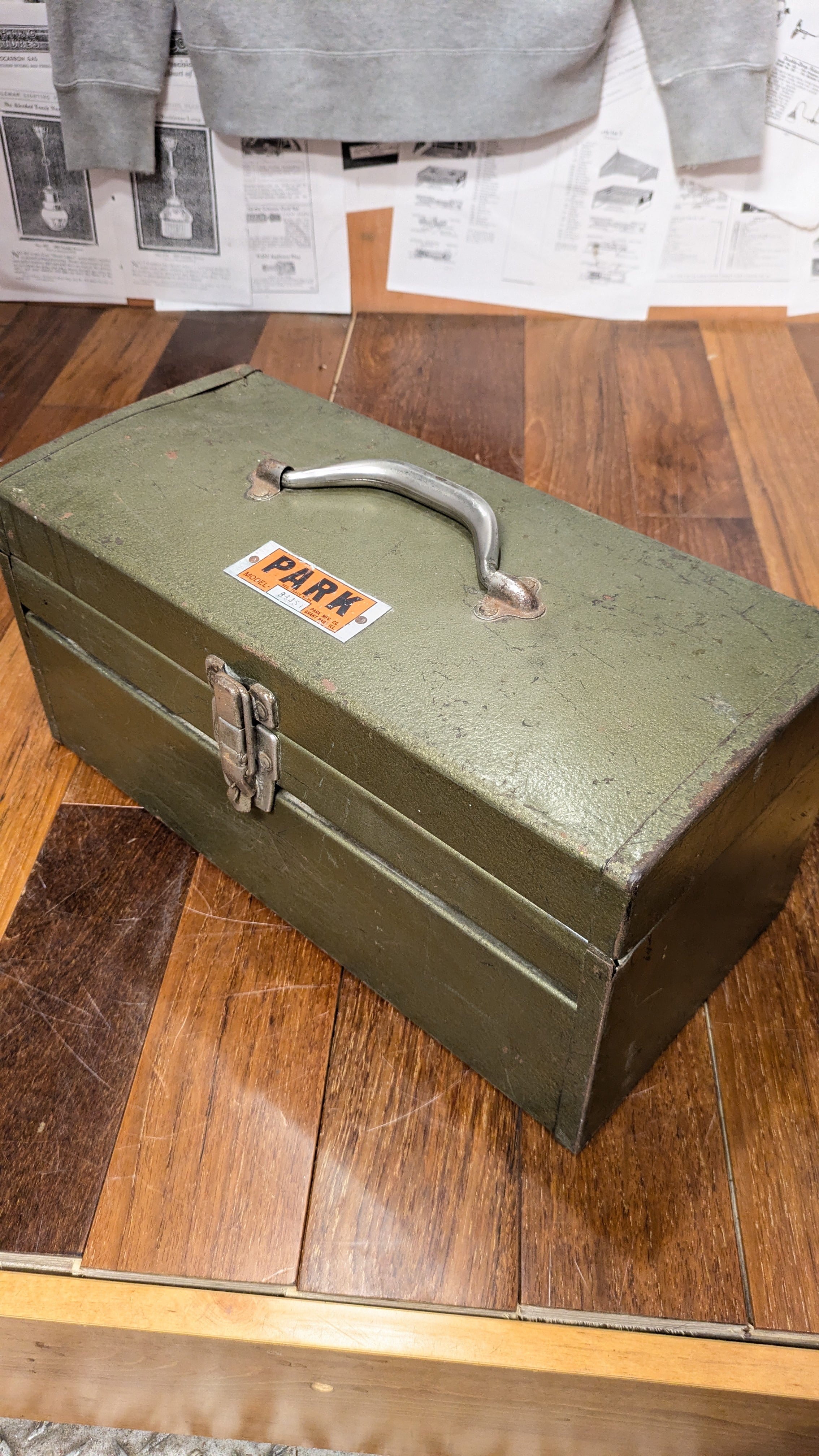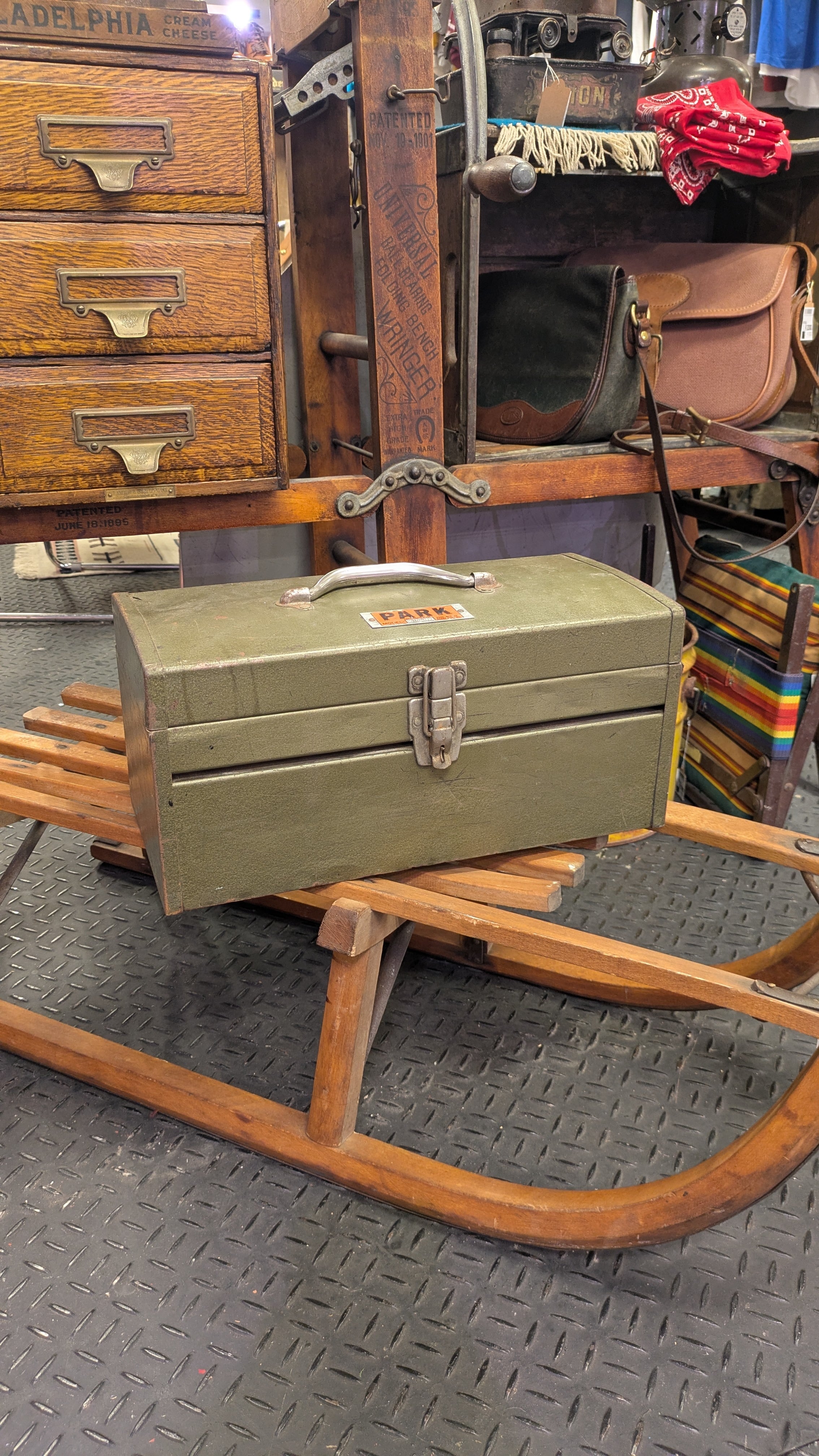 アメリカにて買い付けた貴重なビンテージPARKのメタルツールボックスです。