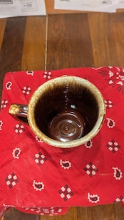 特徴的なブラウンドリップグリーズのビンテージマグカップです。