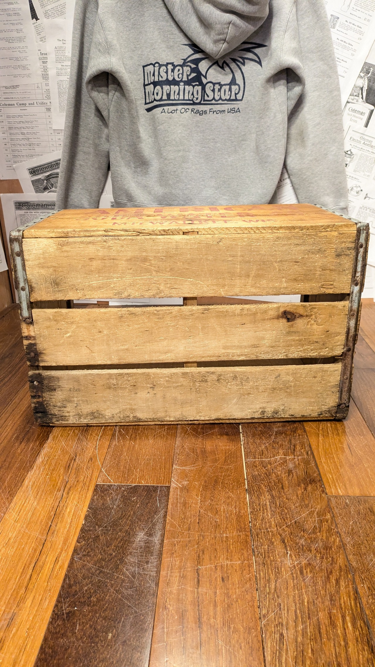アメリカにて買い付けた珍しいビンテージAmericanSodaWater Coのウッドボックスです。