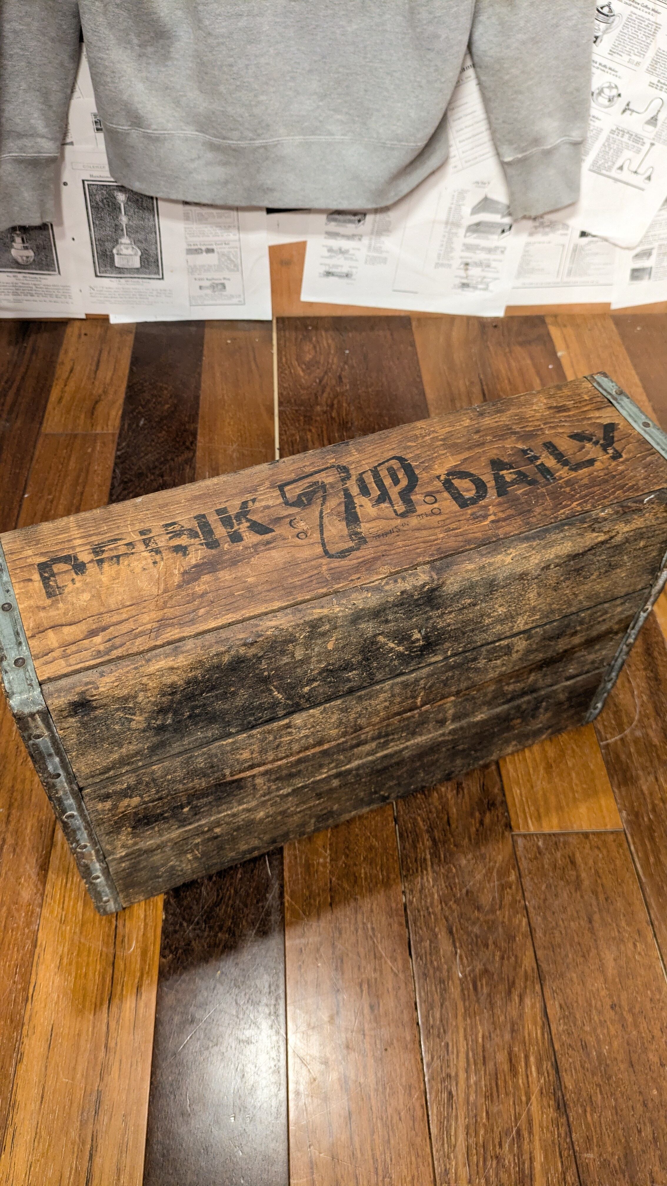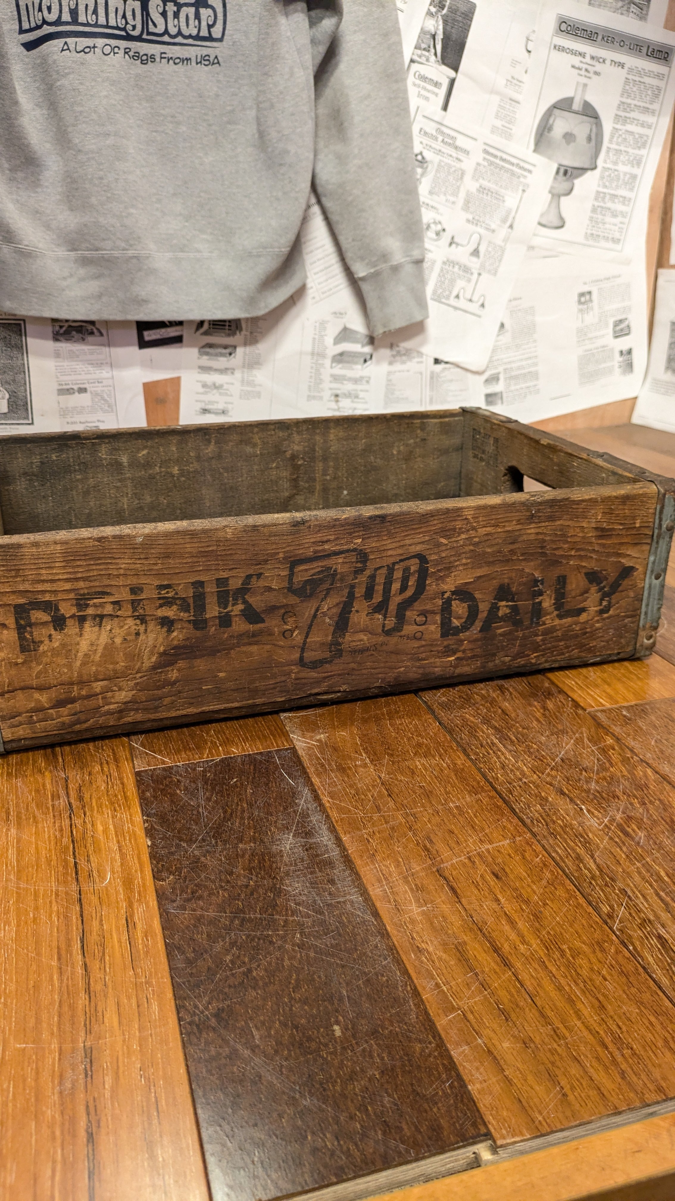 アメリカにて買い付けた人気の高いビンテージ7UPのウッドボックスです。