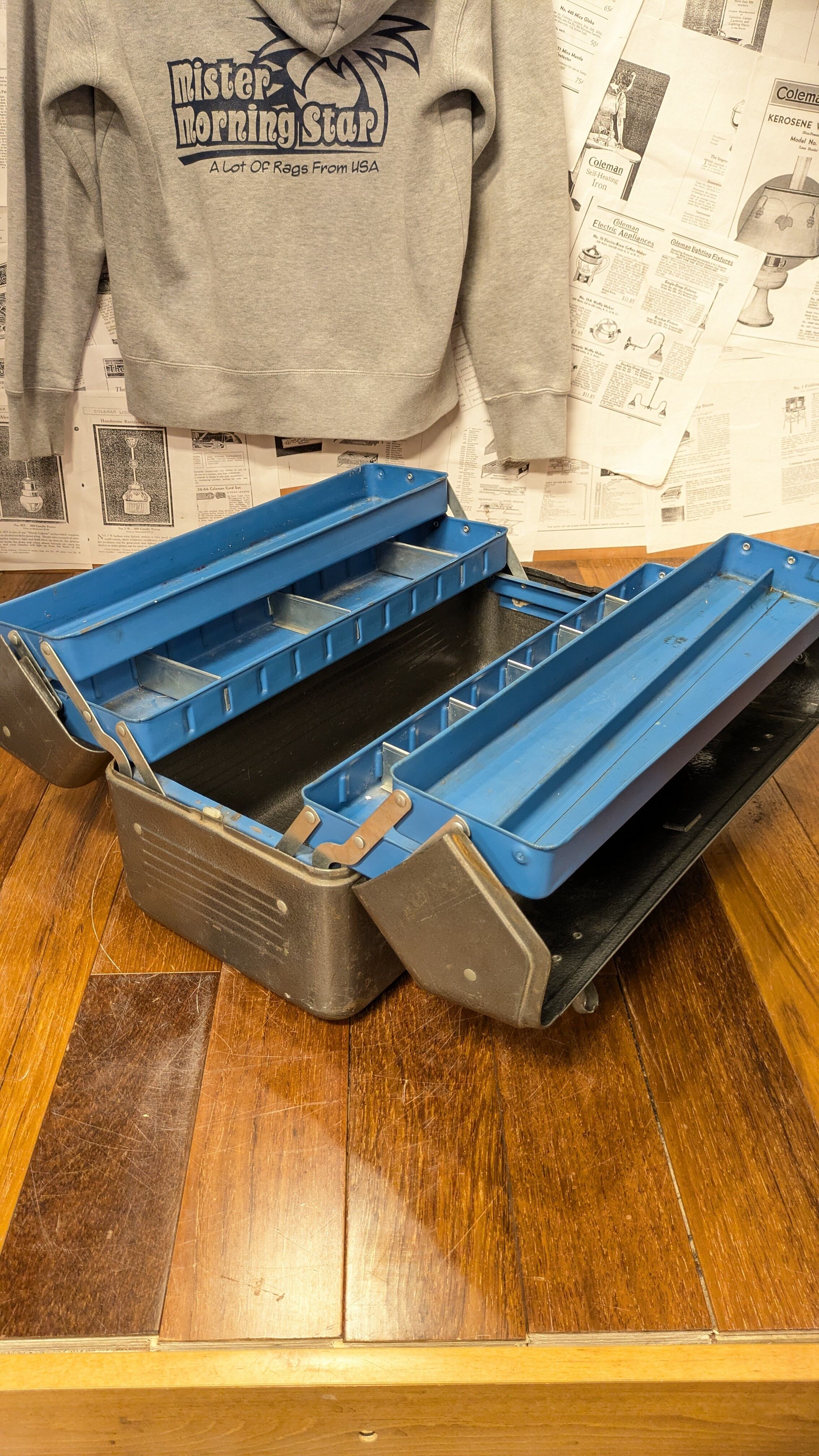 アメリカらしい凝った造りのツールボックスは、力強く、どこか遊び心もあるフォルムで、