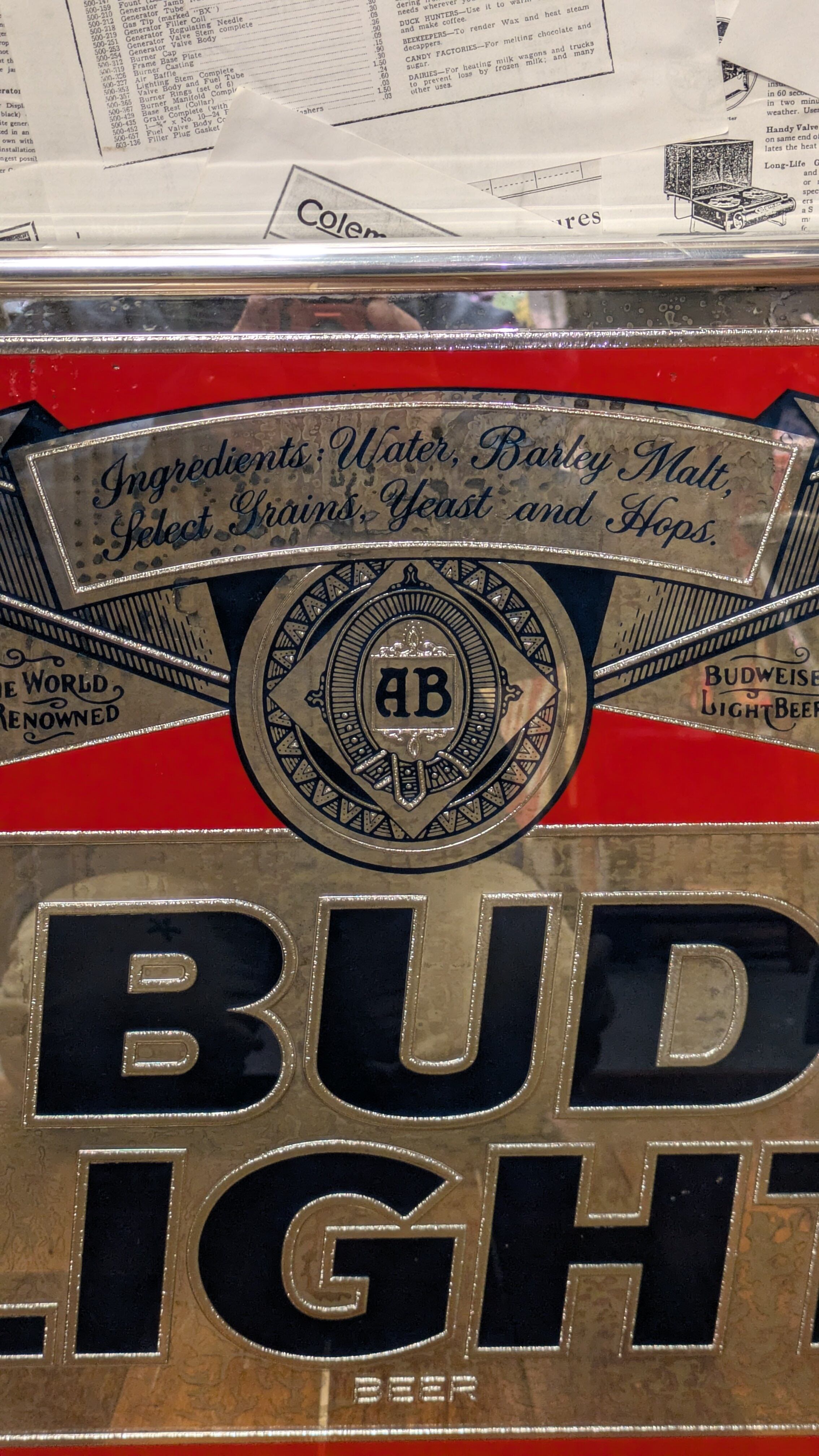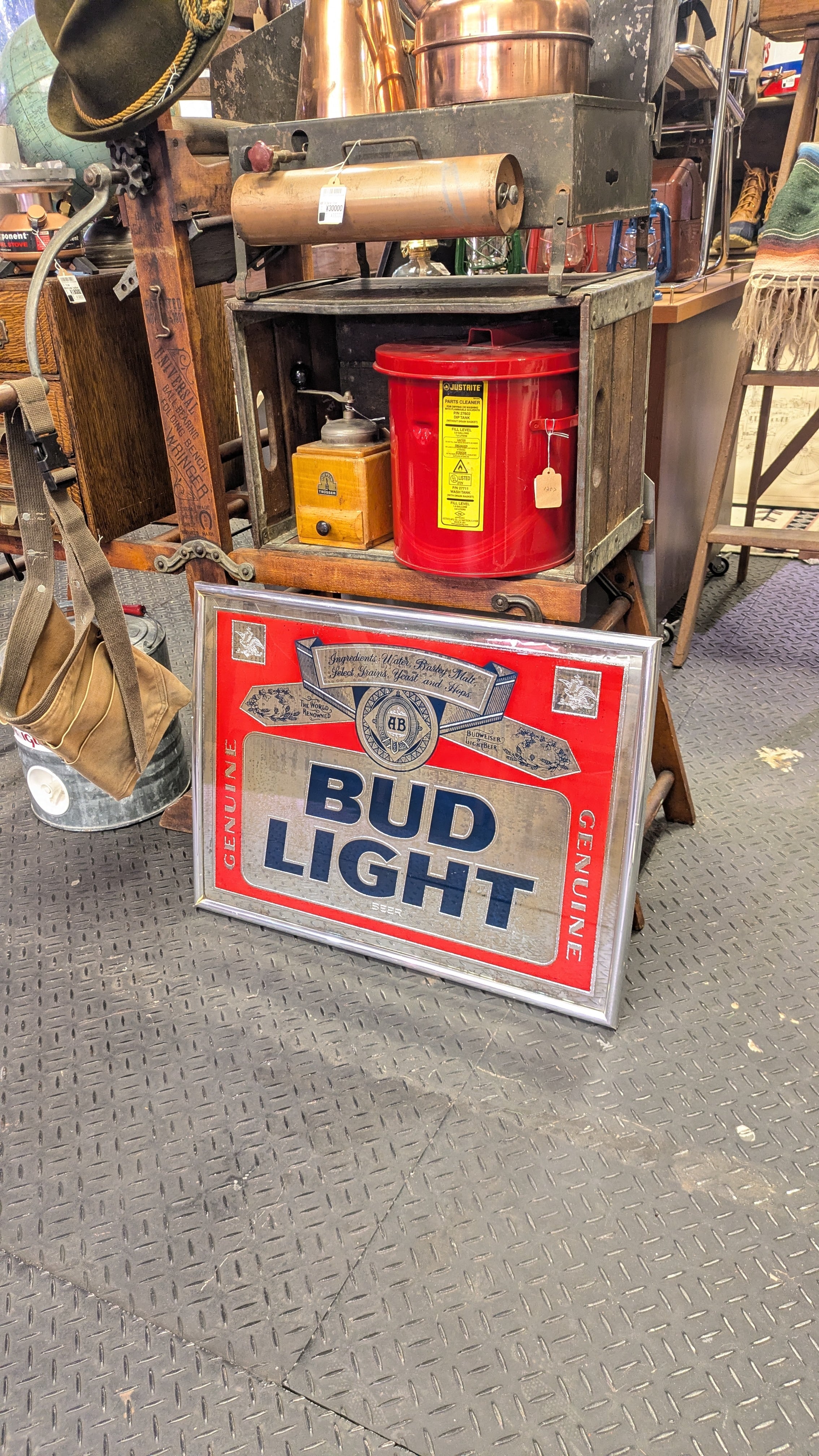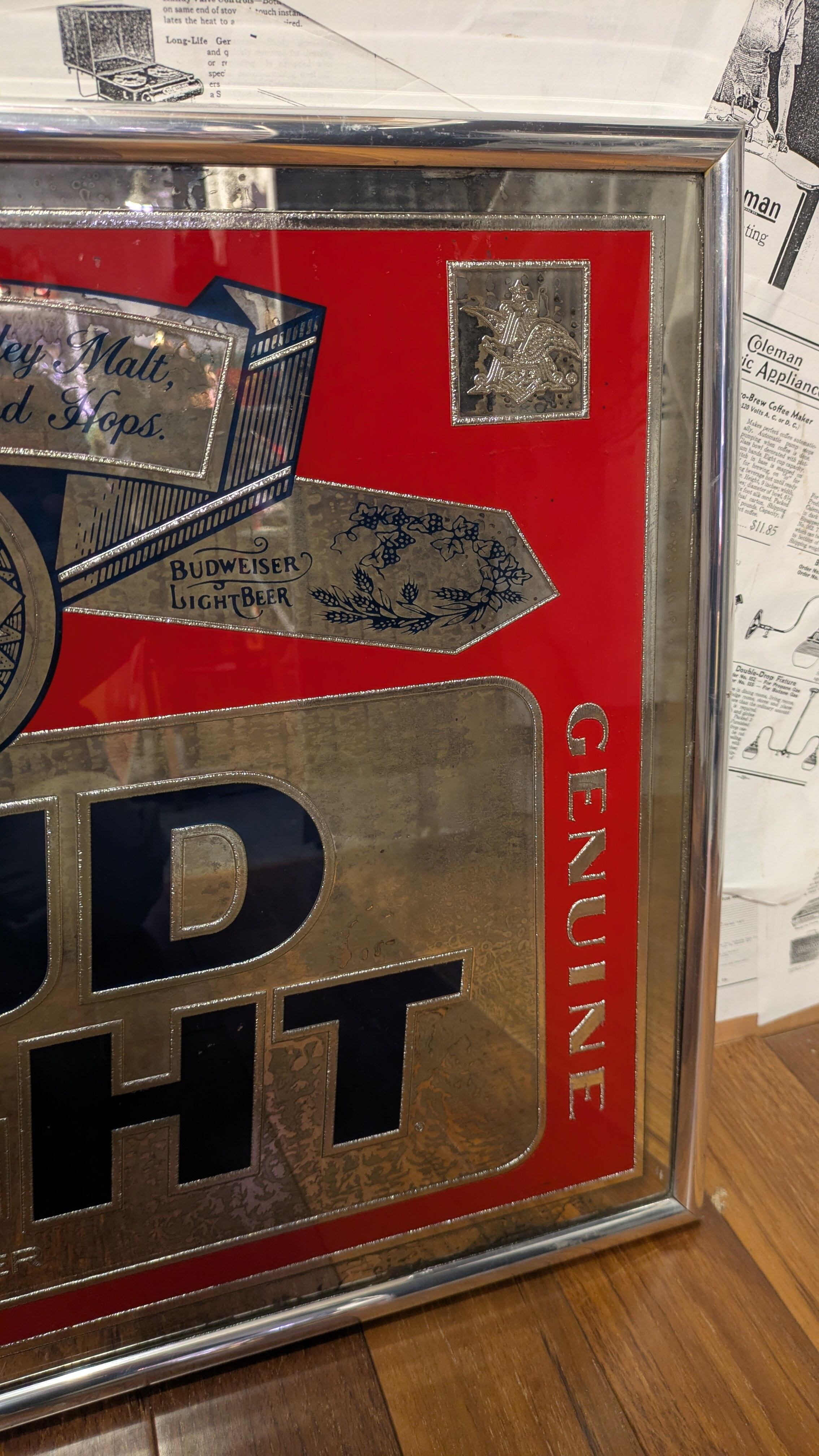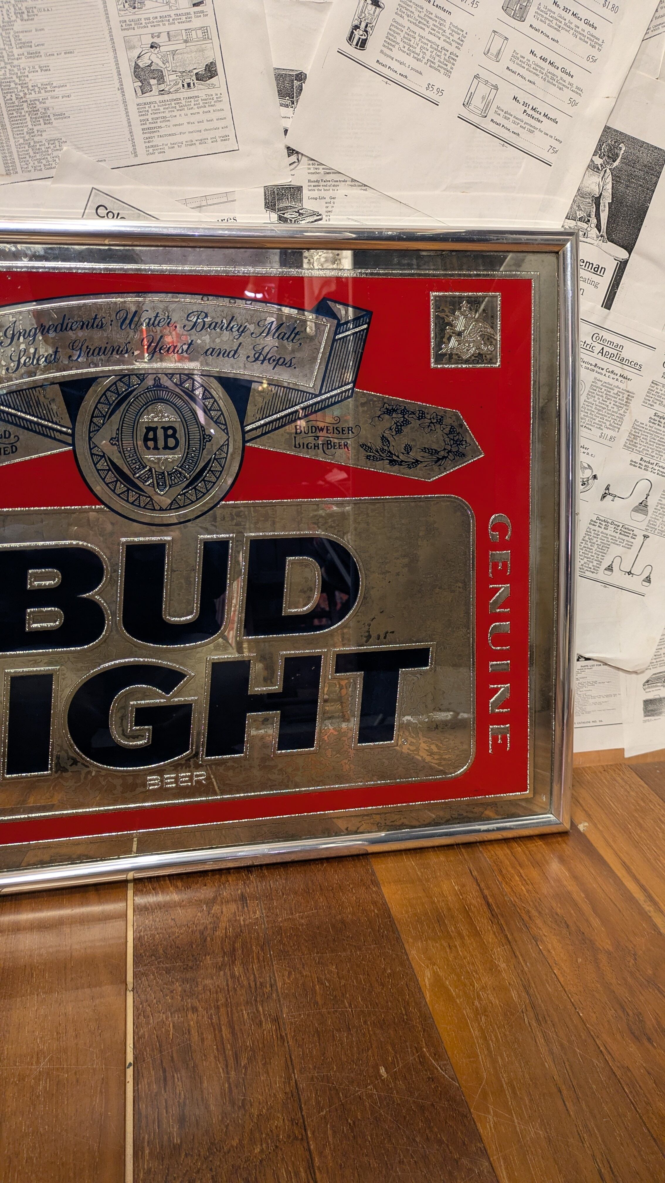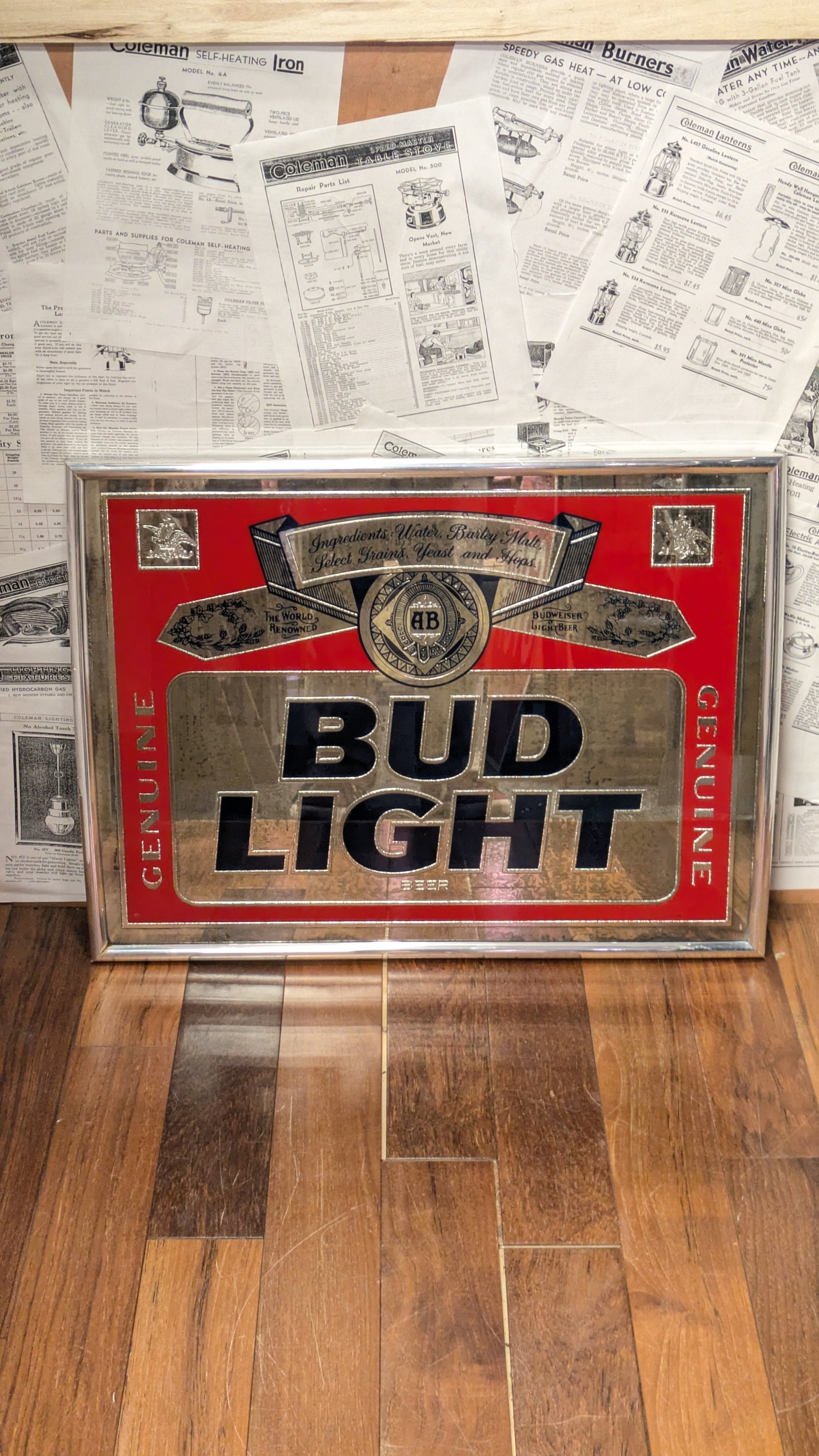 アメリカにて買い付けた珍しい赤のビンテージBudLightのパブミラーです。