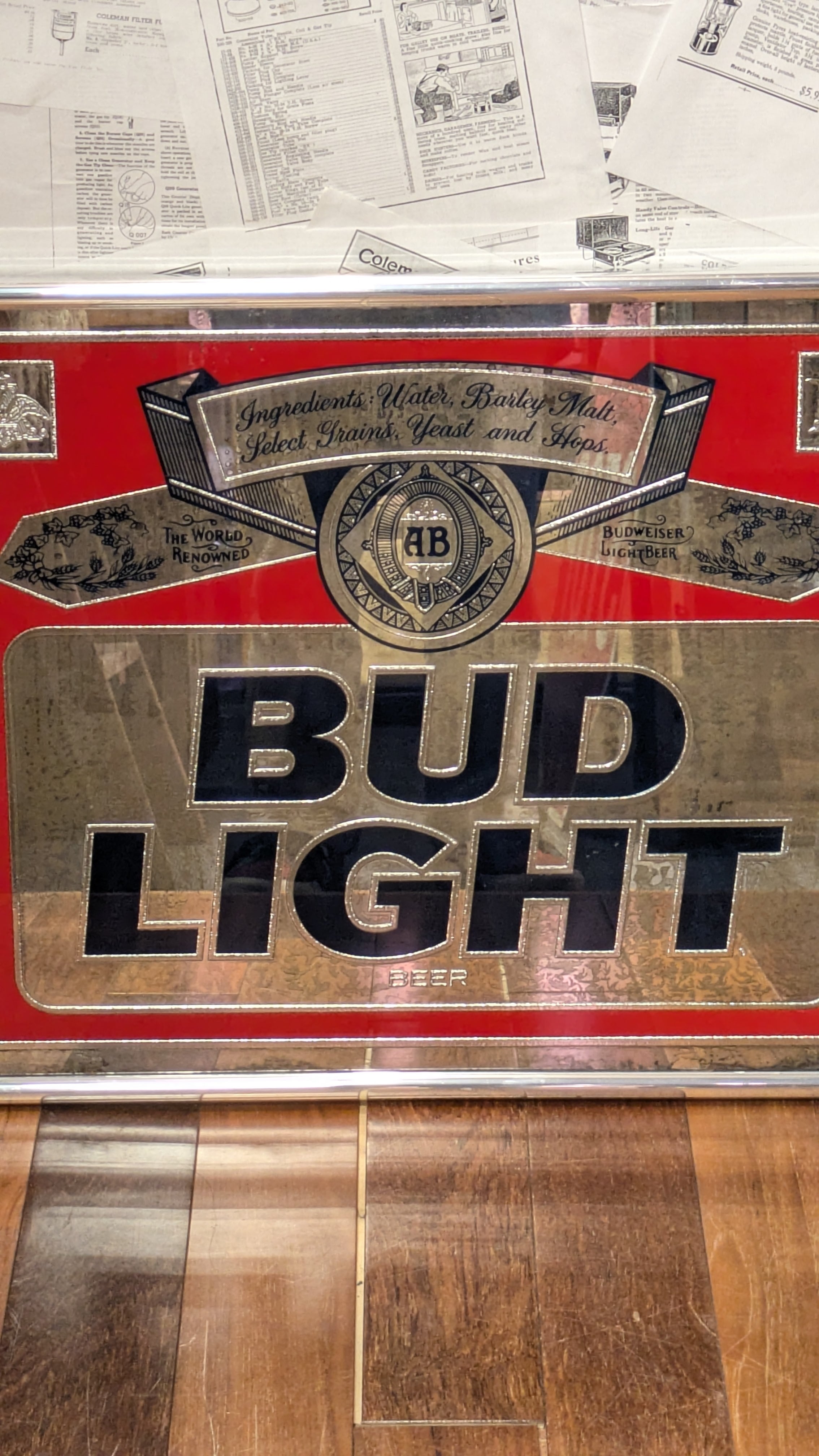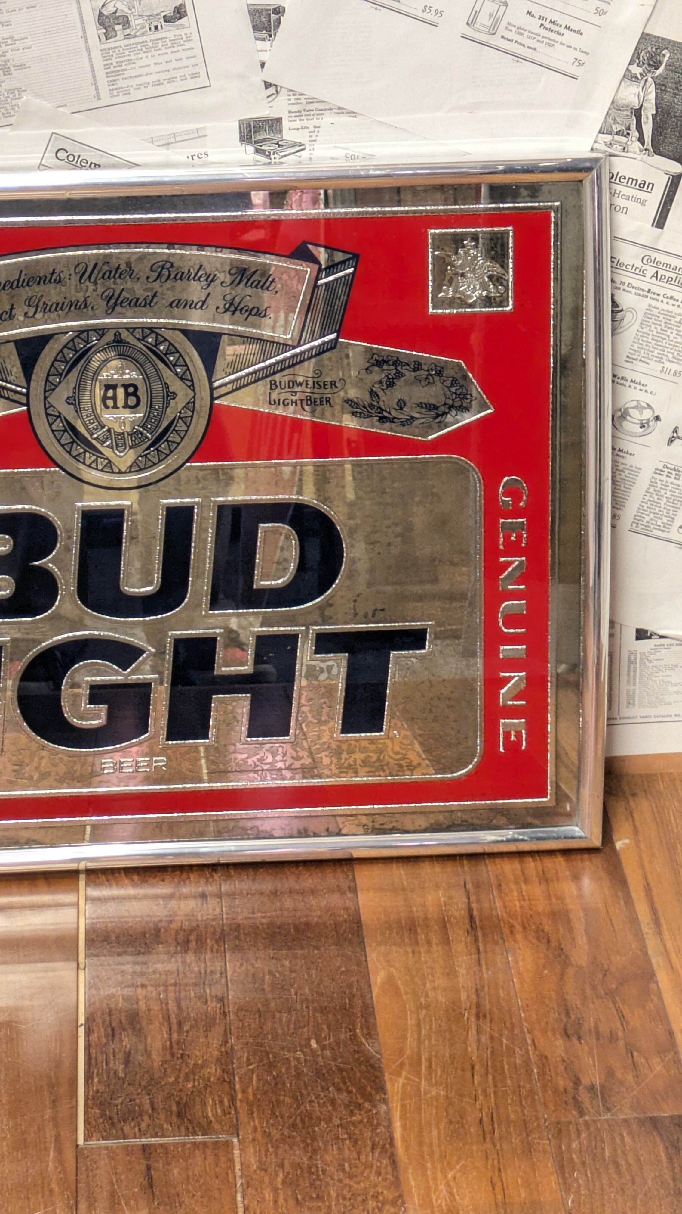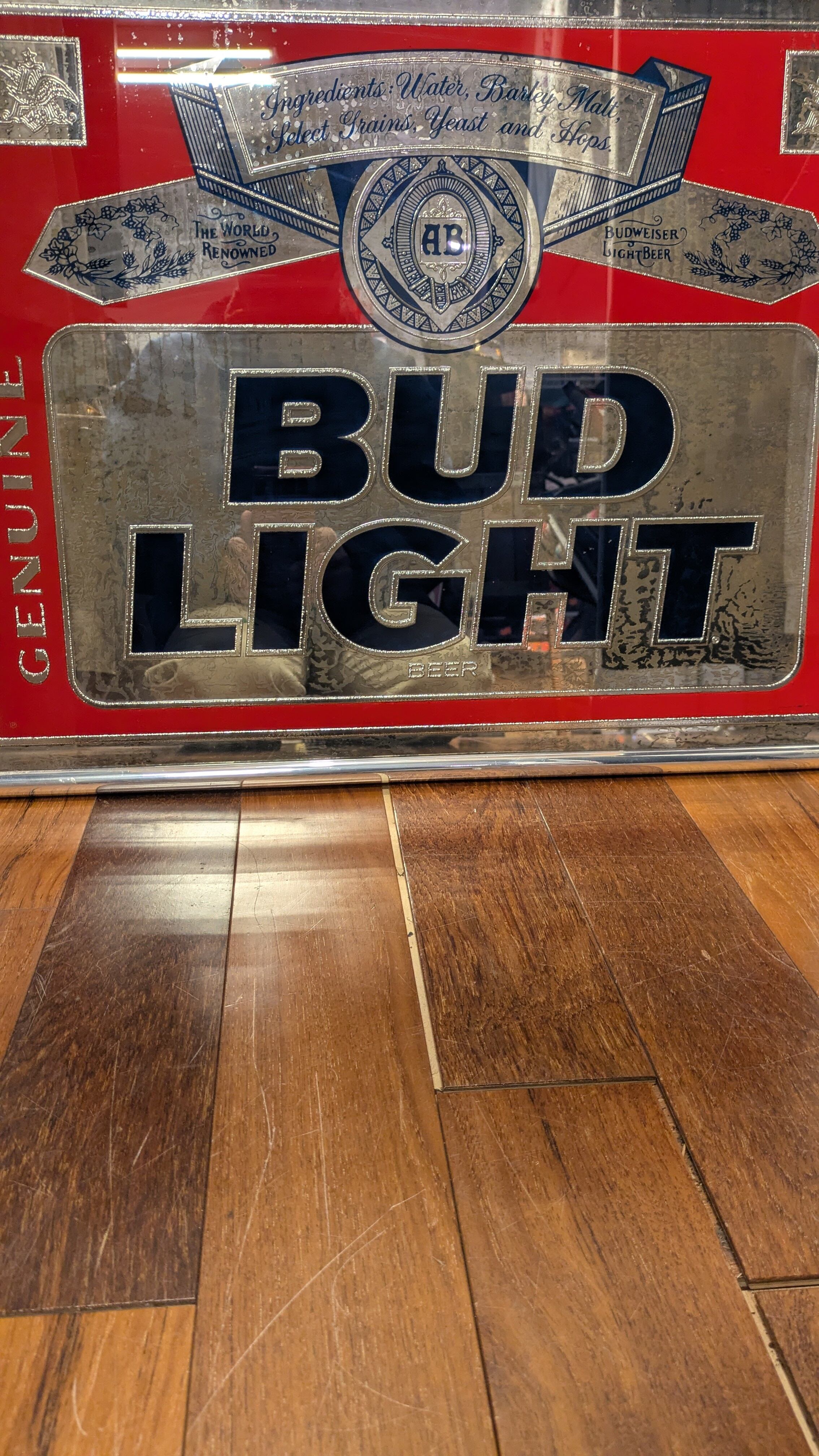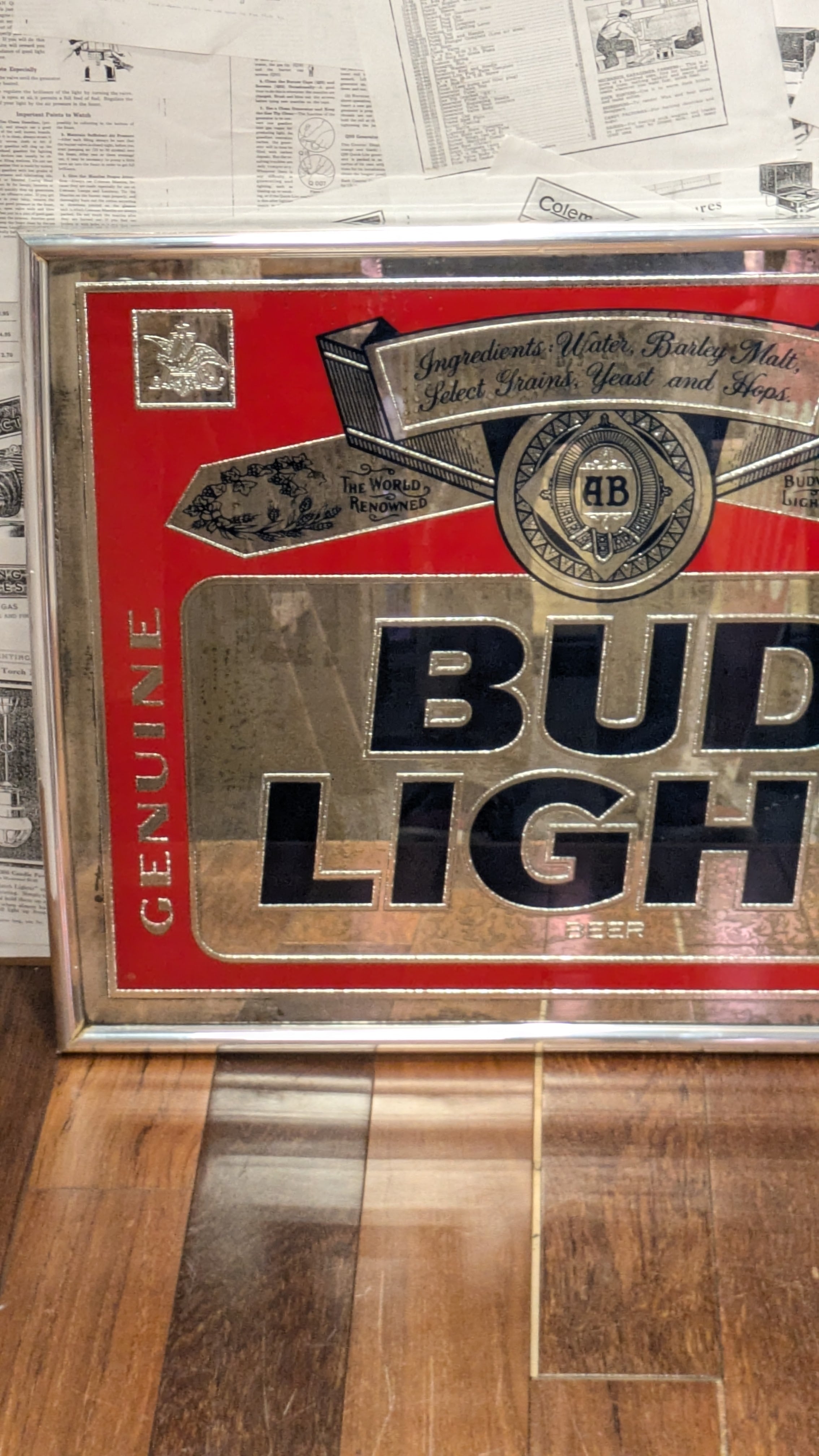 Vintage BudLight PubMirror Sign USA SignPlate SignMirror ビンテージ バドライト パブミラー 壁掛け鏡 アメリカ製 ビンテージ雑貨 アメリカ雑貨 1990年