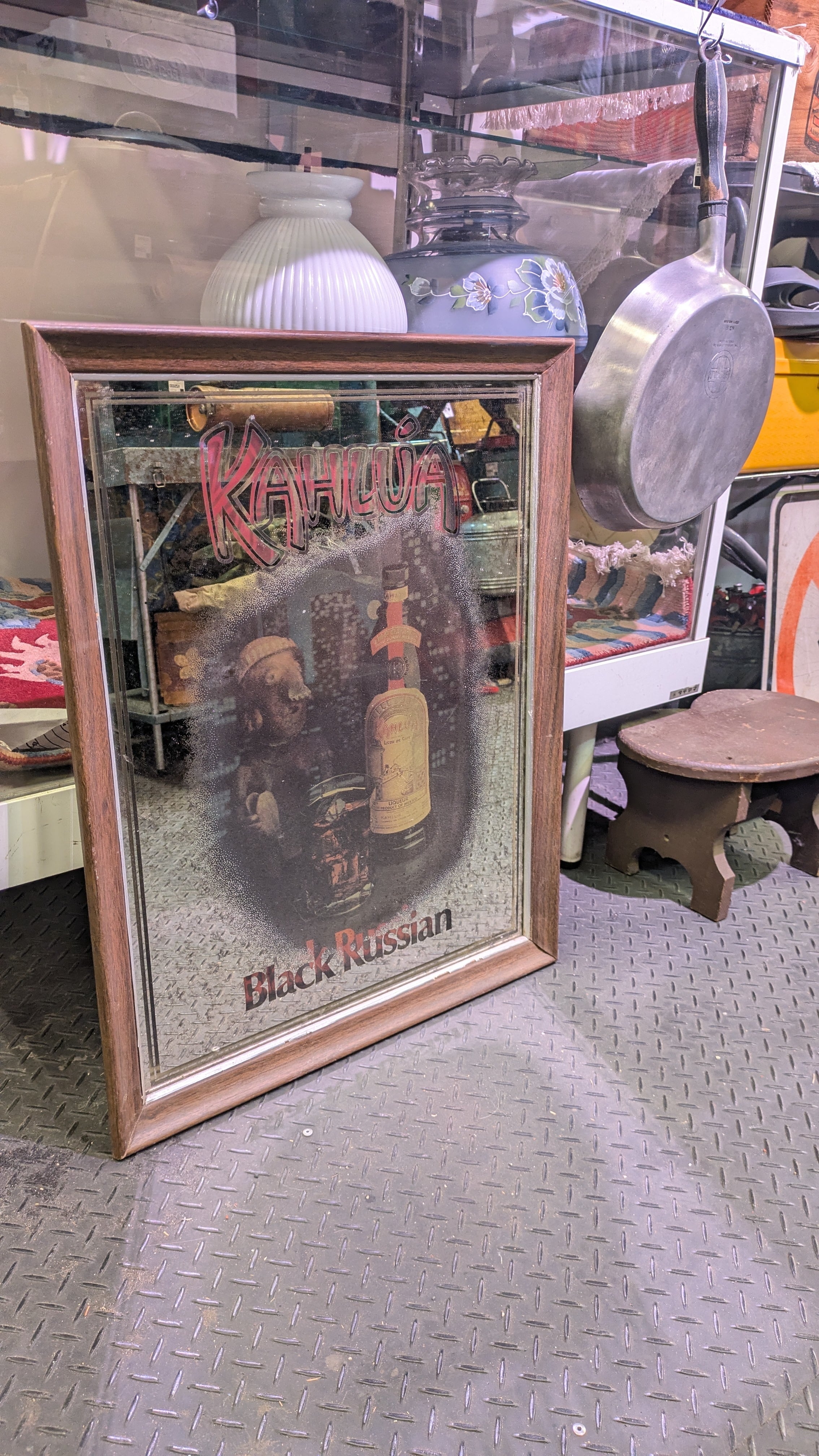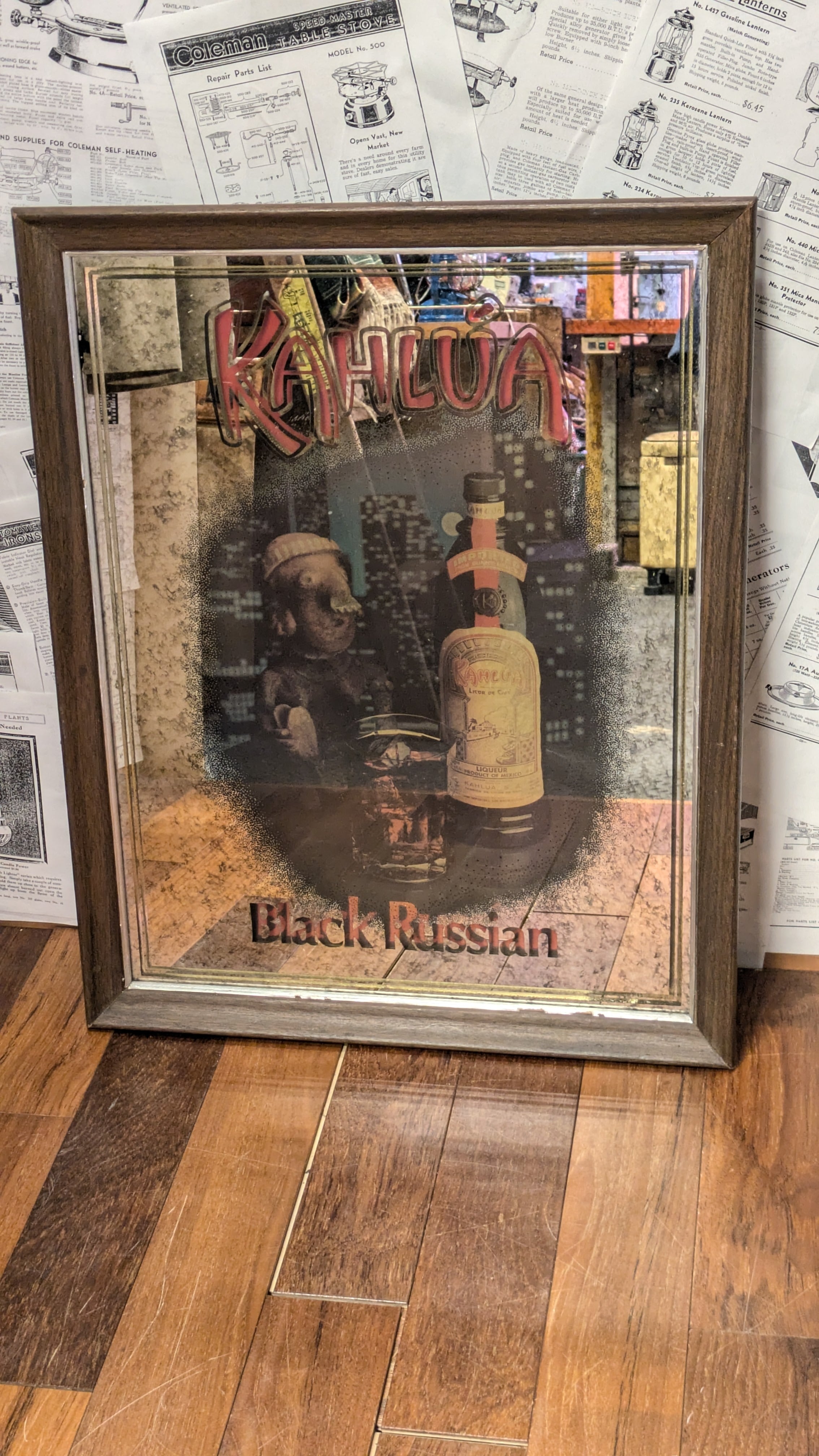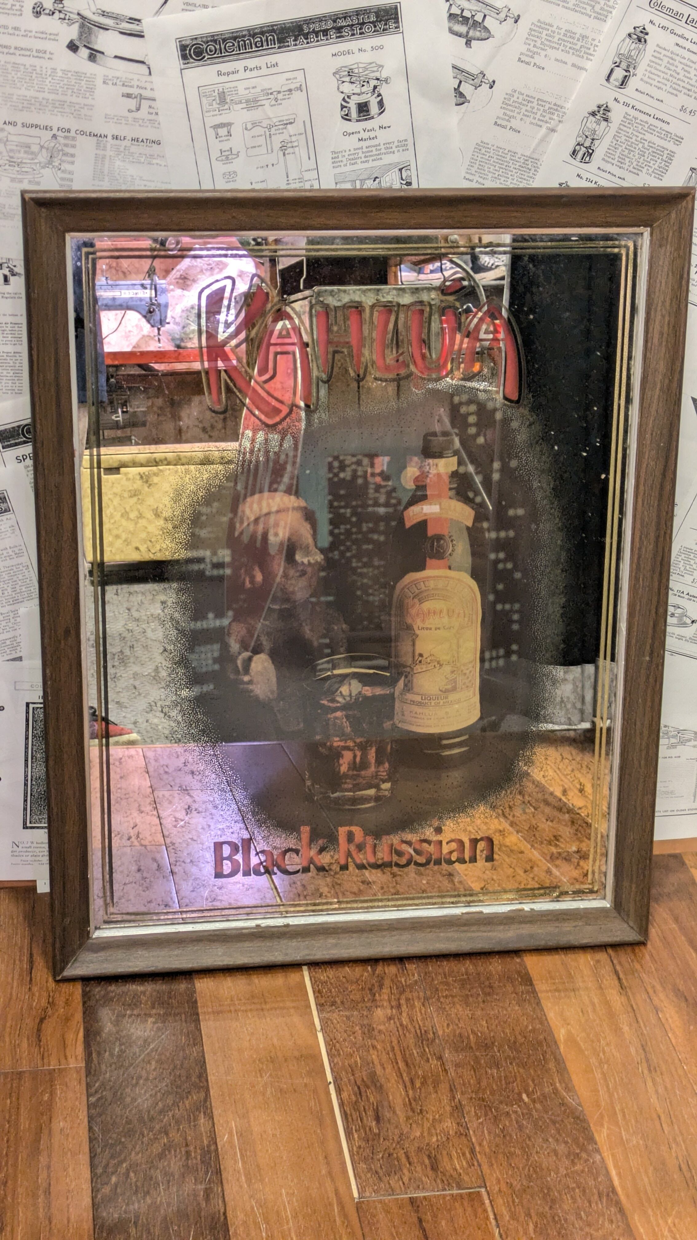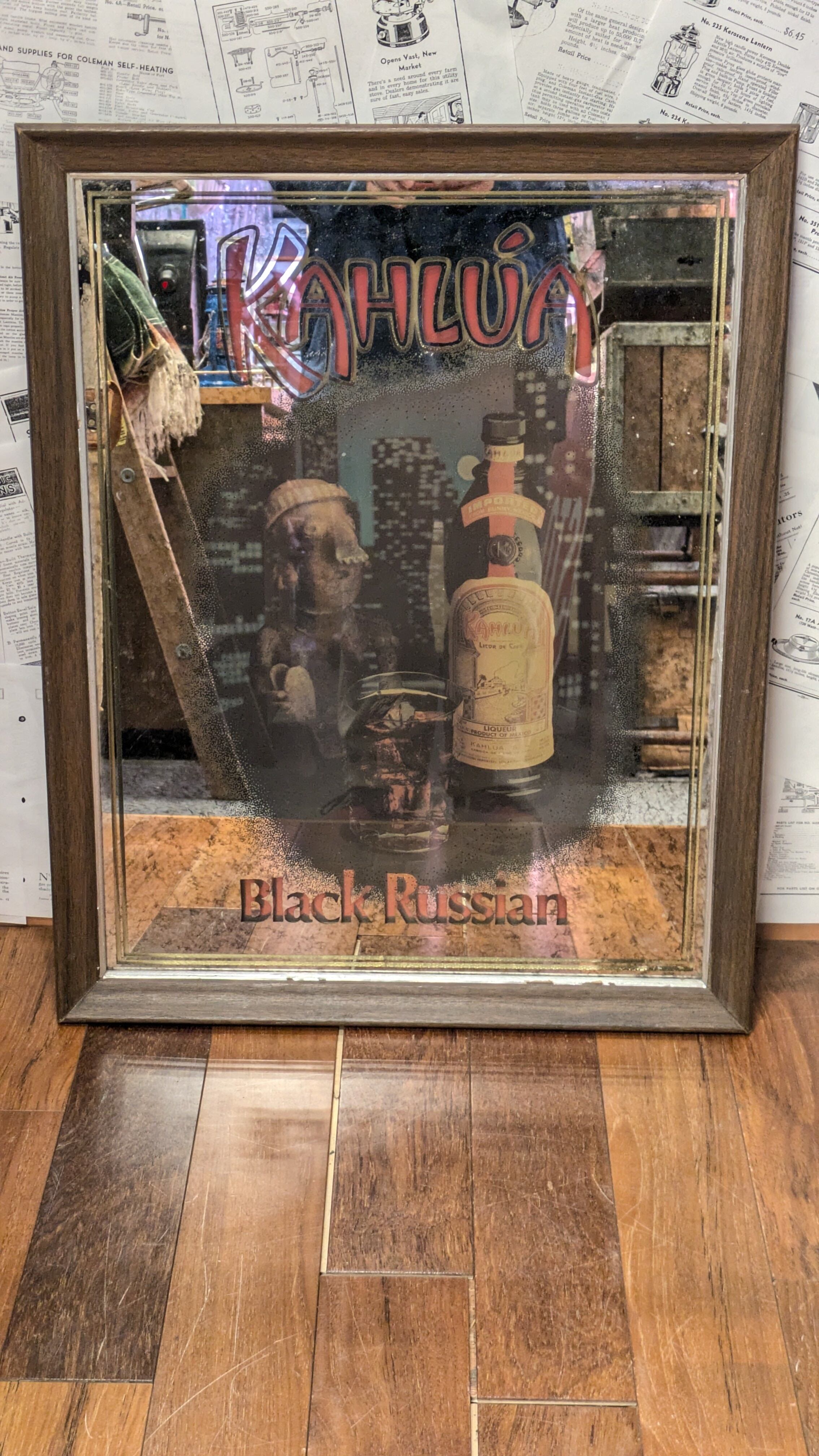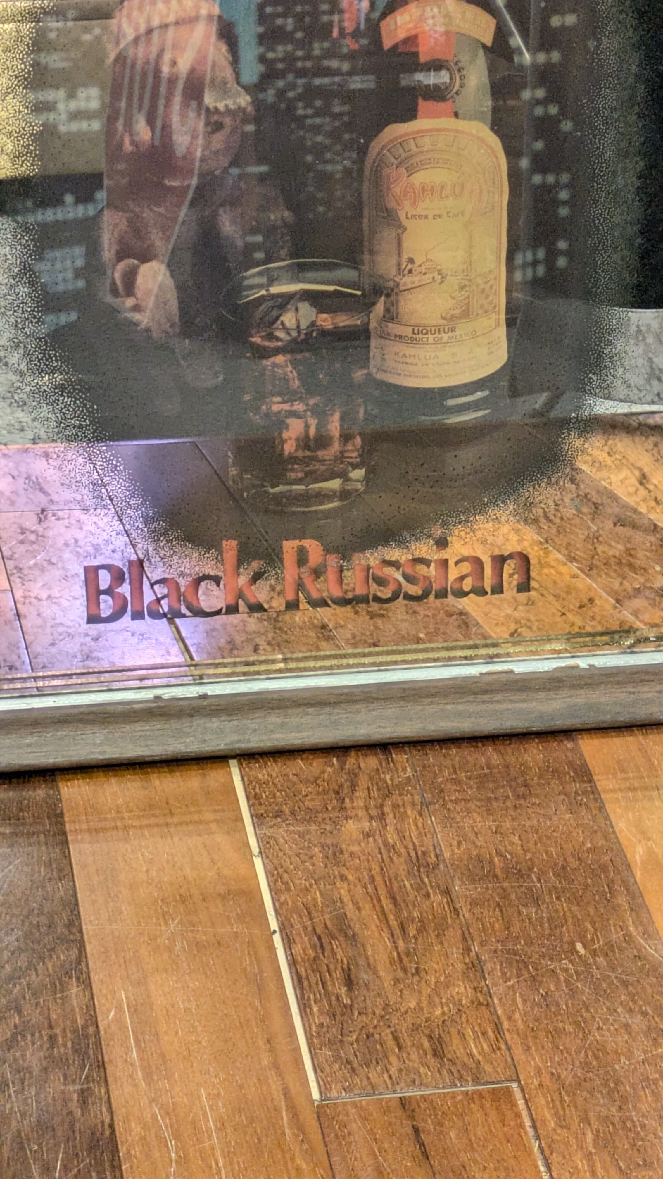 Rare Vintage Kahlua BlackRussian PubMirror Sign USA SignPlate SignMirror ビンテージ カルーア ブラックルシアン 壁掛け鏡 アメリカ製 ビンテージ雑貨 アメリカ雑貨