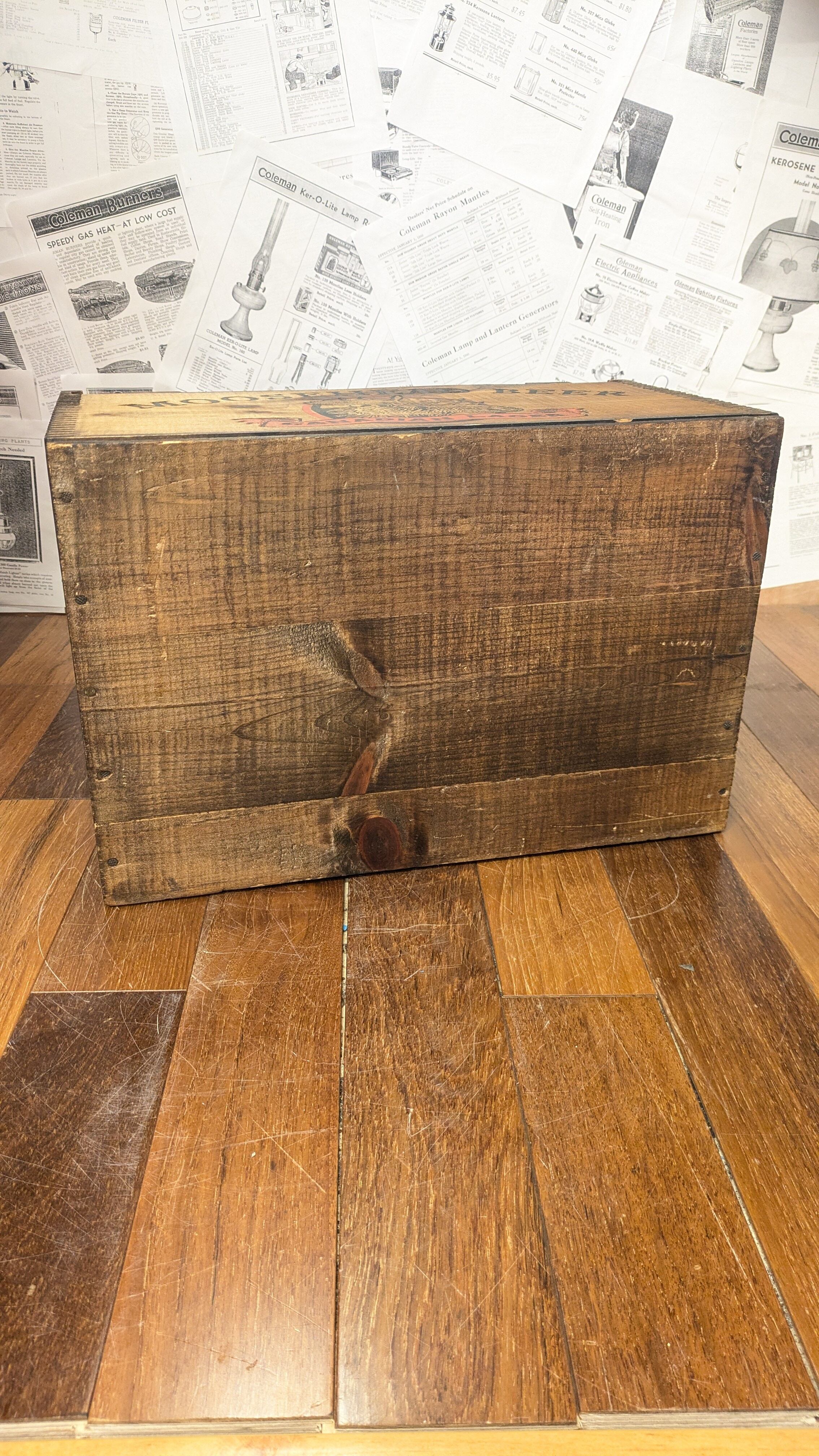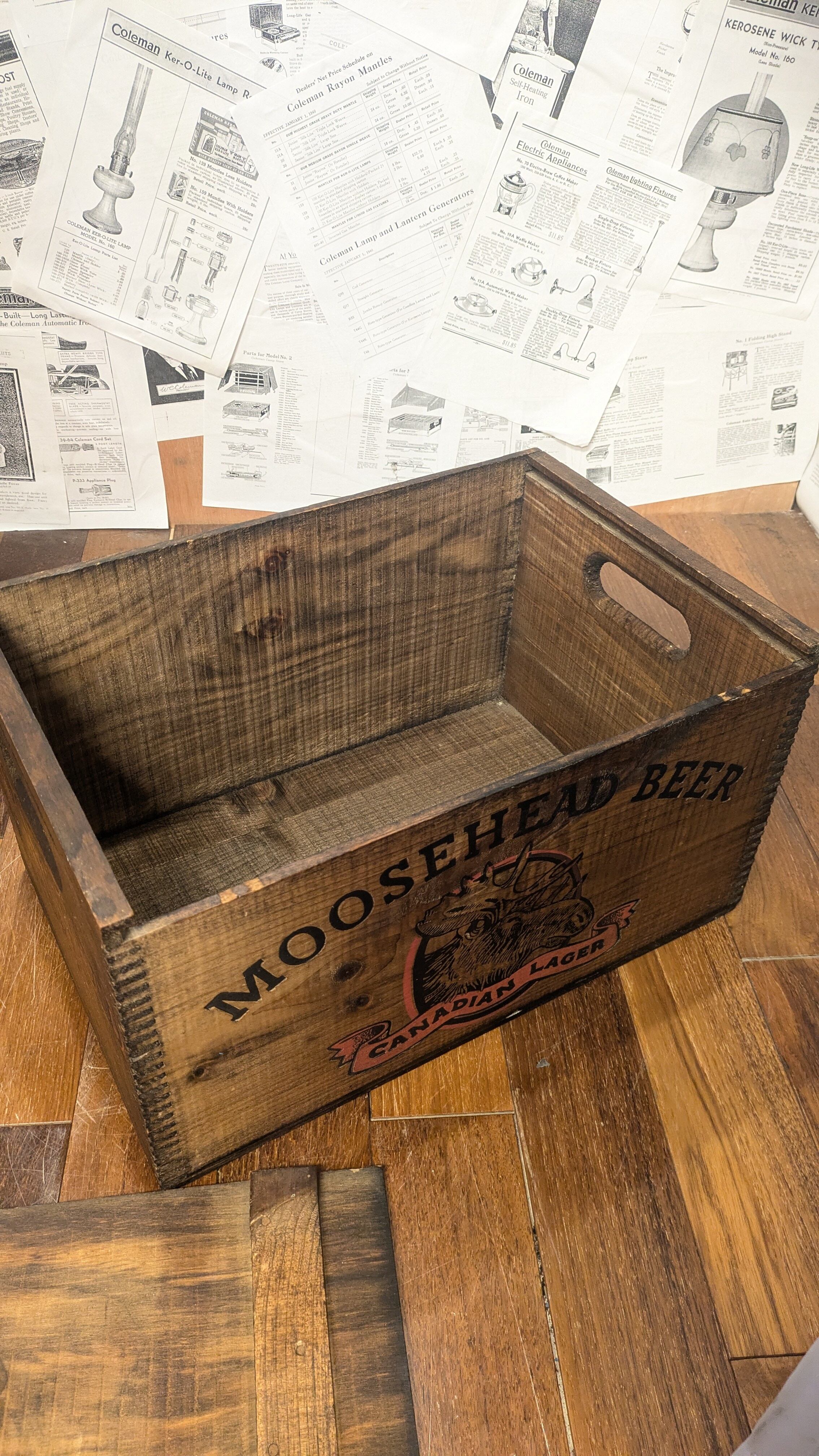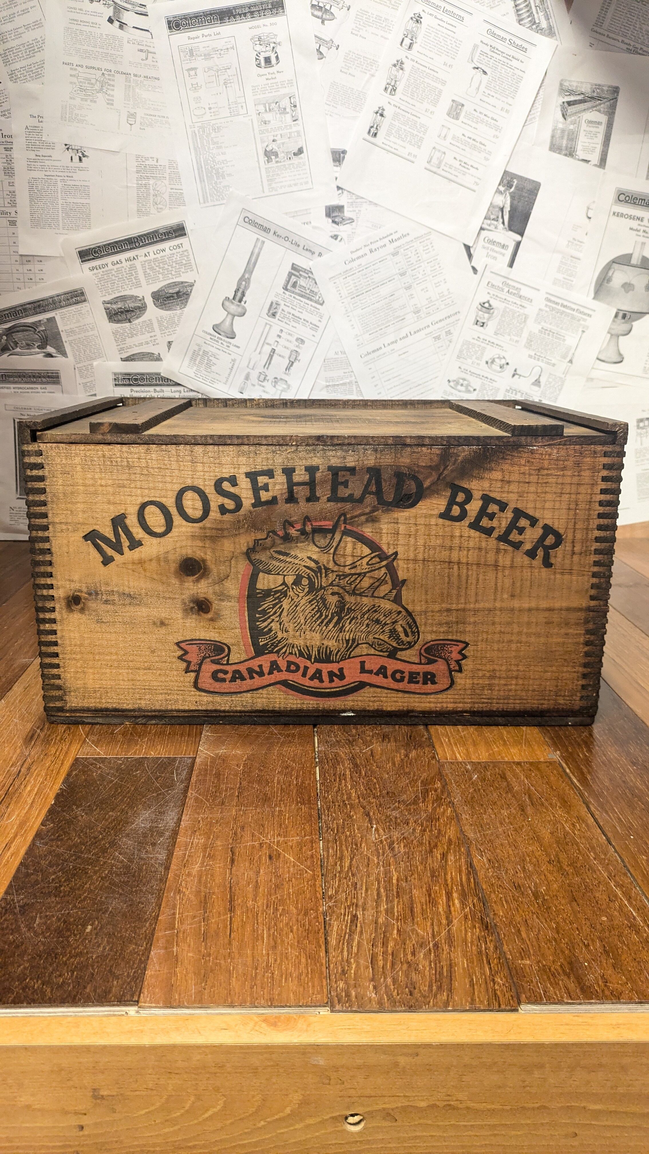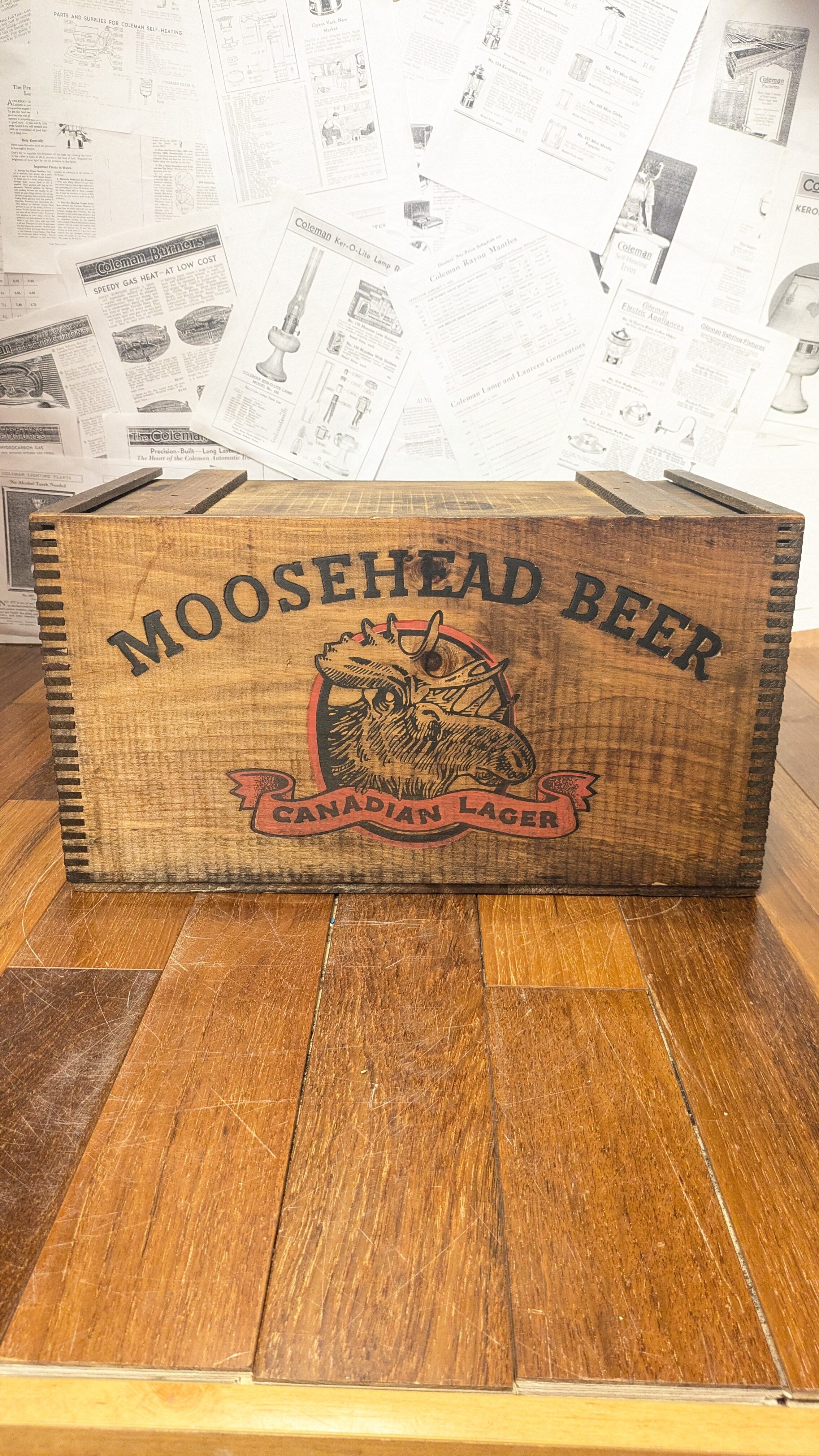 MINT!! Vintage MOOSEHEAD BEER Crate WoodBox StorageBox Antique ビンテージ ムースヘッド ウッドボックス 木箱 収納ボックス 蓋付き木箱