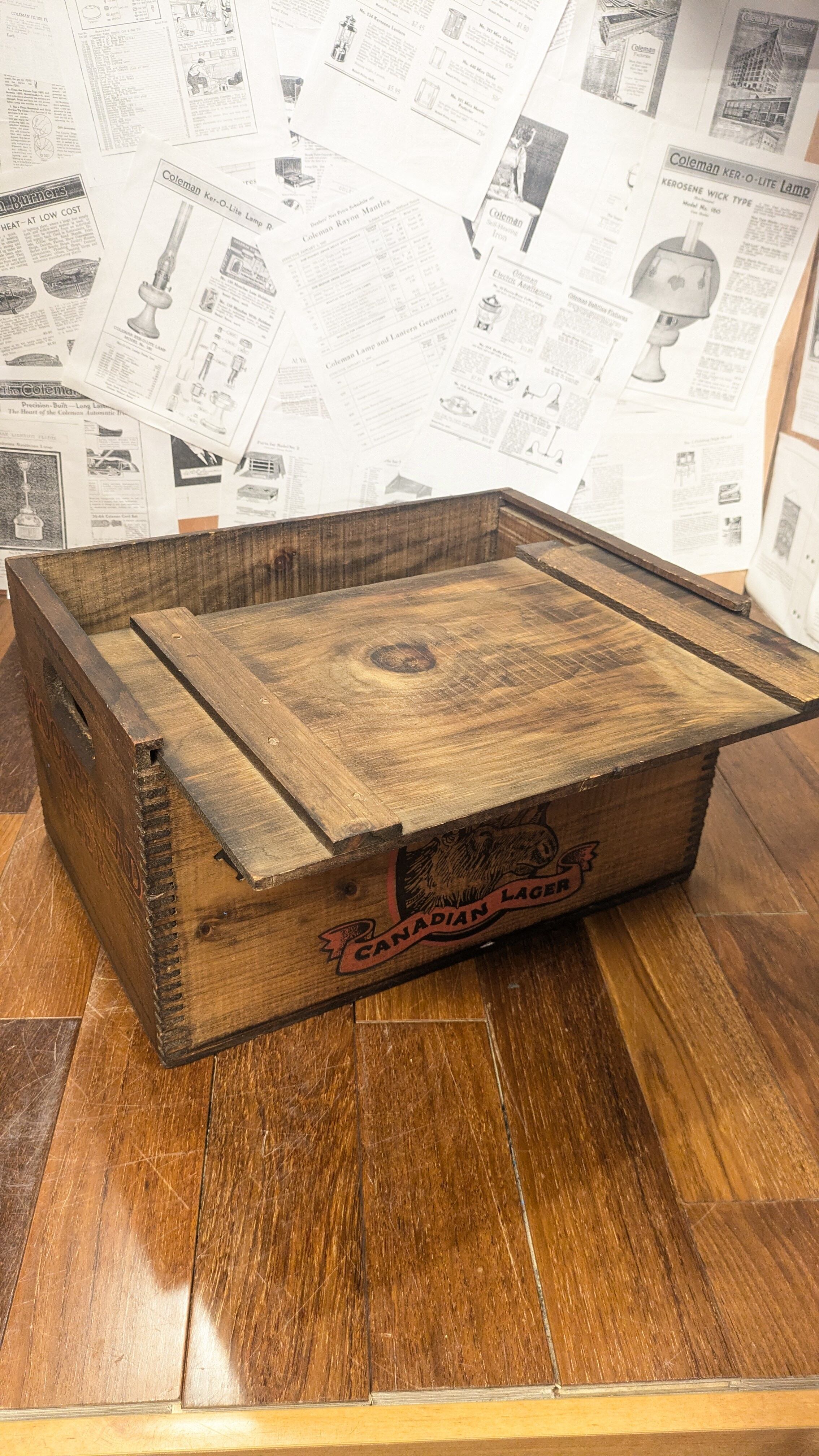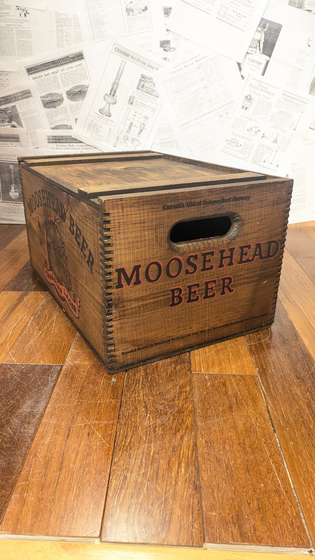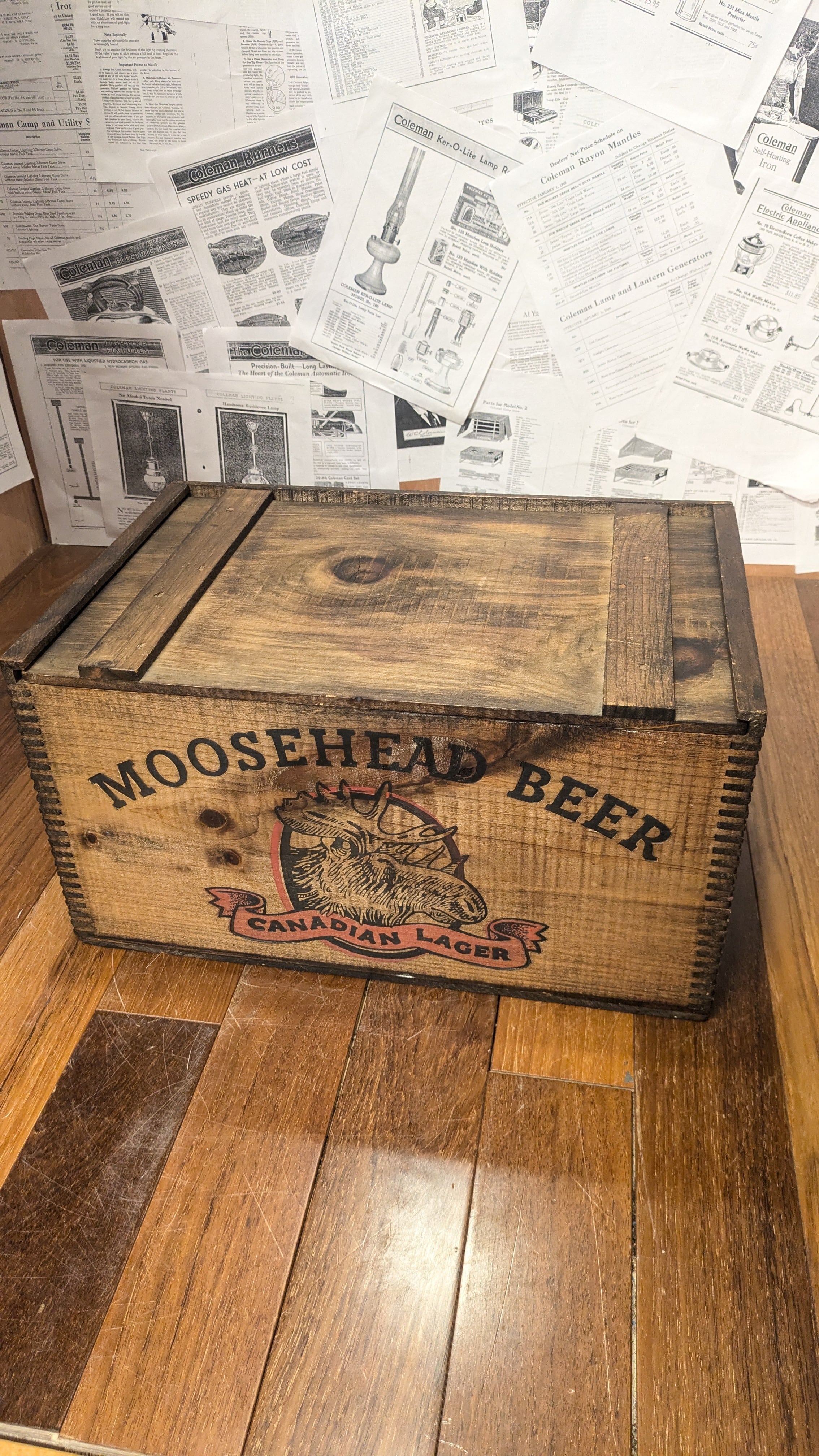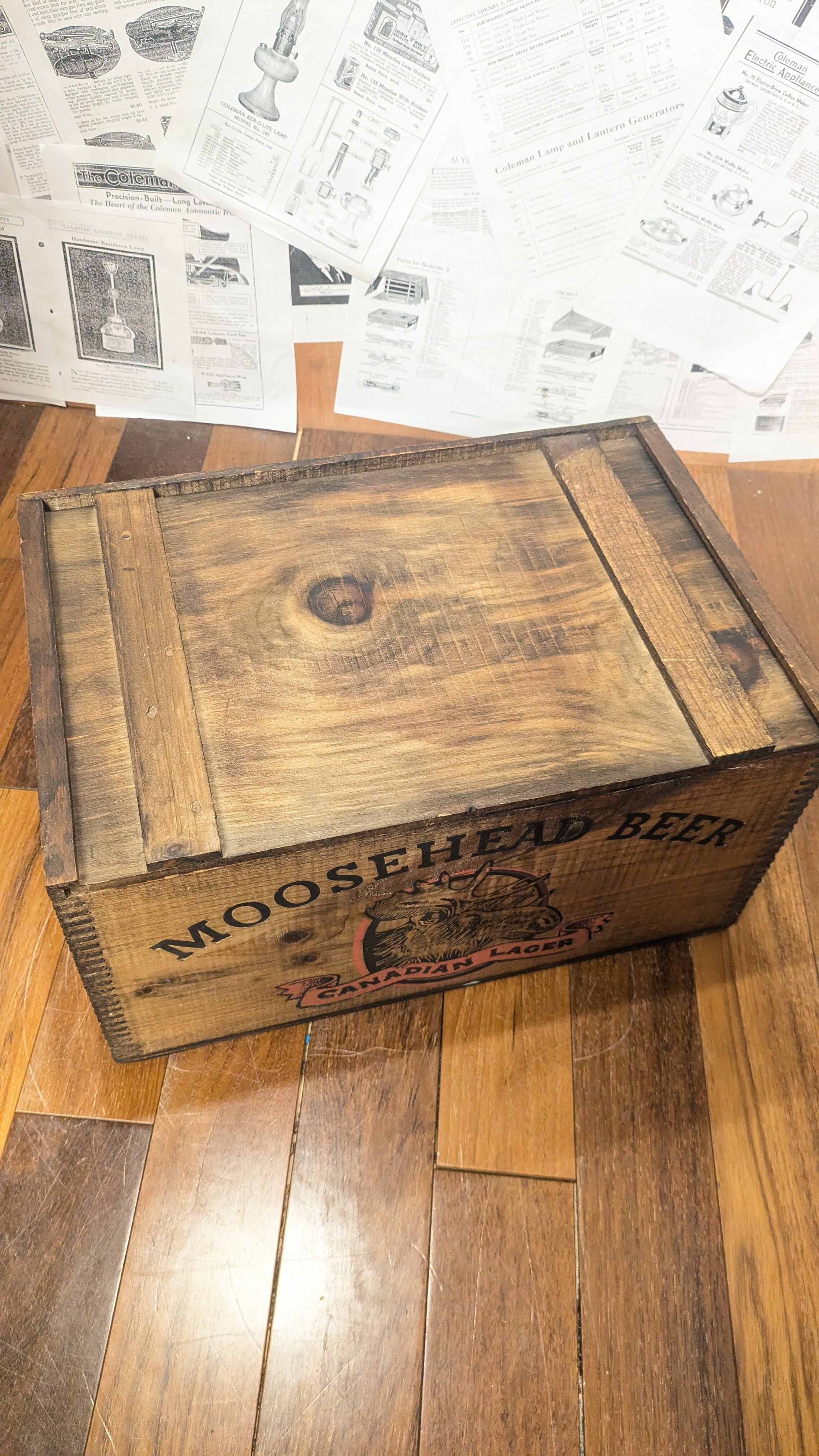 MINT!! Vintage MOOSEHEAD BEER Crate WoodBox StorageBox Antique ビンテージ ムースヘッド ウッドボックス 木箱 収納ボックス 蓋付き木箱