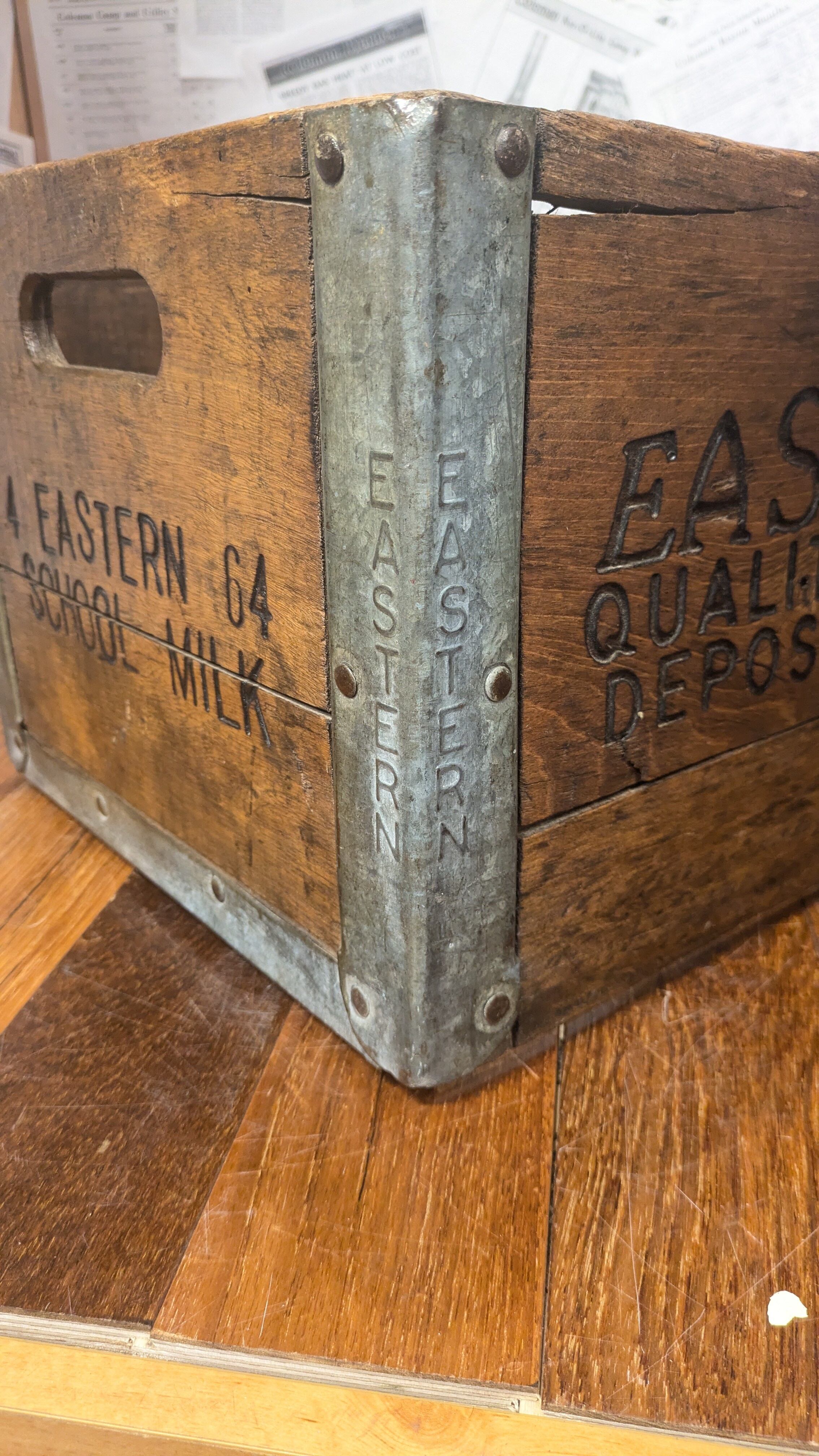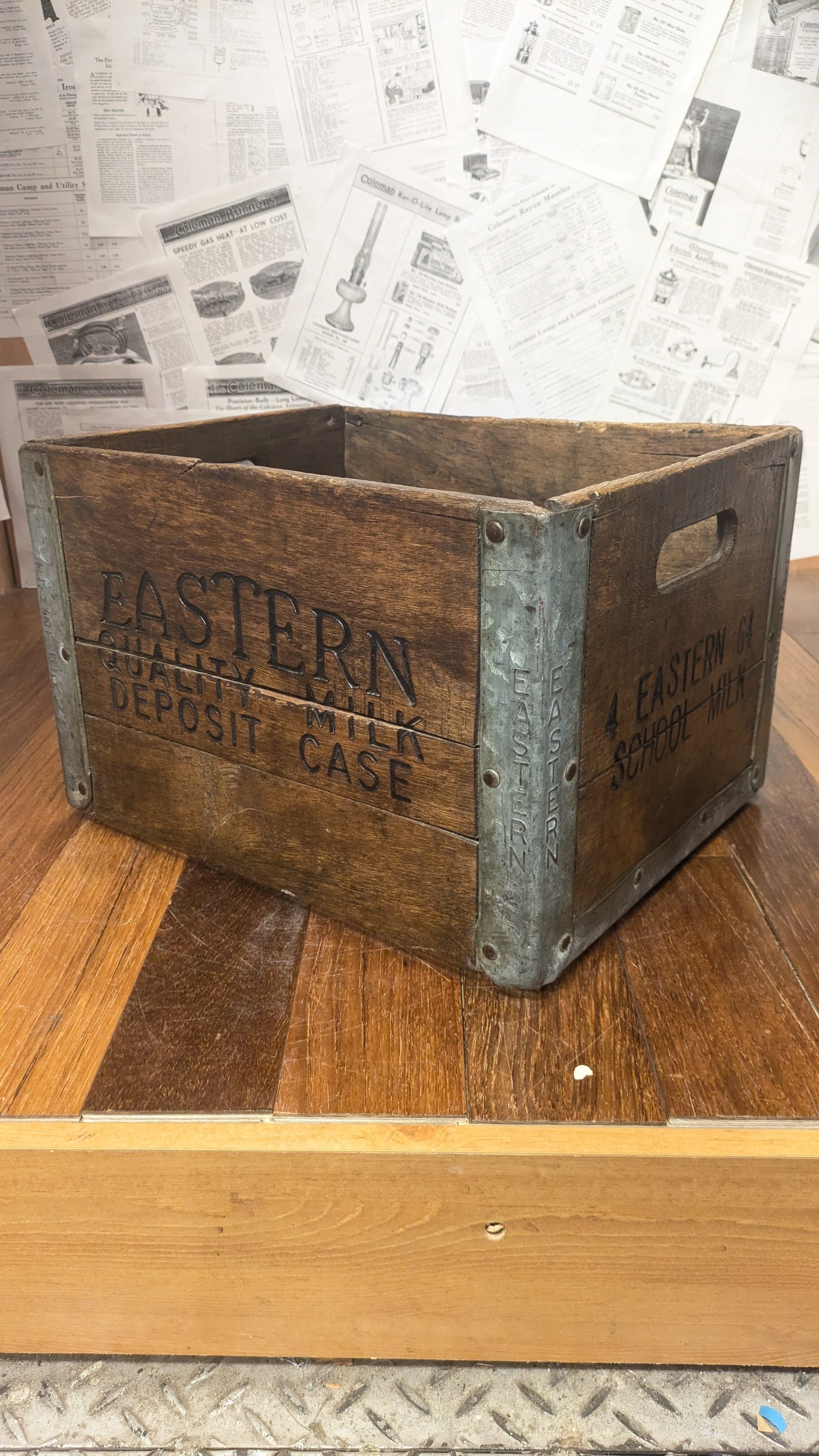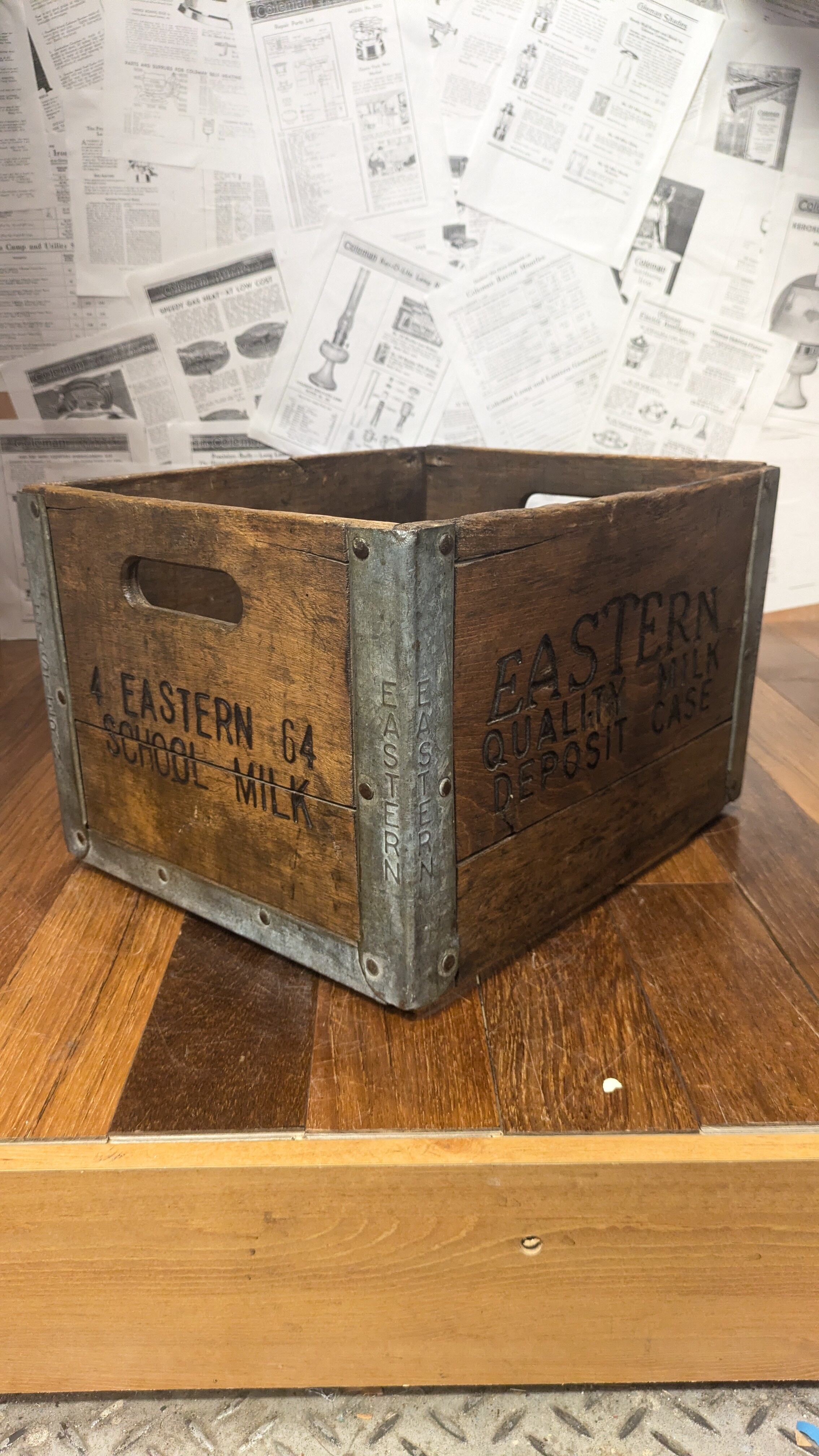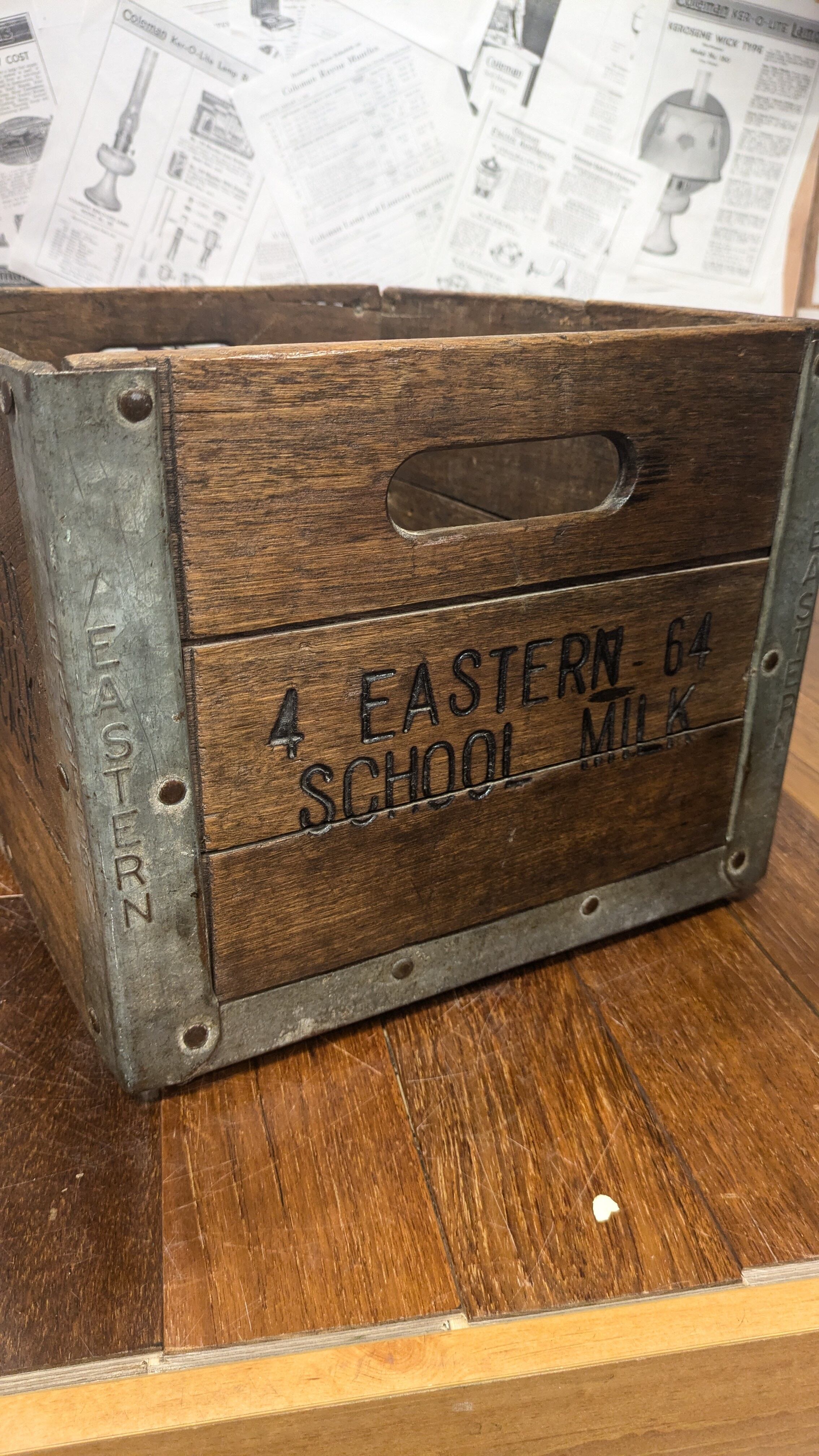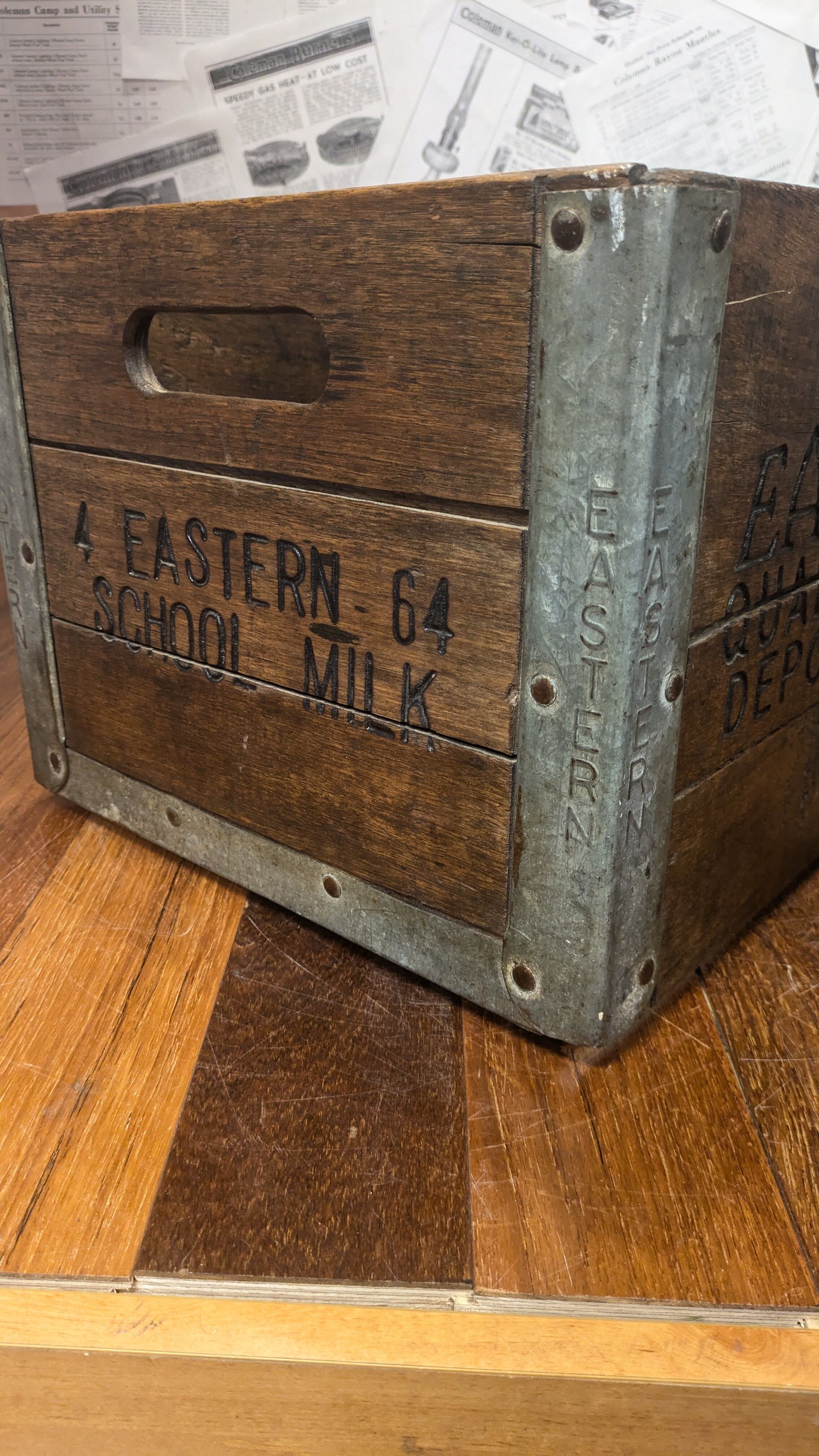 1960's Vintage EASTERN School MILKCrate WoodBox DepositCase USA ビンテージ ウッドボックス 木製 木箱 収納ボックス ミルククレート キャンプギア クレート アンティーク