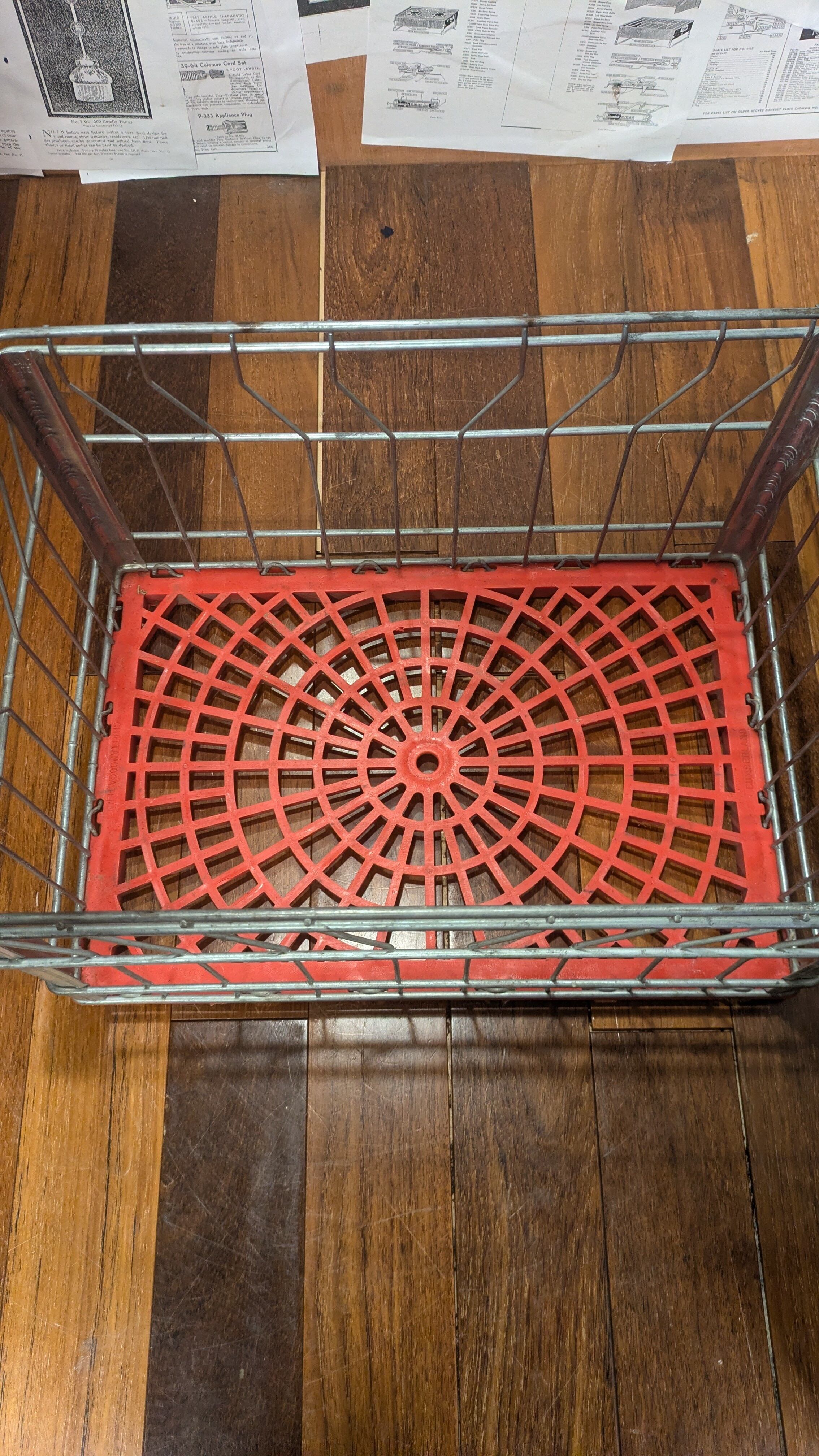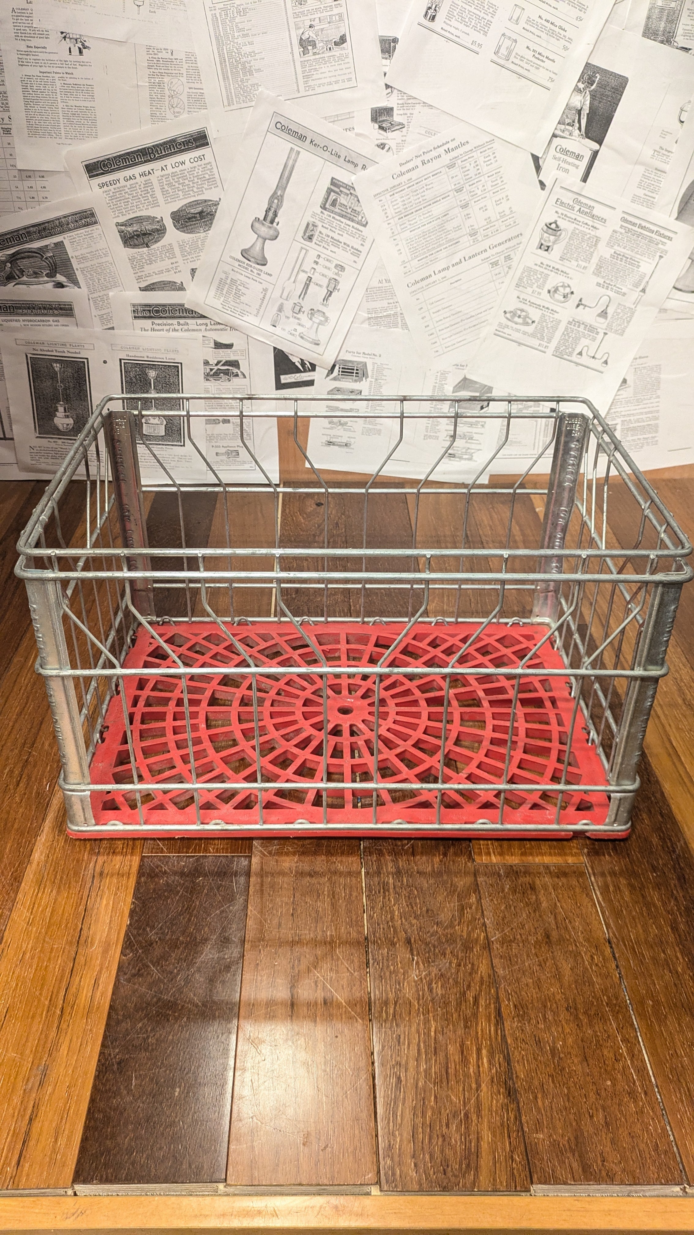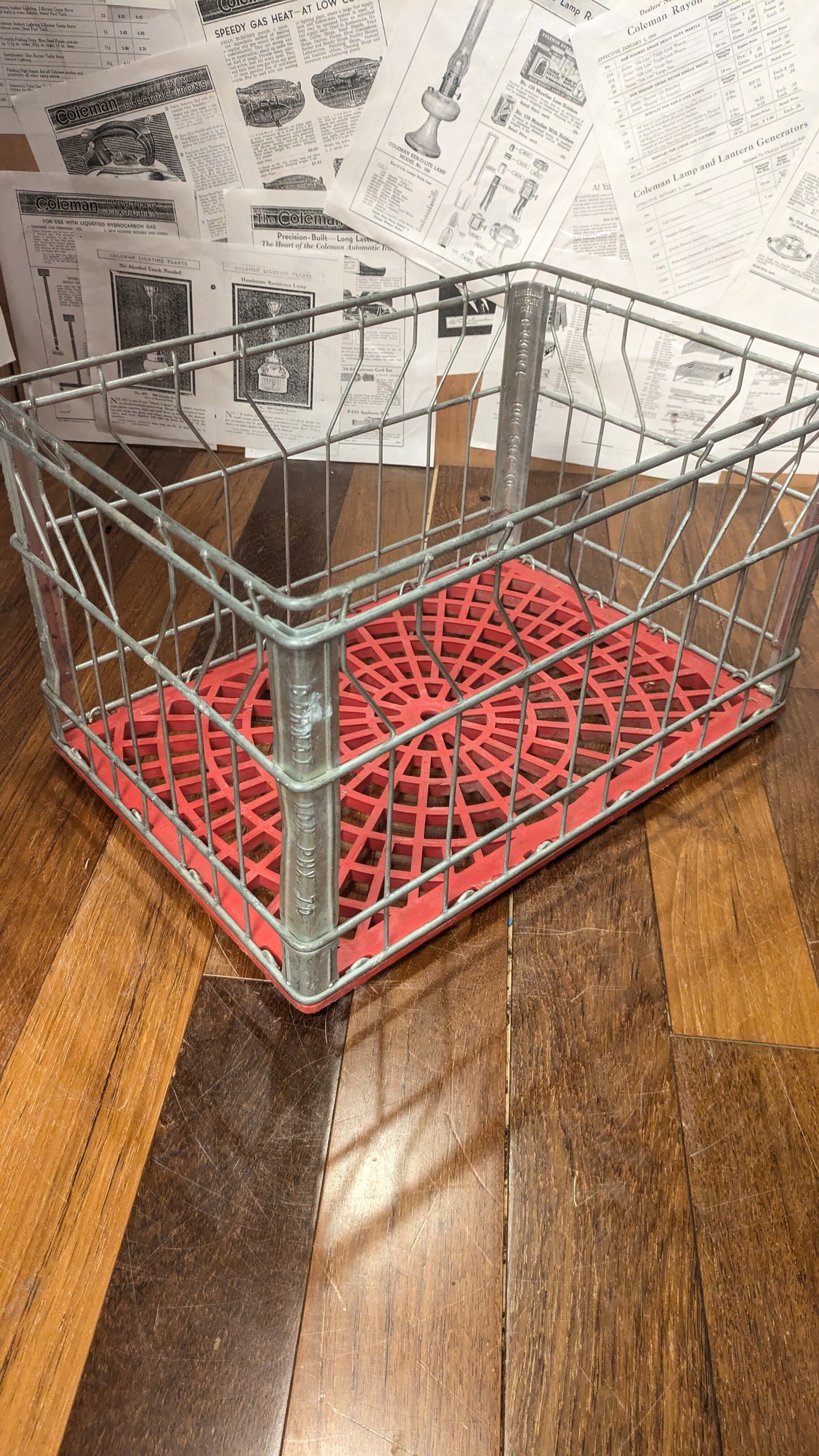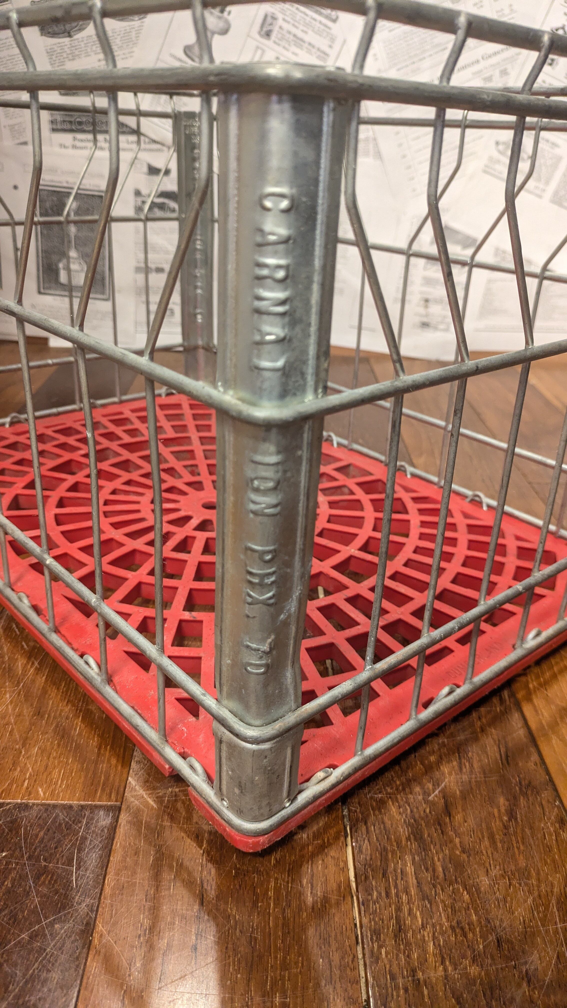 Vintage Carnation WireCrate StorageBox Antique Container MetalBox ビンテージ カーネーション ワイヤークレート 収納ボックス ギアボックス 運搬 クレート 赤