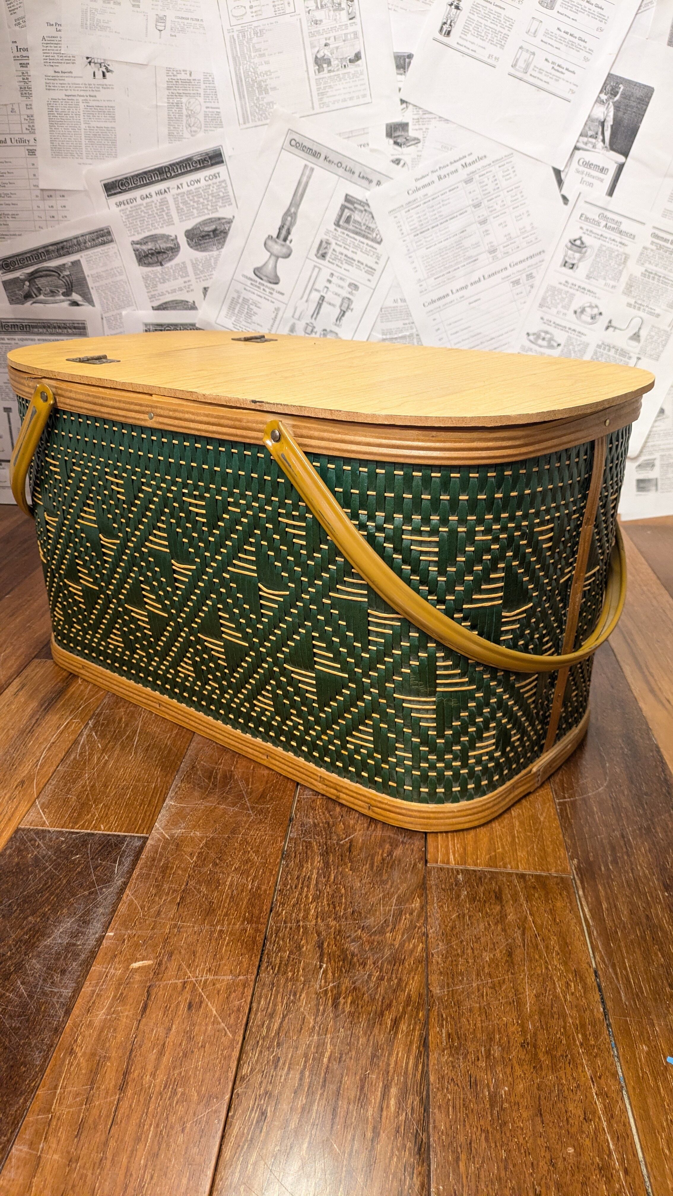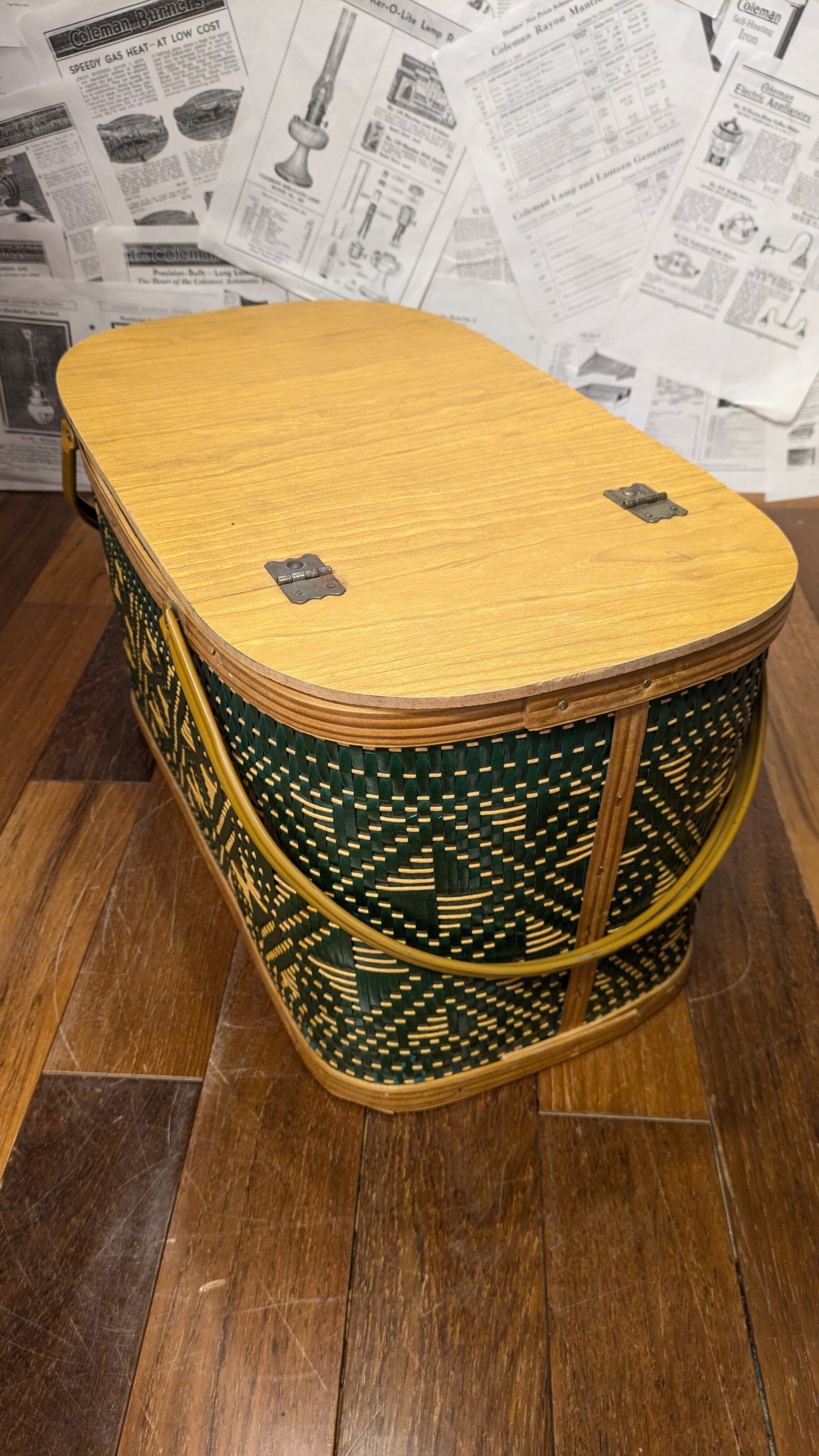 Mint! Vintage Hawkeye PicnicBasket StorageBox Antique vintagecamping極上 ビンテージ ピクニックバスケット 収納ボックス 籠 バスケット アメリカ ビンテージキャンプ