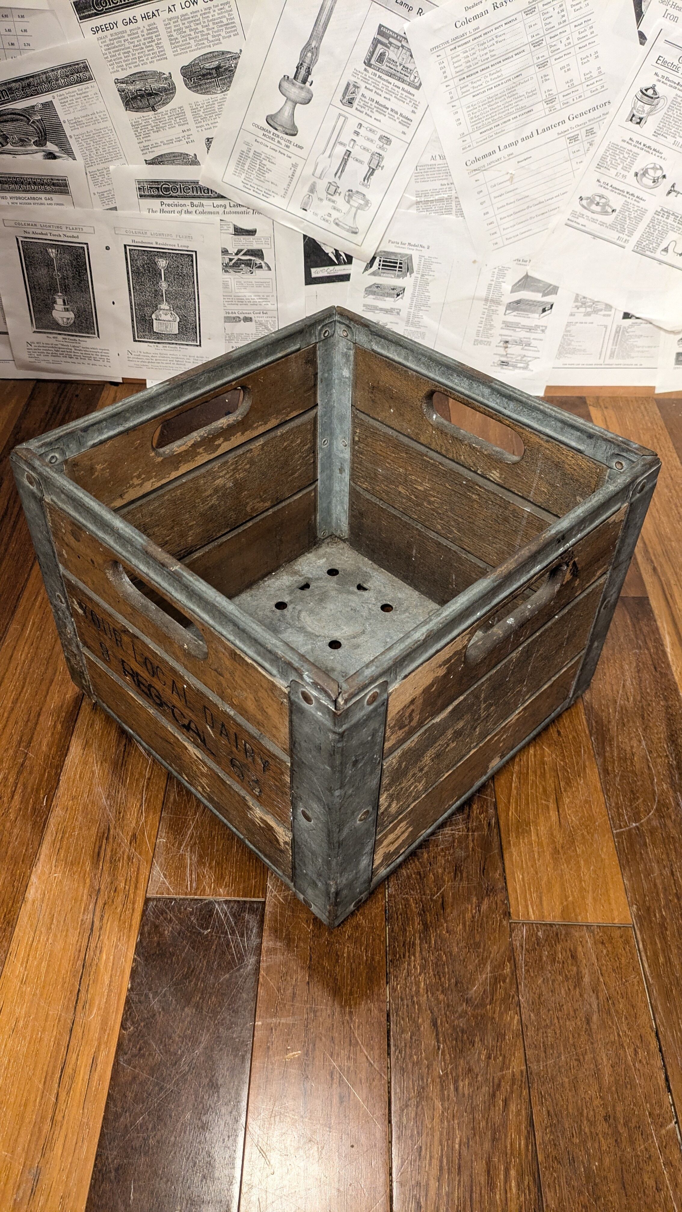 Vintage YOUR LOCAL DAIRY Crate WoodBox MILKCRATE USA Square ビンテージ ウッドボックス 木製 木箱 収納ボックス ミルククレート キャンプギア クレート アンティーク