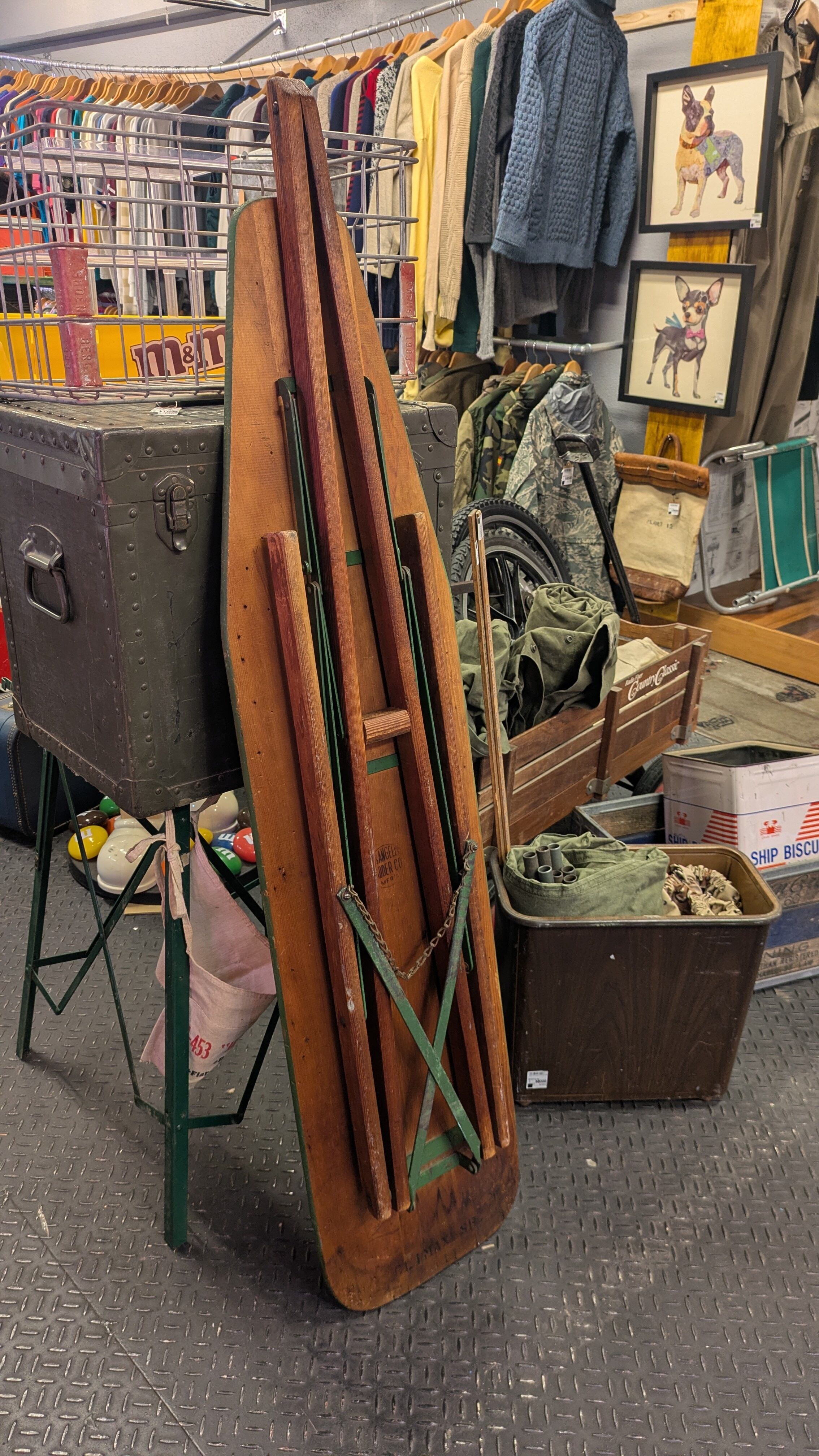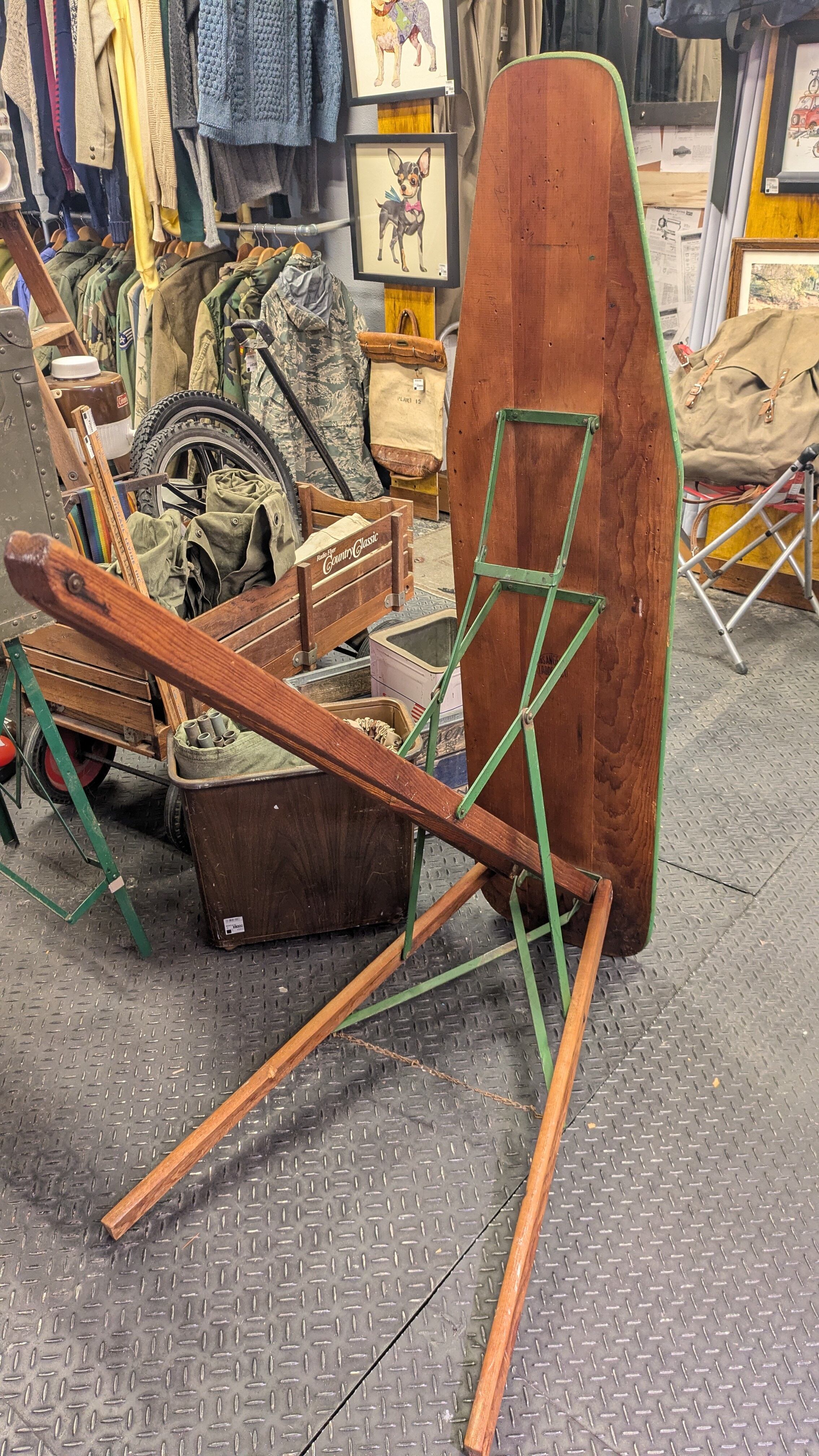 Vintage LosAngeles Ladder Co Wood Folding IroningBoard Antique Stand USA ビンテージ 木製 フォールディングアイロンテーブル アイロン台 アンティーク アメリカ製 ビンテージキャンプ 折り畳み スタンド