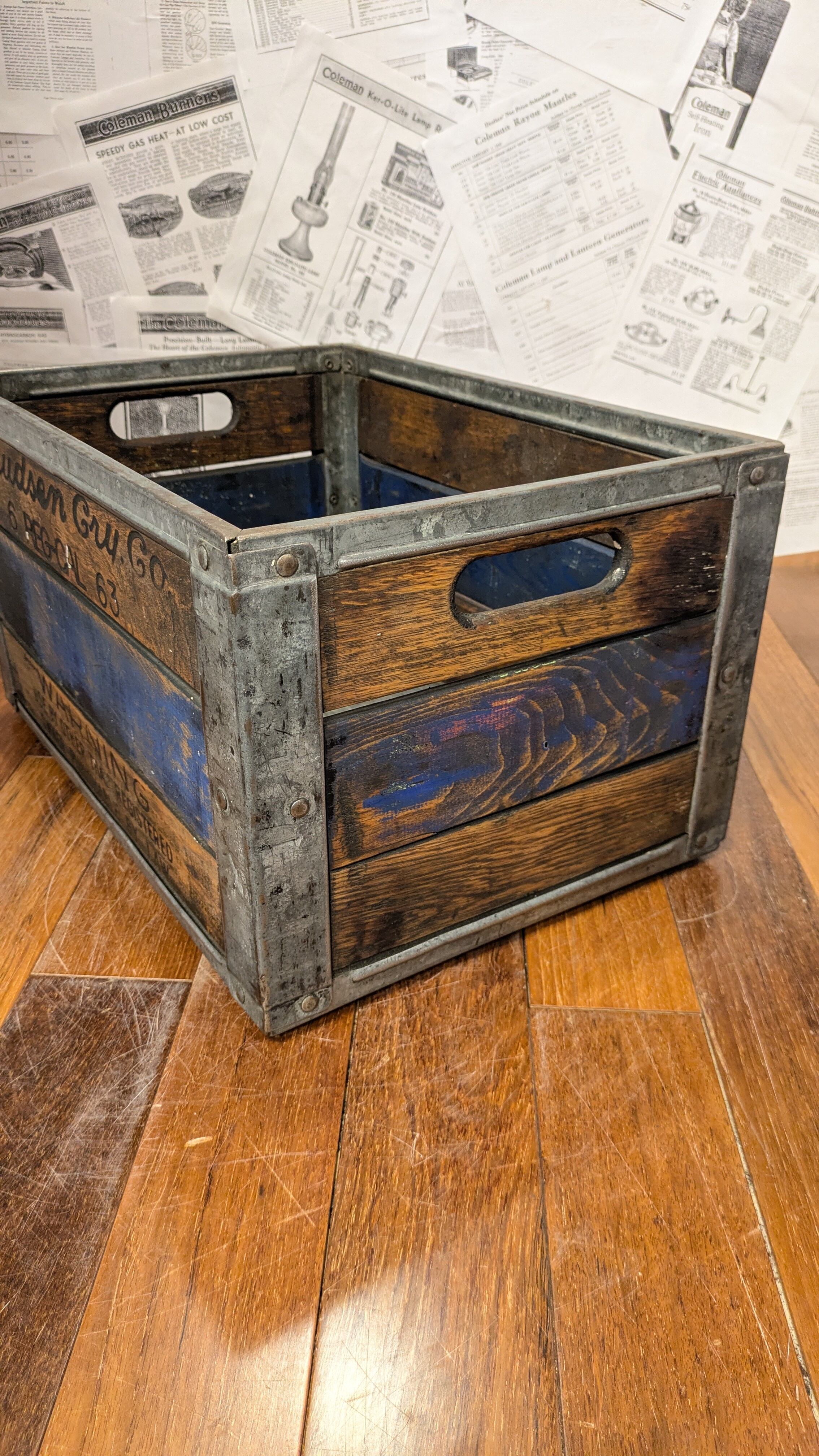 やや擦れた文字やカラー、木の質感や雰囲気など秀逸な木箱です。