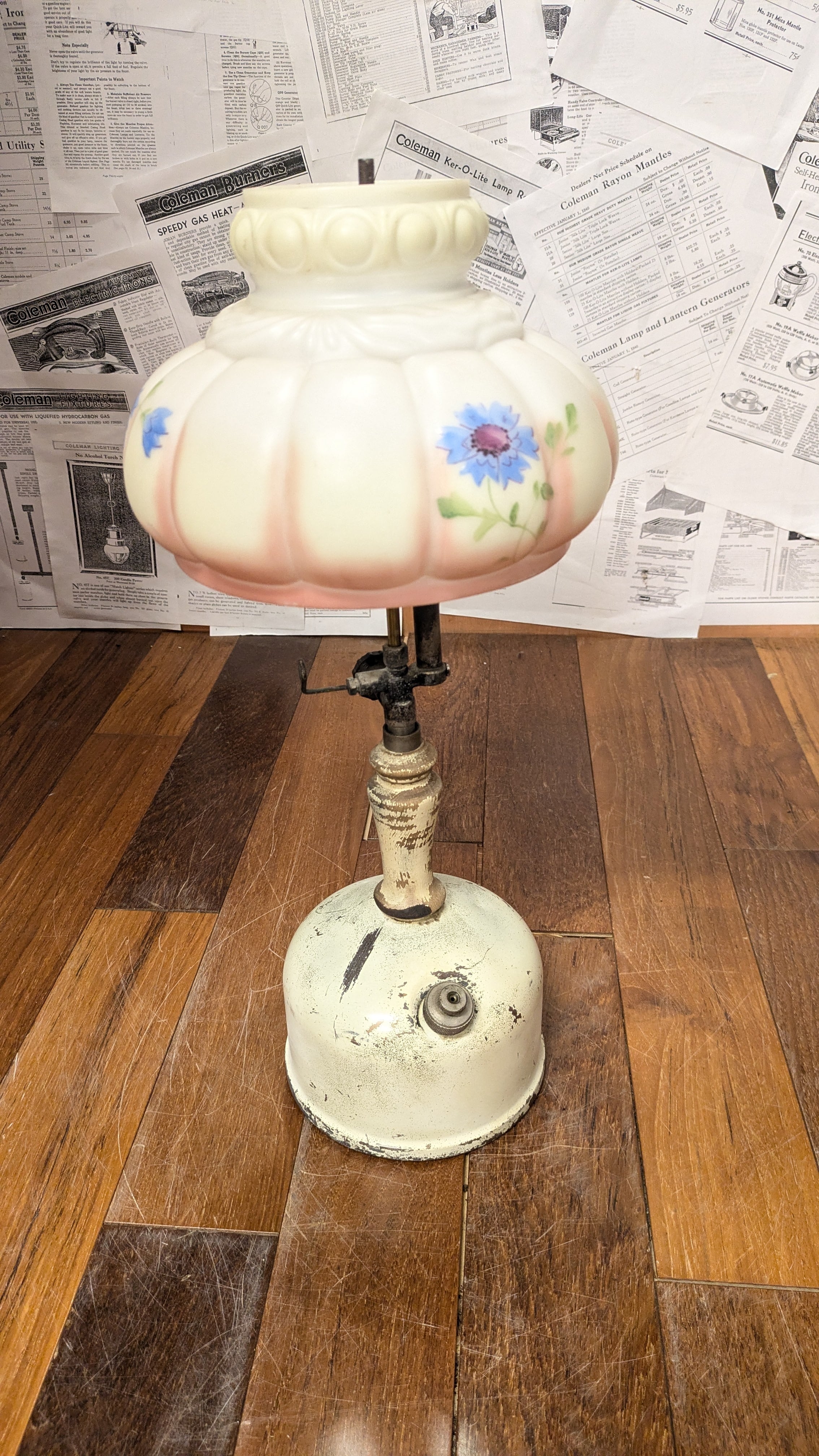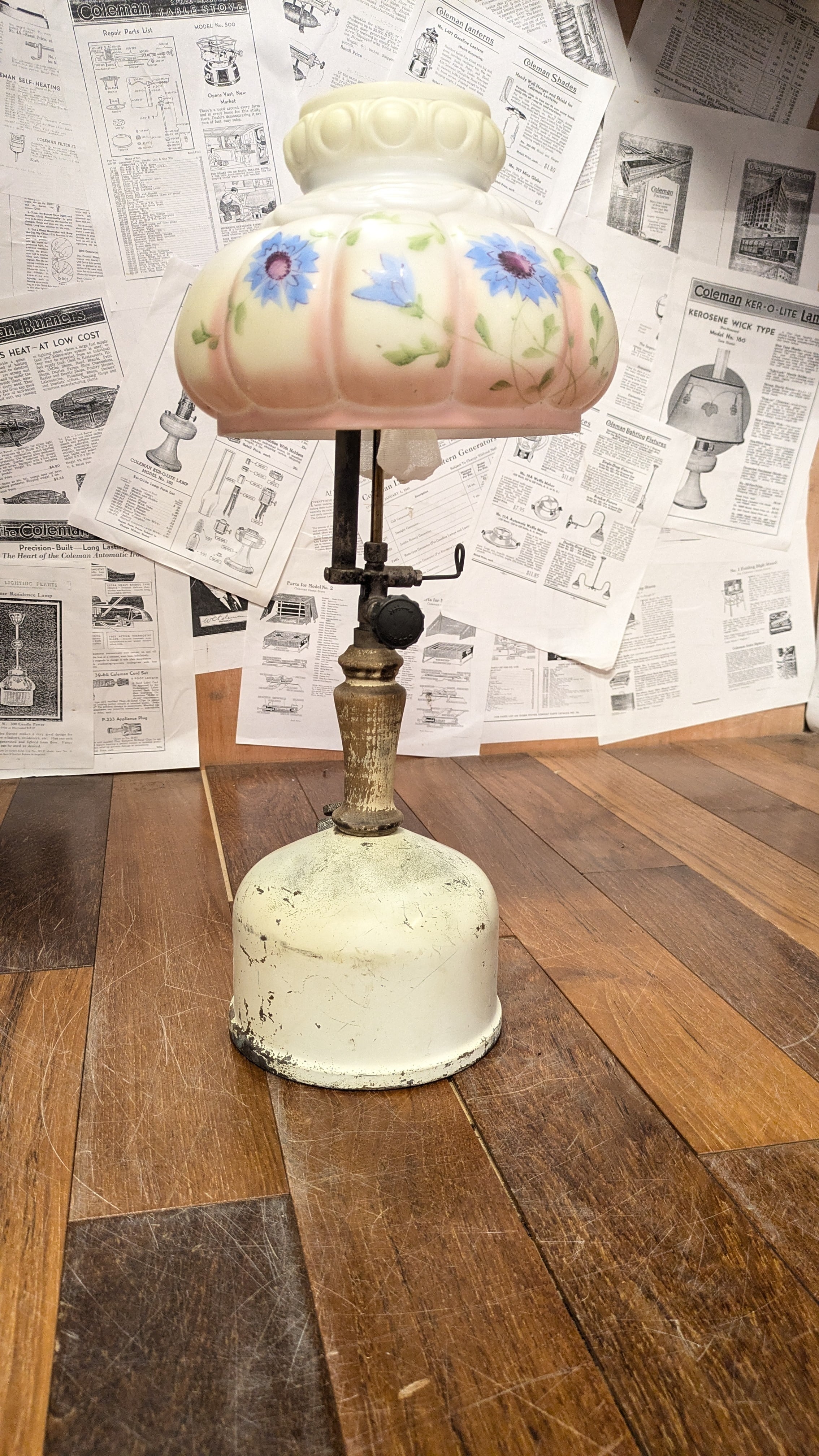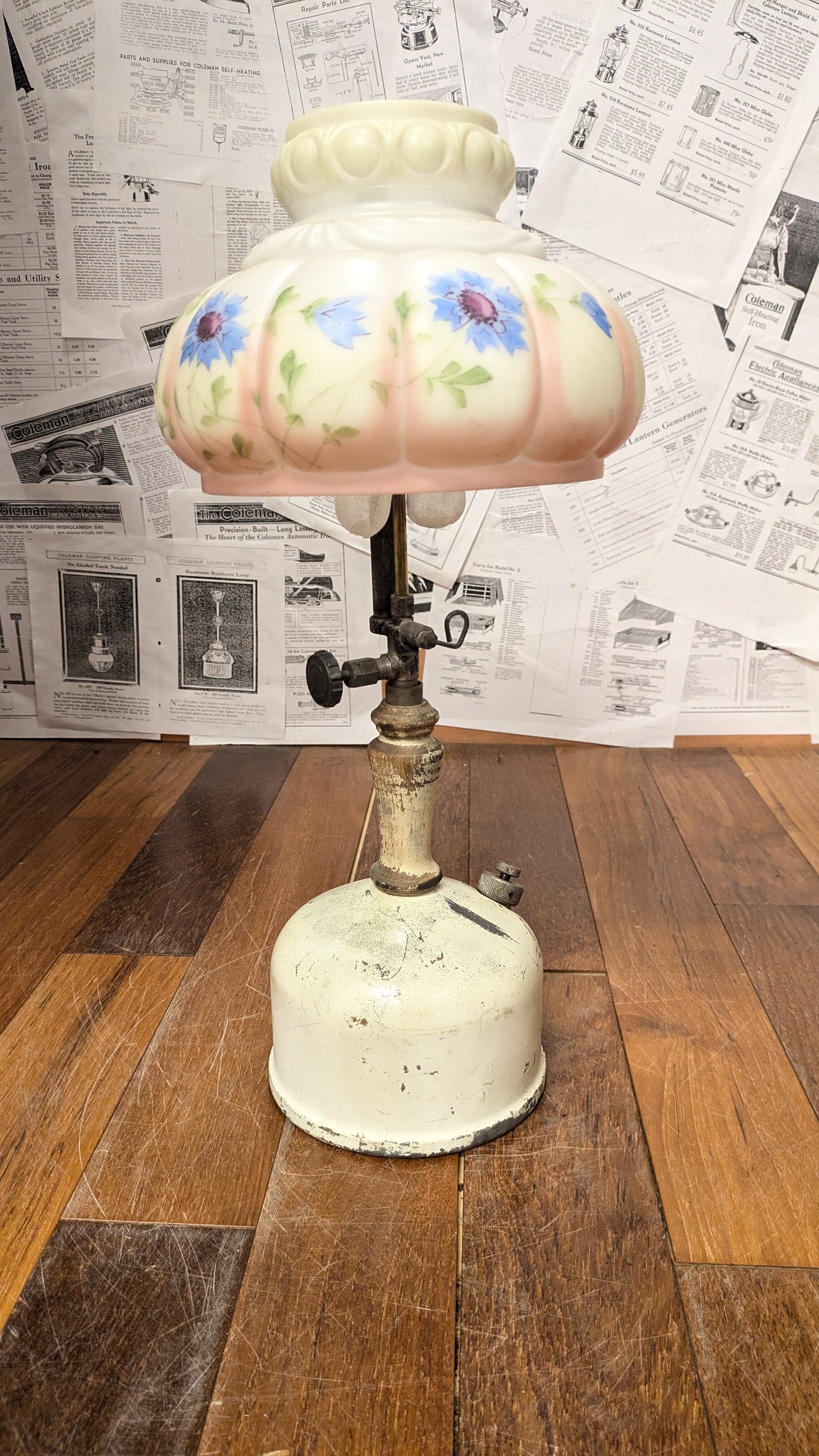 1940's Vintage Coleman 134A TableLamp VintageLantern USA VintageCamping ビンテージ コールマン 134A テーブルランプ アメリカ ビンテージキャンプギア 花柄シェード テーブルランタン