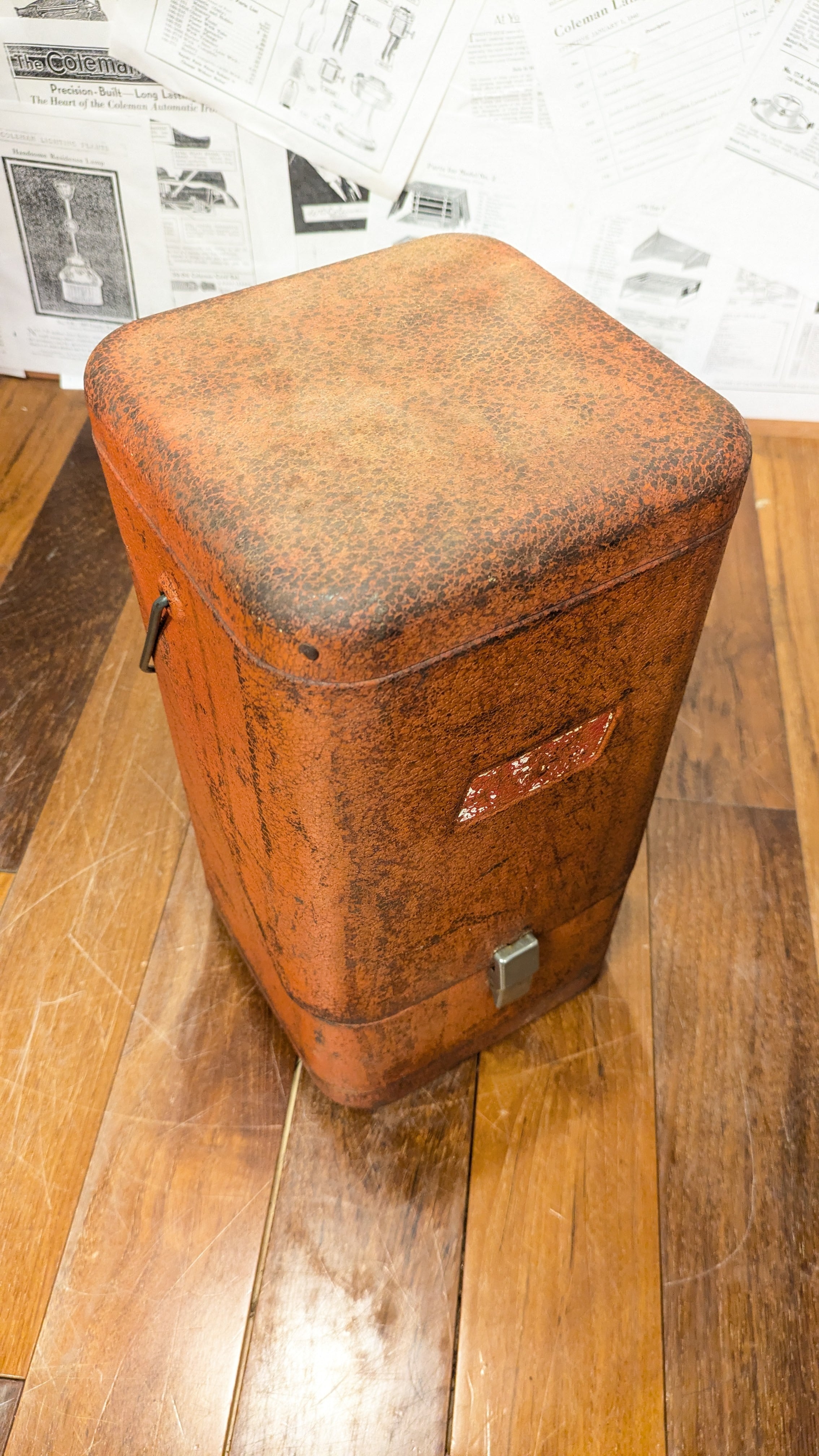 アメリカにて買い付けた、貴重なビンテージコールマンのメタルランタンケースです。