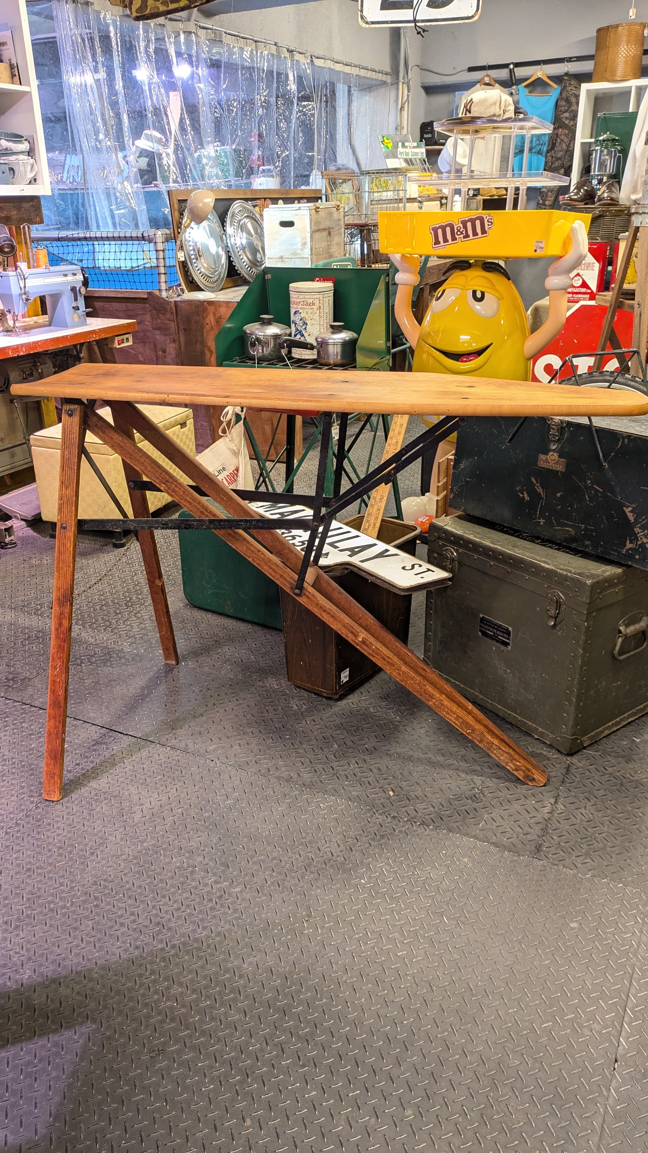 アメリカにて買い付けた最高なギミックと仕上がりのビンテージアイロンテーブルです。