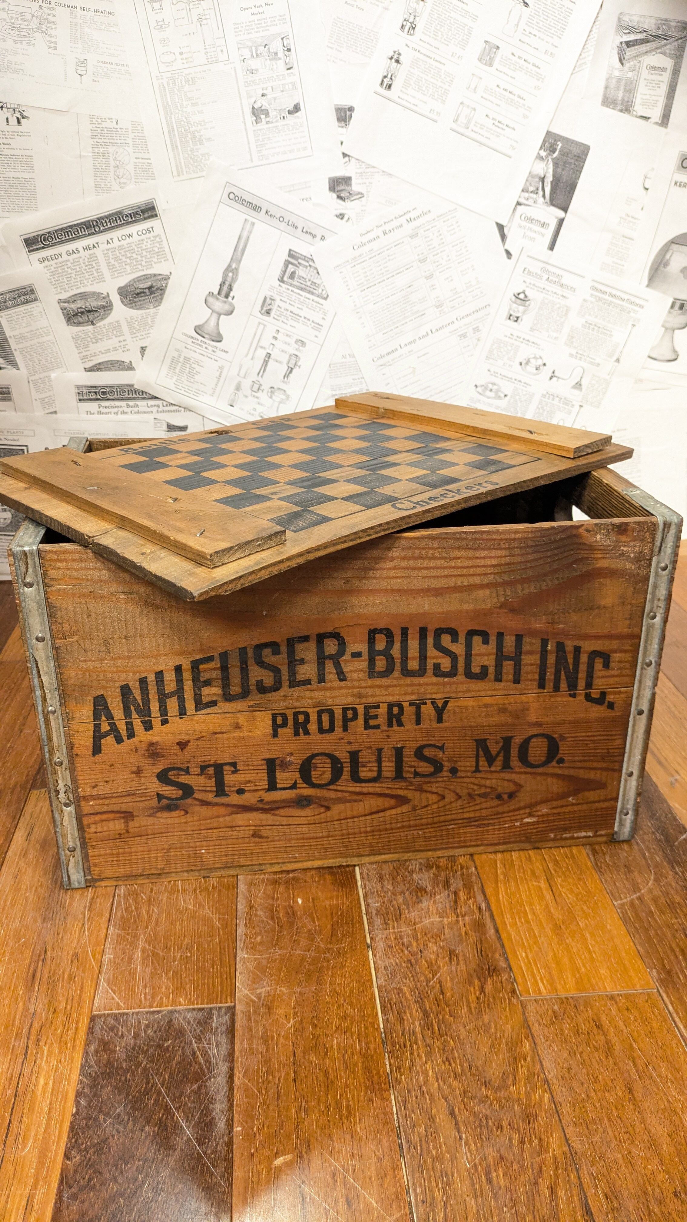 Vintage ANHEUSER-BUSCH BudWiser WoodBox Crate StorageBox Antique Container ビンテージ バドワイザー ウッドボックス 木箱 収納ボックス クレート ゲーム盤