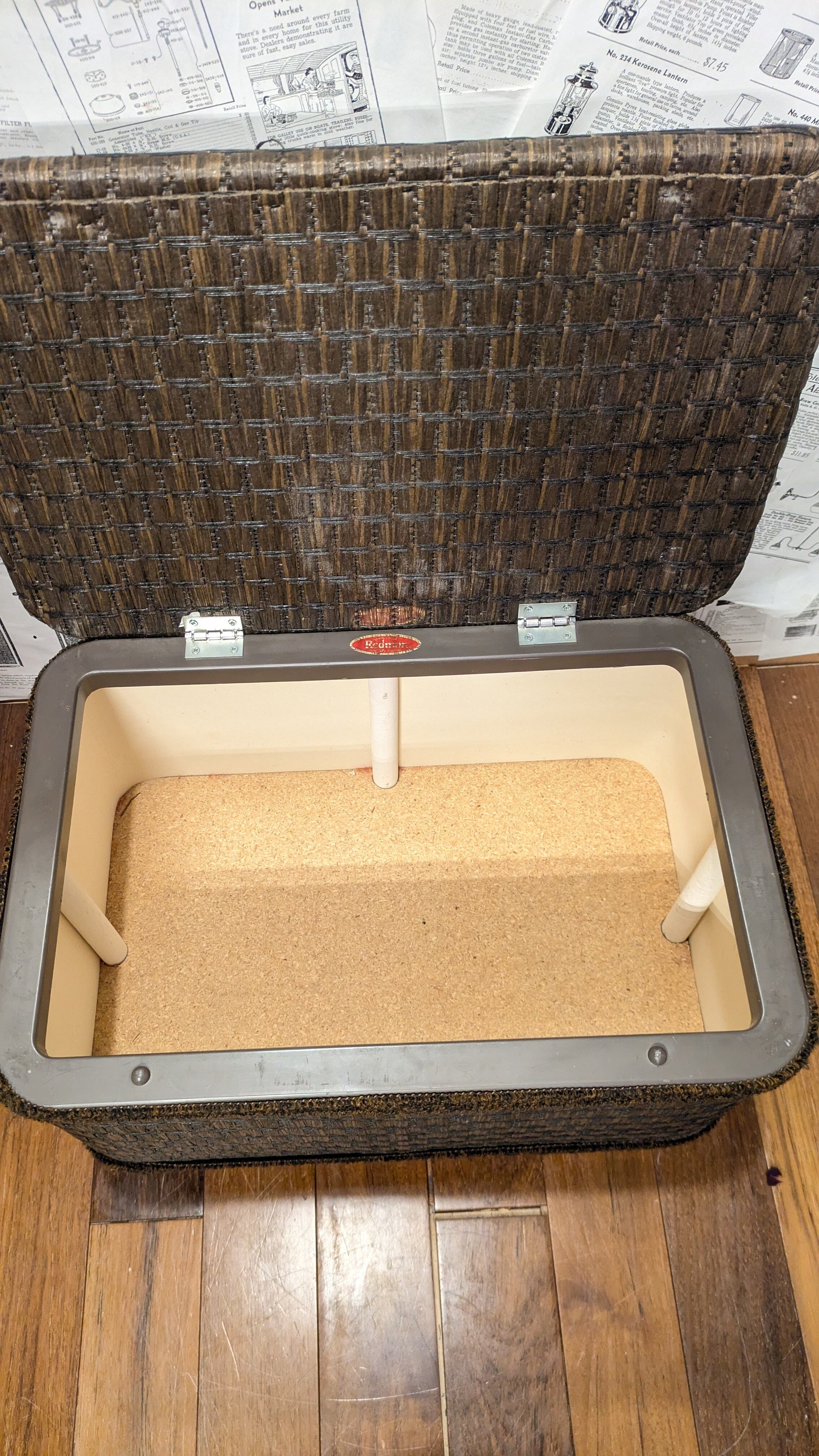 Vintage REDMON Rattan PicnicBasket SewingBox Chair OldCampingStyle ビンテージ ピクニックバスケット ラタン ソーイングボックス 椅子 キャンプギア バスケット アメリカ製