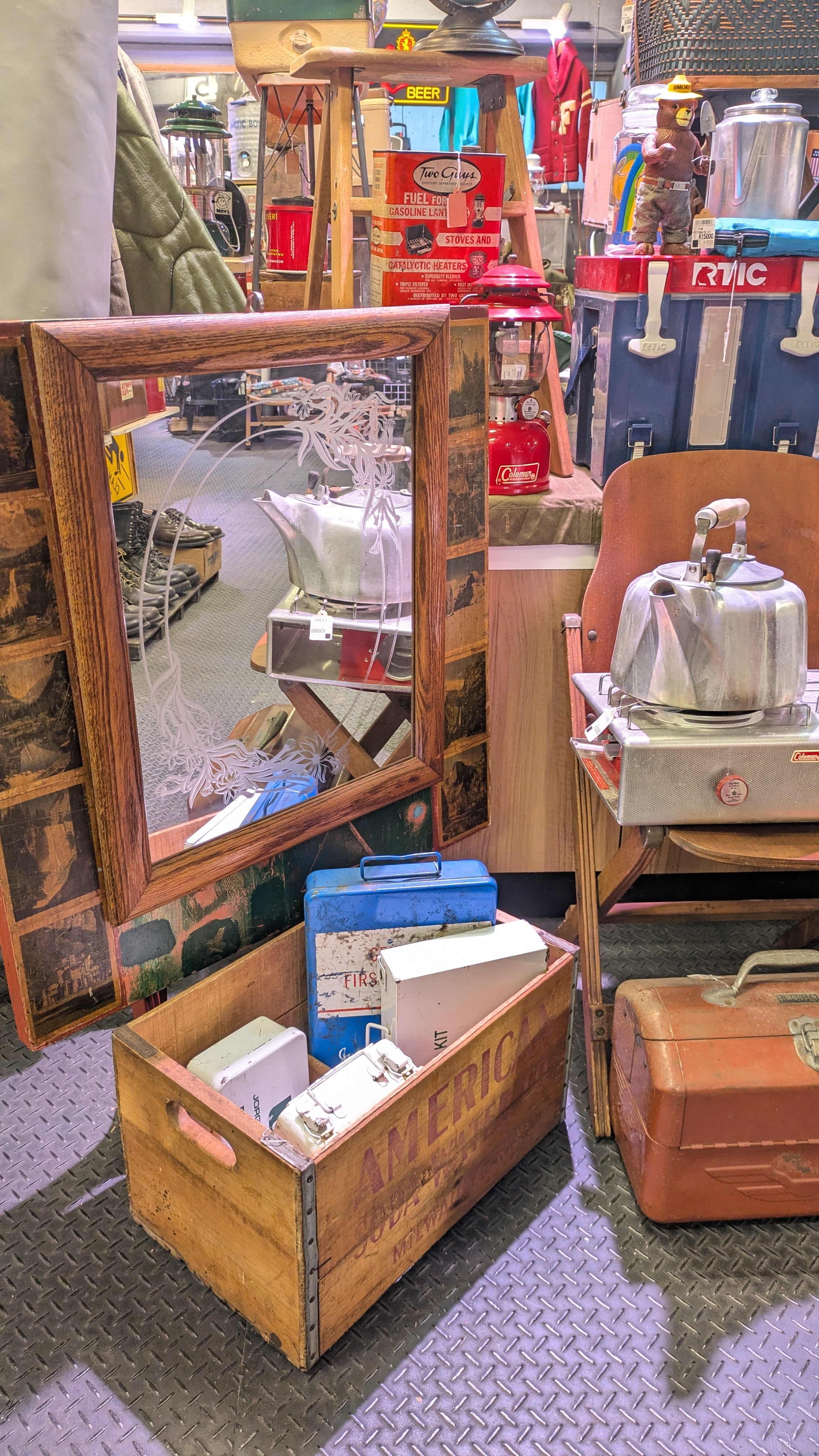 アメリカにて買い付けたお部屋や店舗などにも雰囲気最高なビンテージのミラーです。
