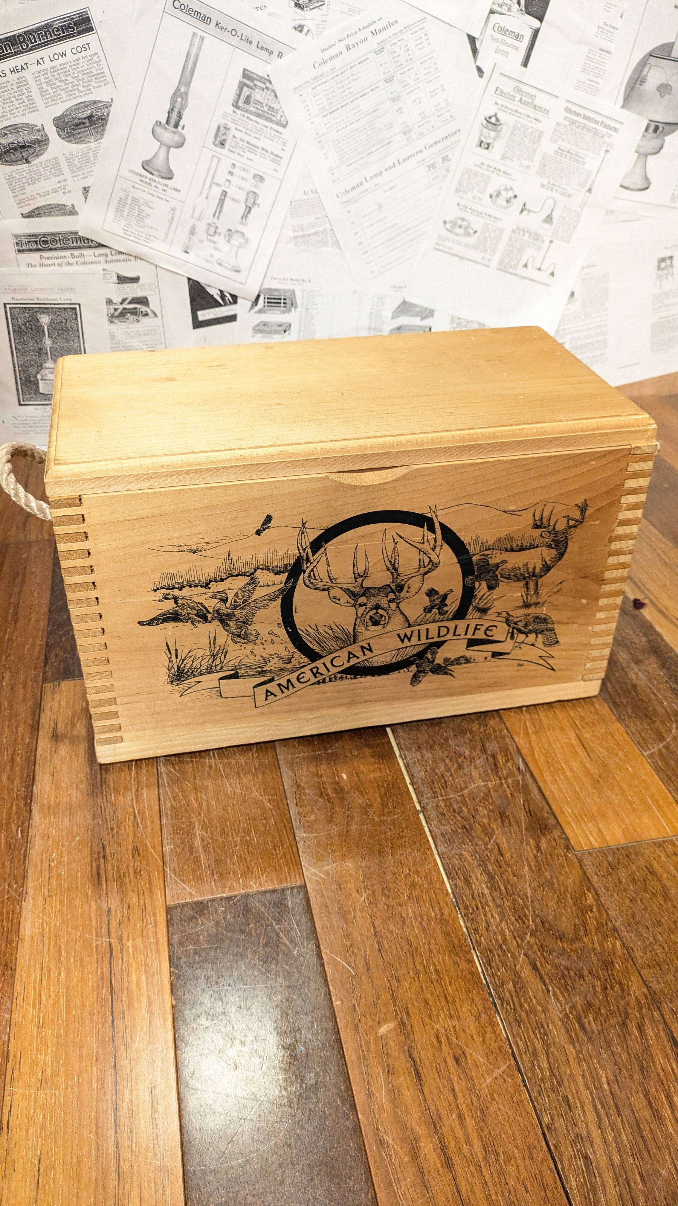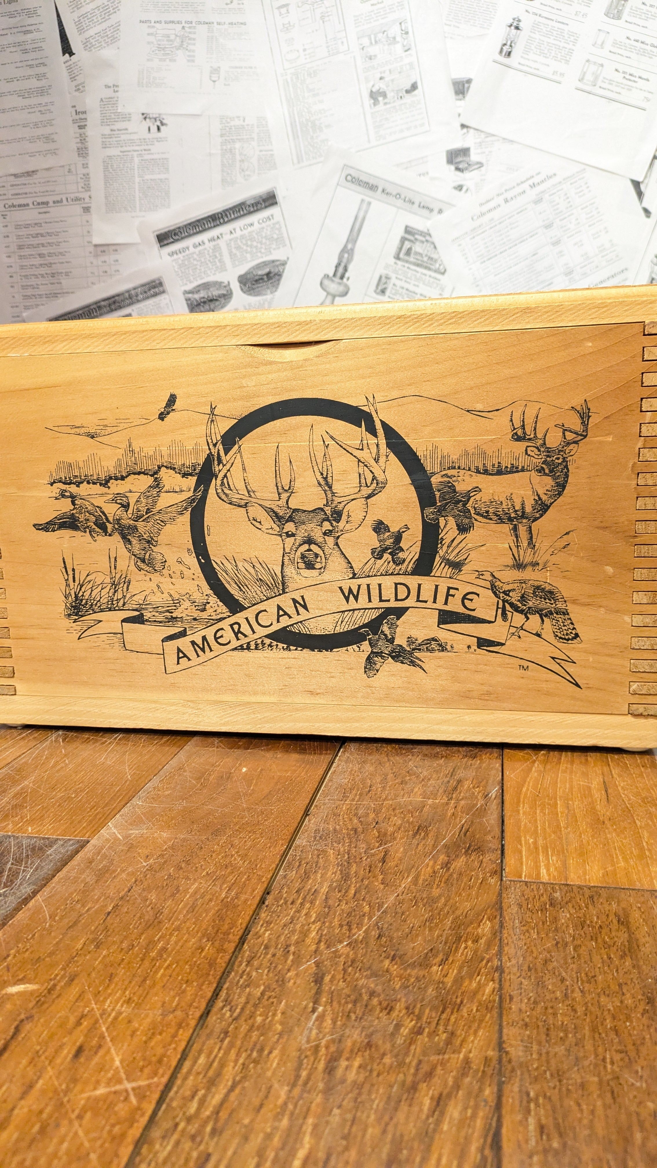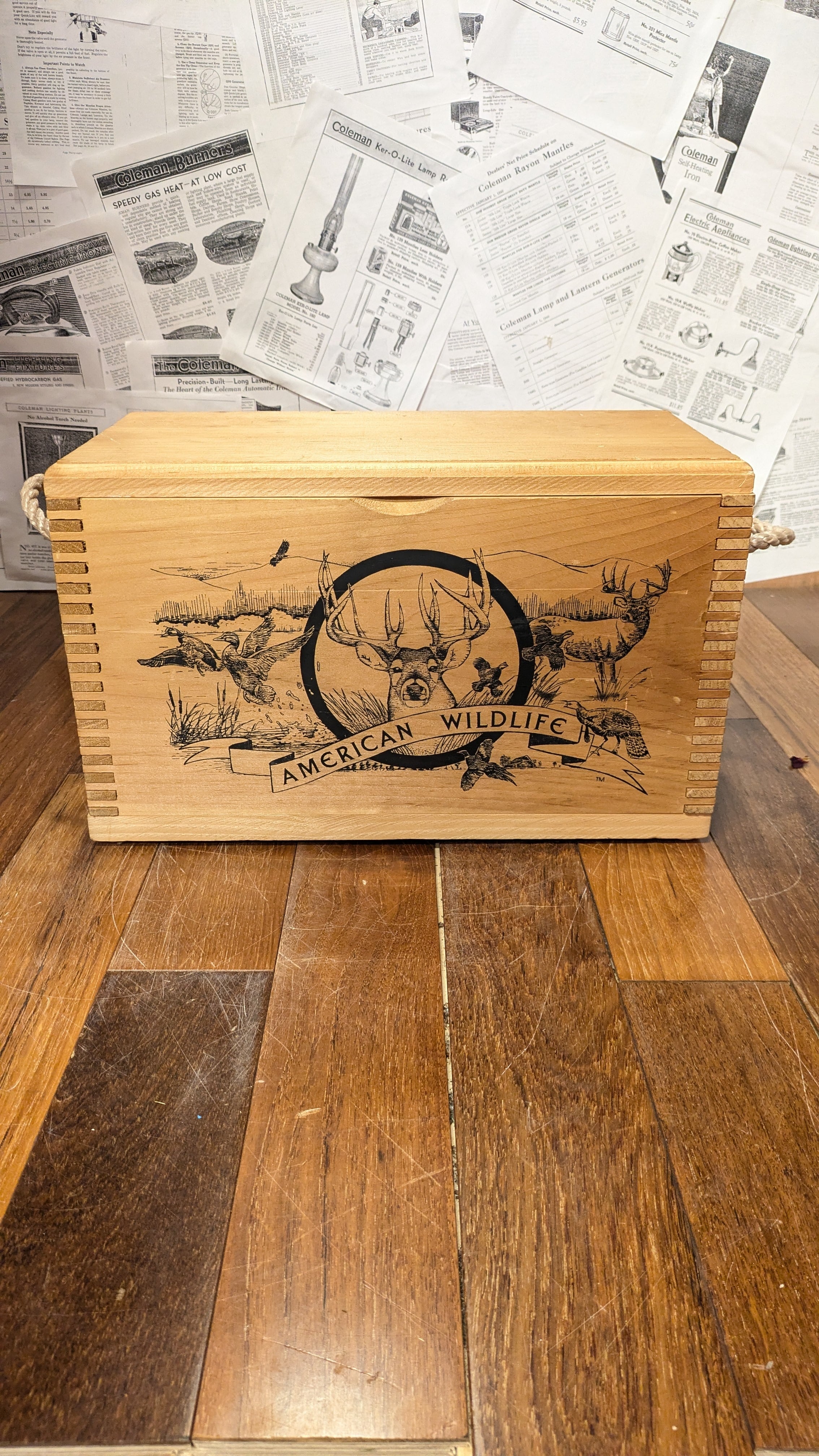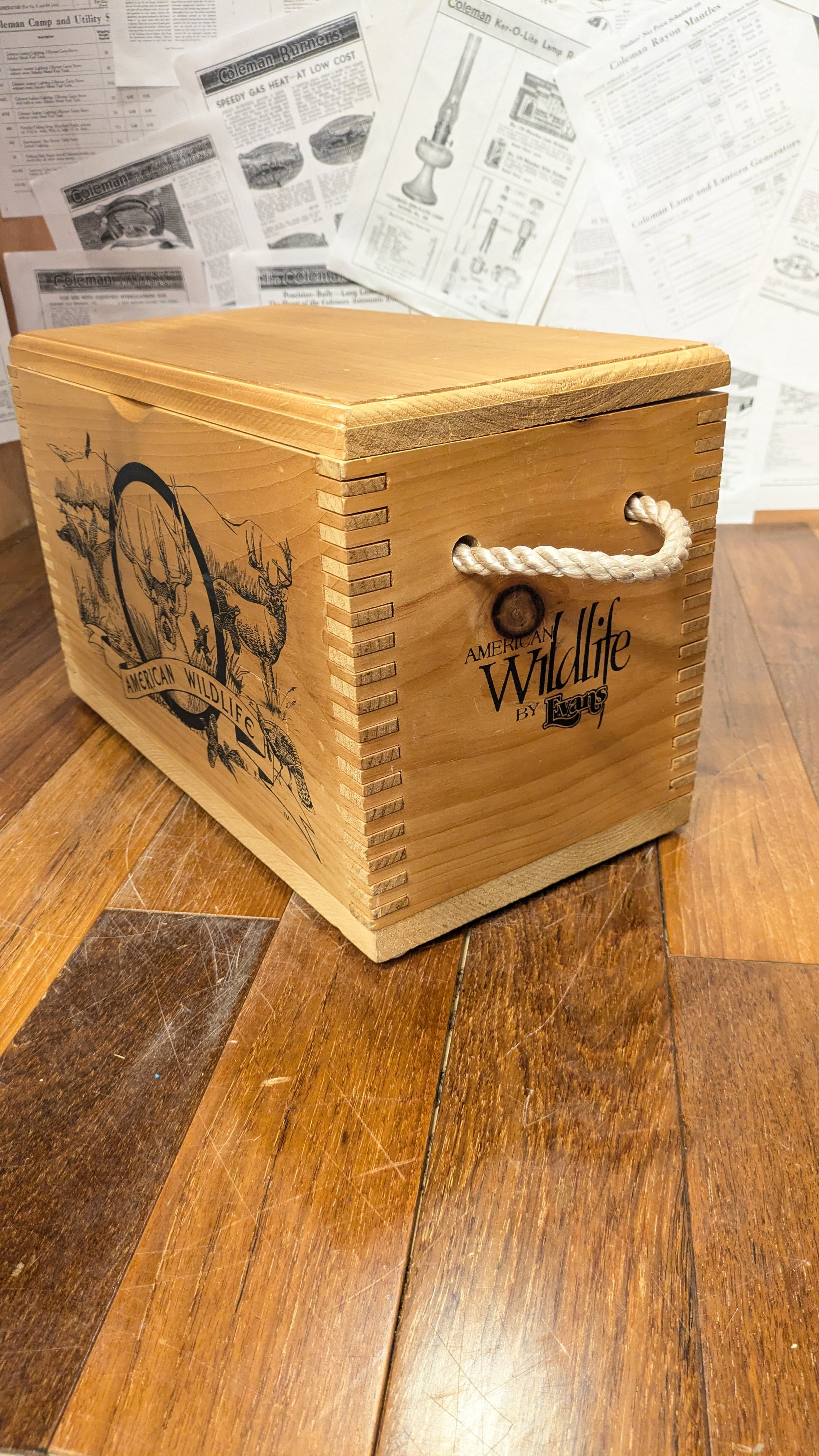 Vintage EVANS AmericanWildLife Wood Box ビンテージ ウッドボックス 木製 木箱 収納ボックス ギアボックス キャンプギア クレート アンティーク 蓋付き
