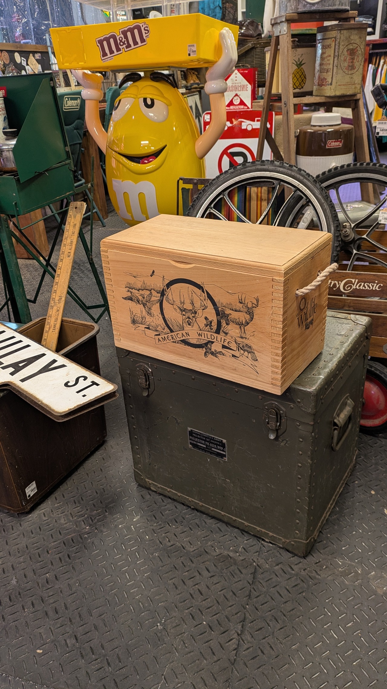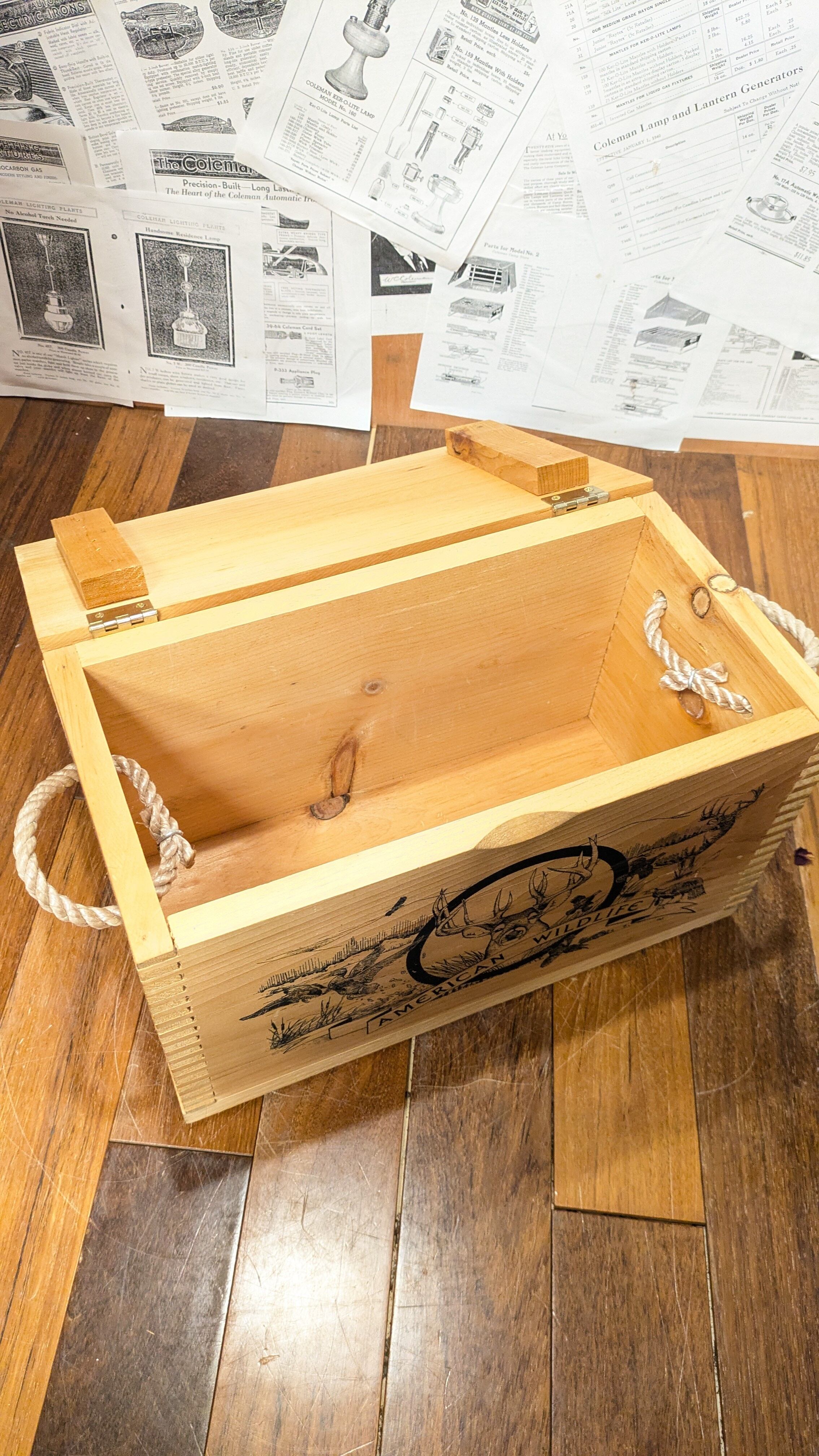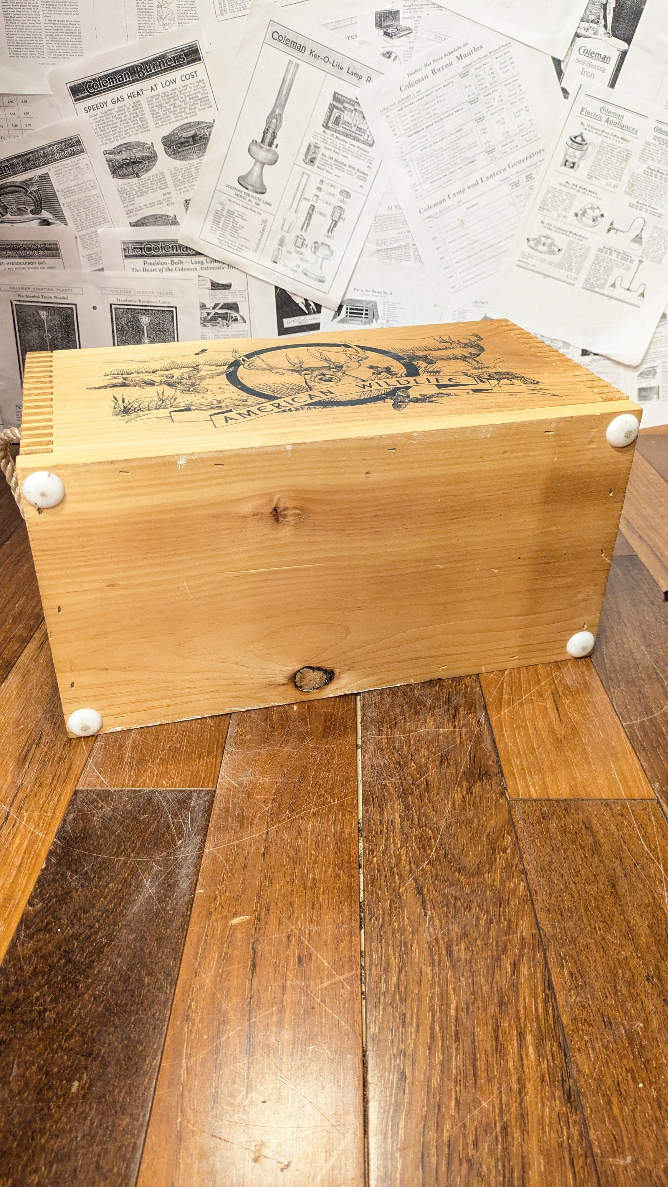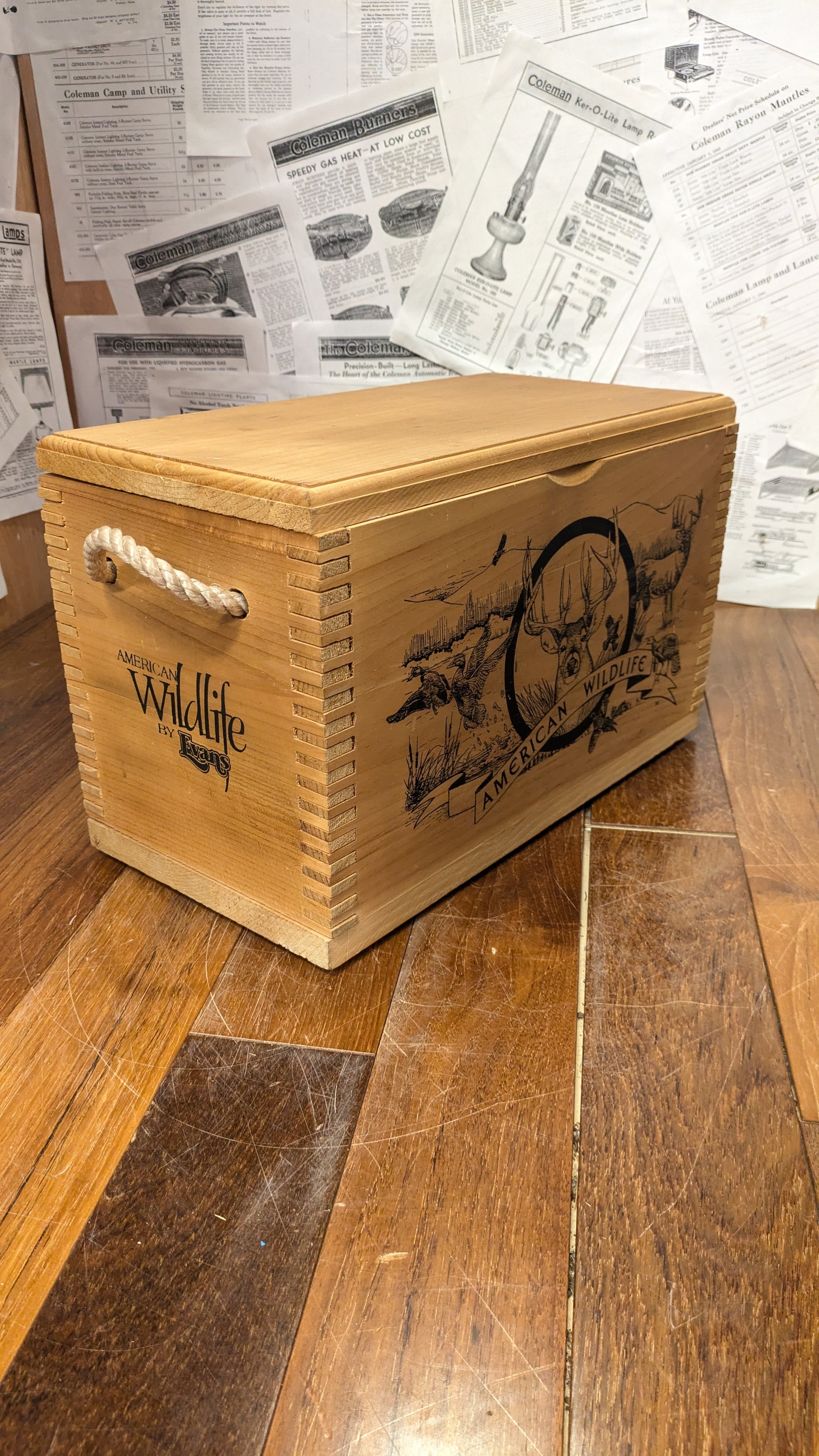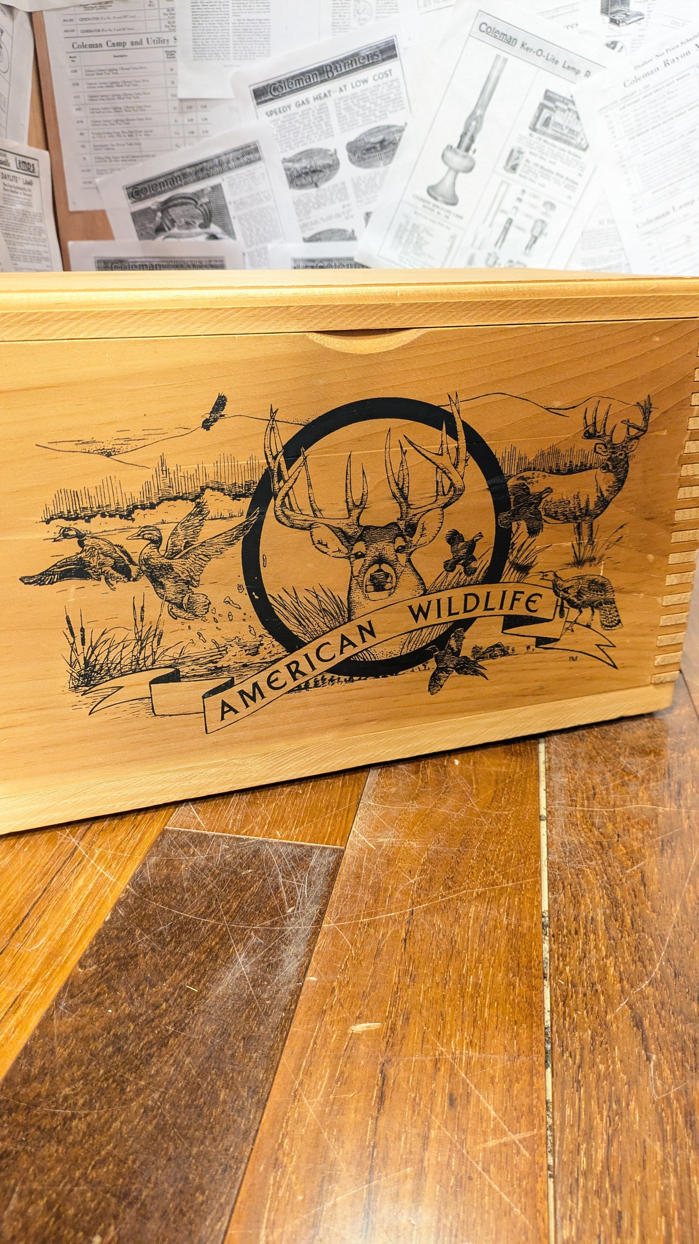 Vintage EVANS AmericanWildLife Wood Box ビンテージ ウッドボックス 木製 木箱 収納ボックス ギアボックス キャンプギア クレート アンティーク 蓋付き