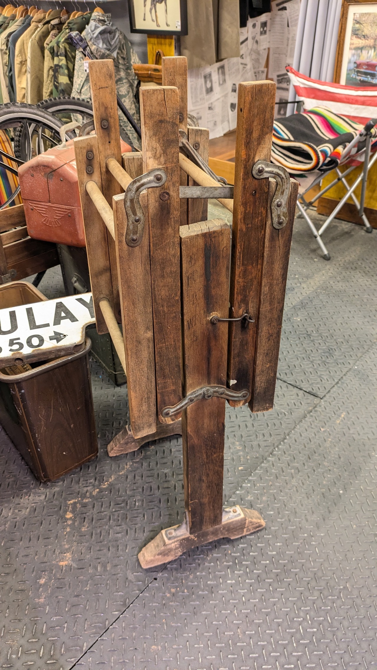 Vintage DoubleWashTubStand Wood Folding Stand Antique USA ビンテージ 木製 スタンド アンティーク タブスタンド 脱水機 折り畳み ビンテージキャンプギア ディスプレイ 展示台