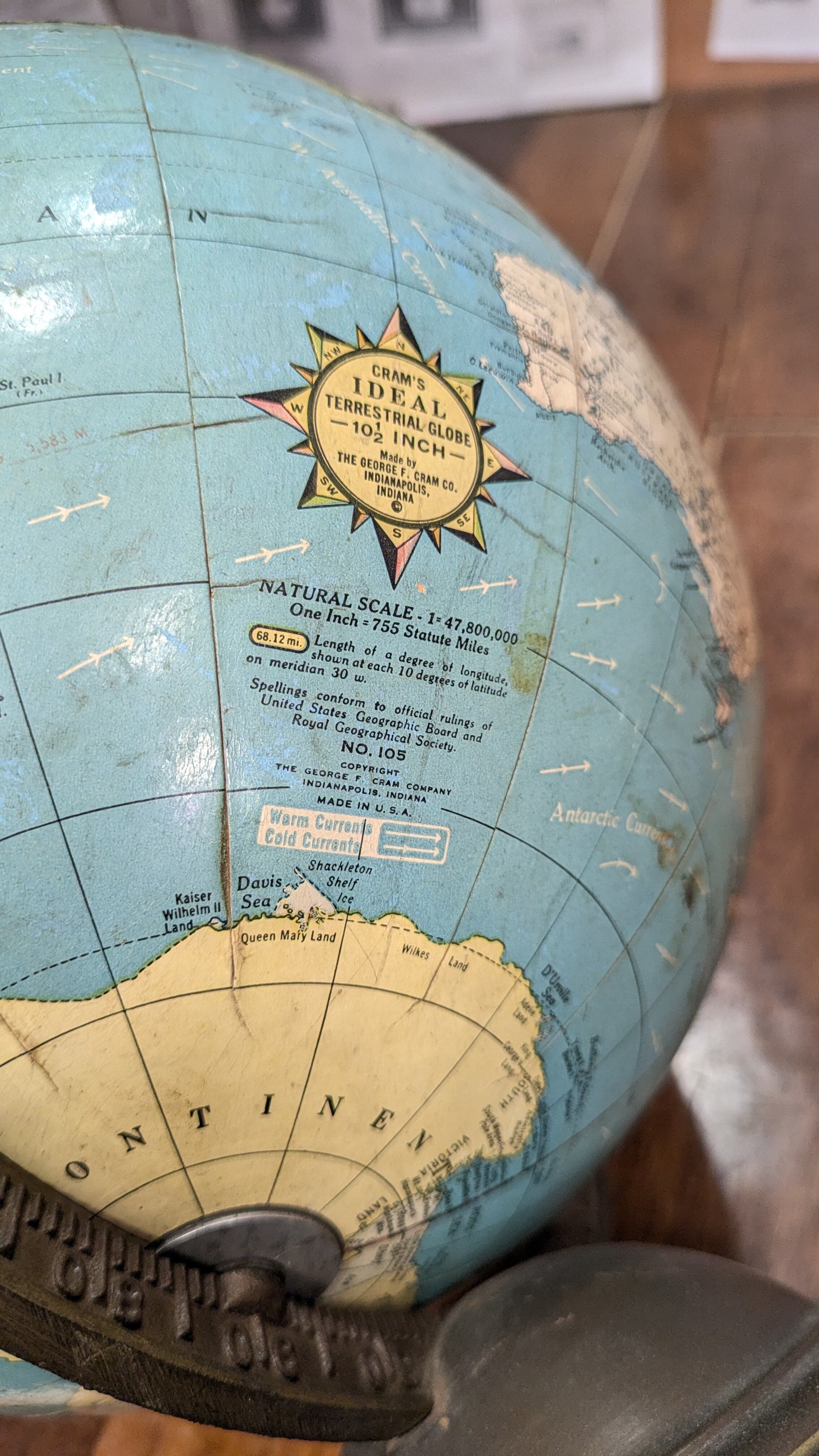 Vintage CRAM’S IDEAL ERRESTRIAL GLOBE BlueOcean Globe USA ビンテージ 地球儀 アメリカ雑貨 インテリア おしゃれ雑貨 30's 40's