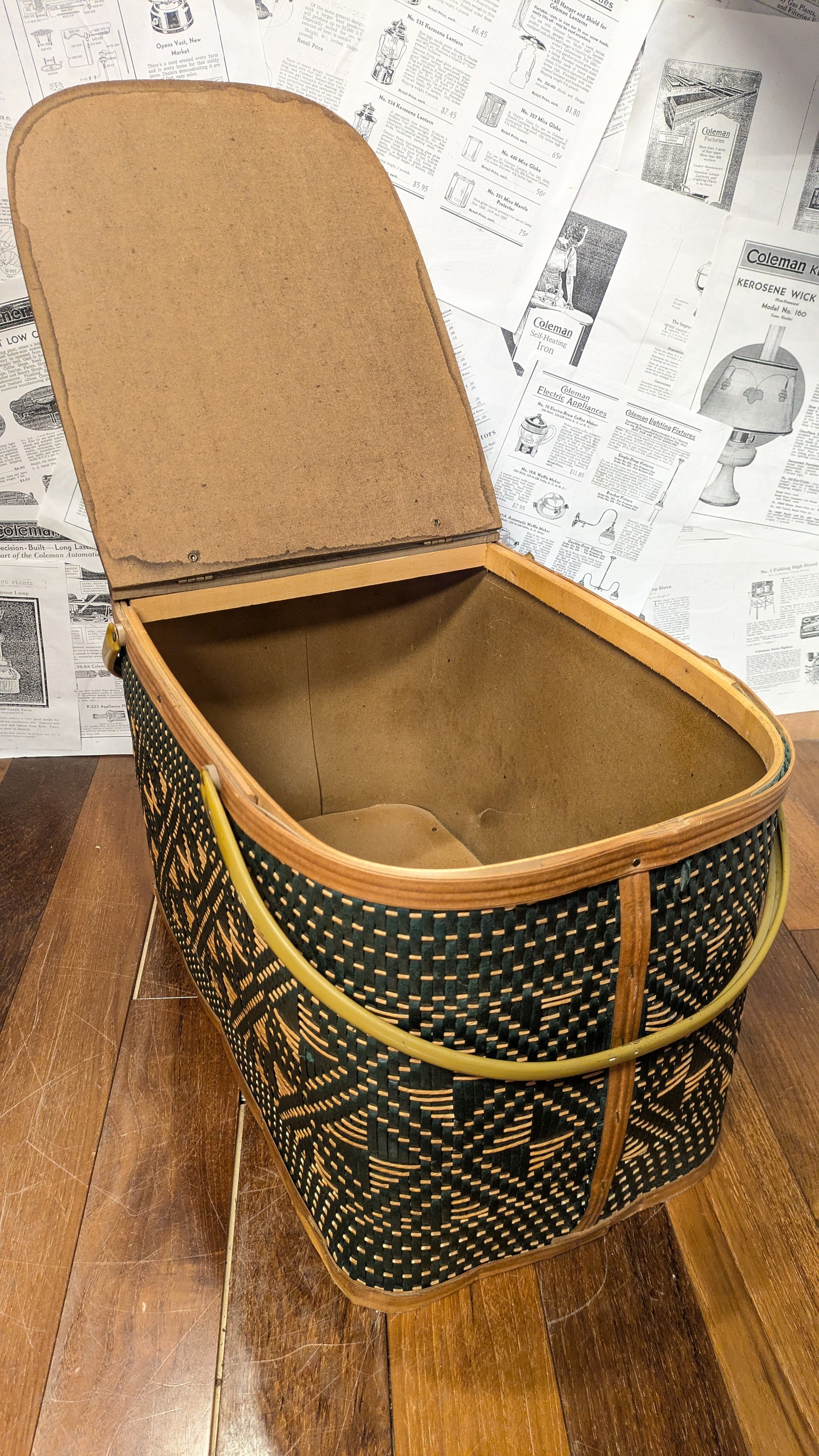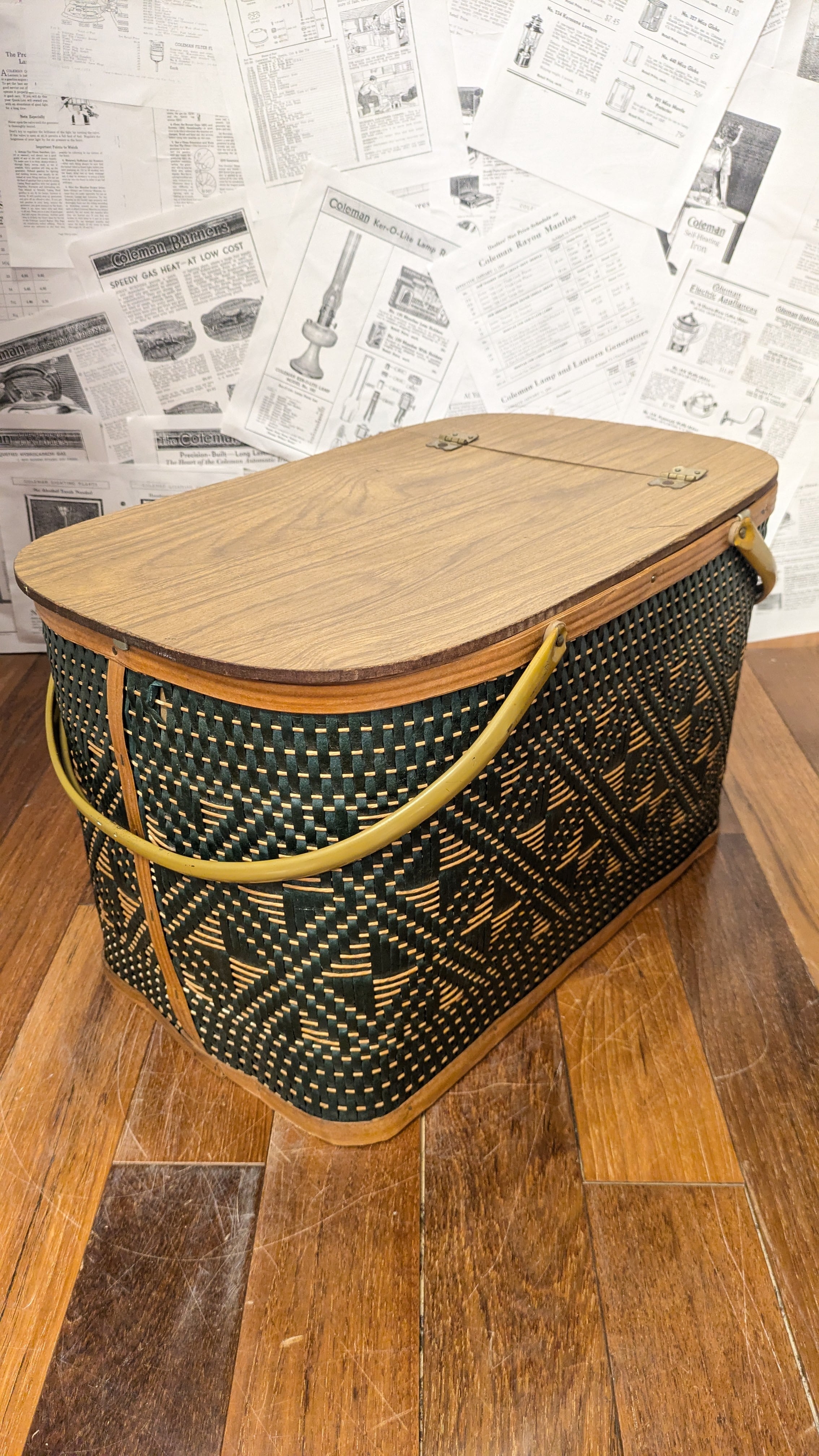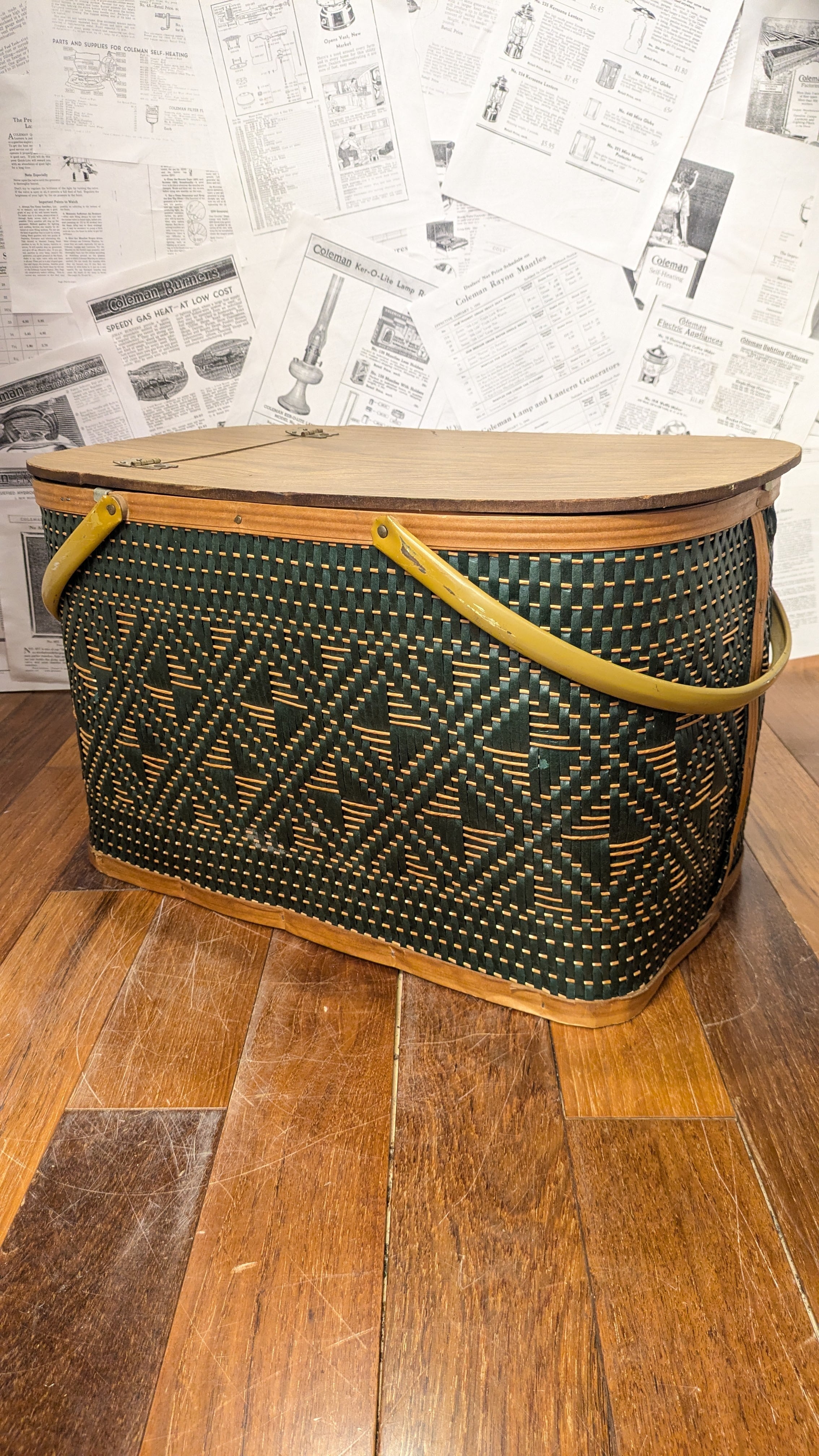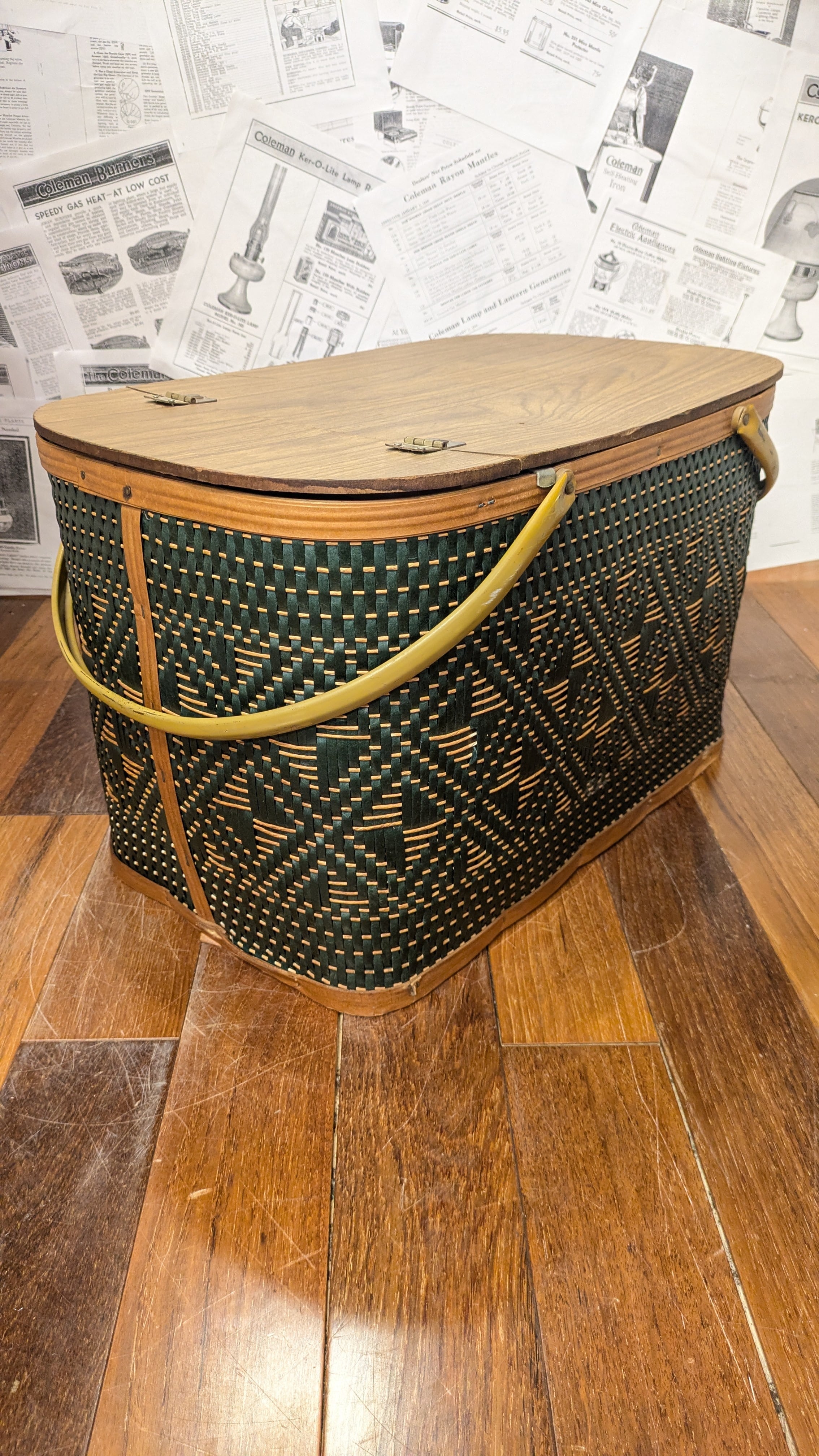 MINT!! Vintage Hawkeye PicnicBasket StorageBox Antique vintagecamping Green ビンテージ ホークアイ ピクニックバスケット 収納ボックス 籠 バスケット アメリカ ビンテージキャンプ