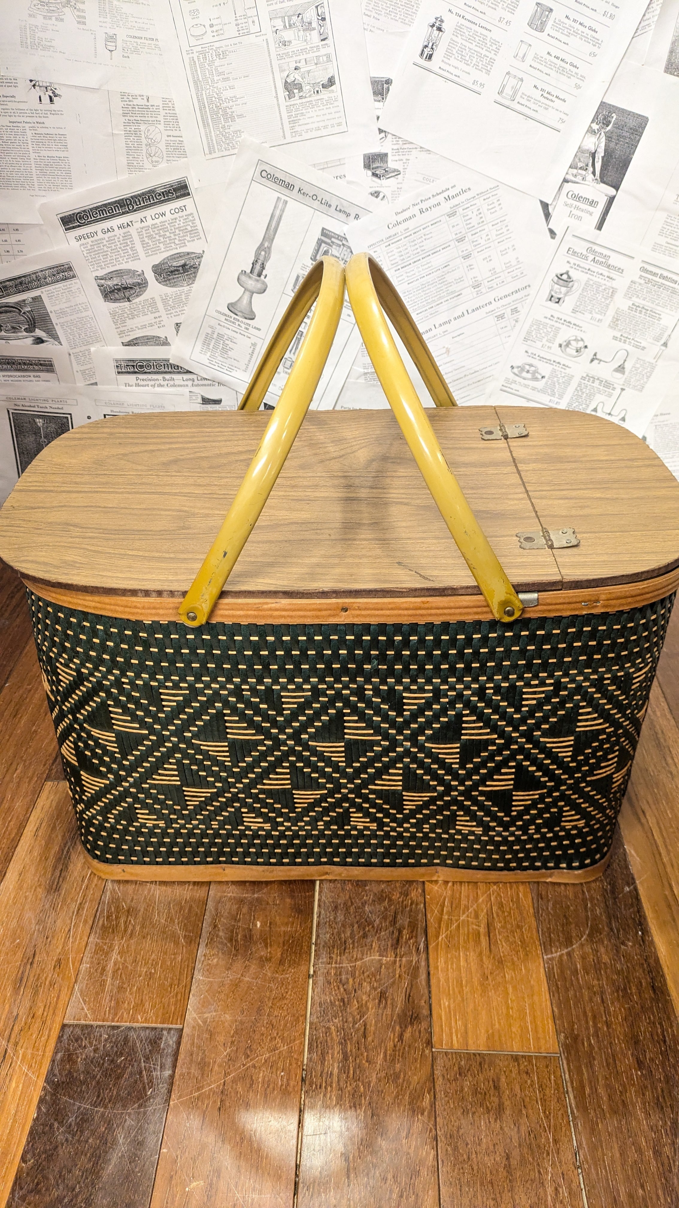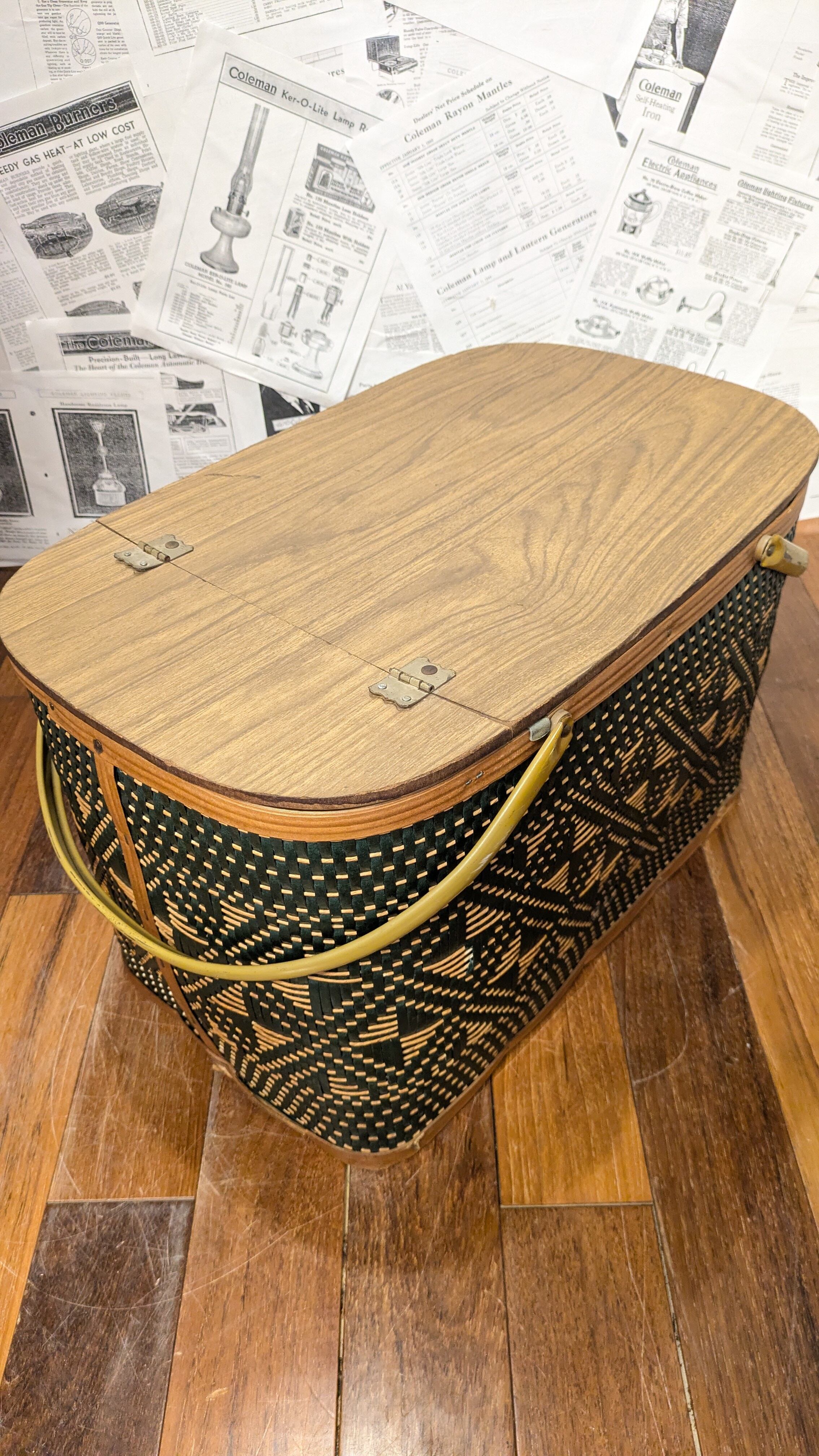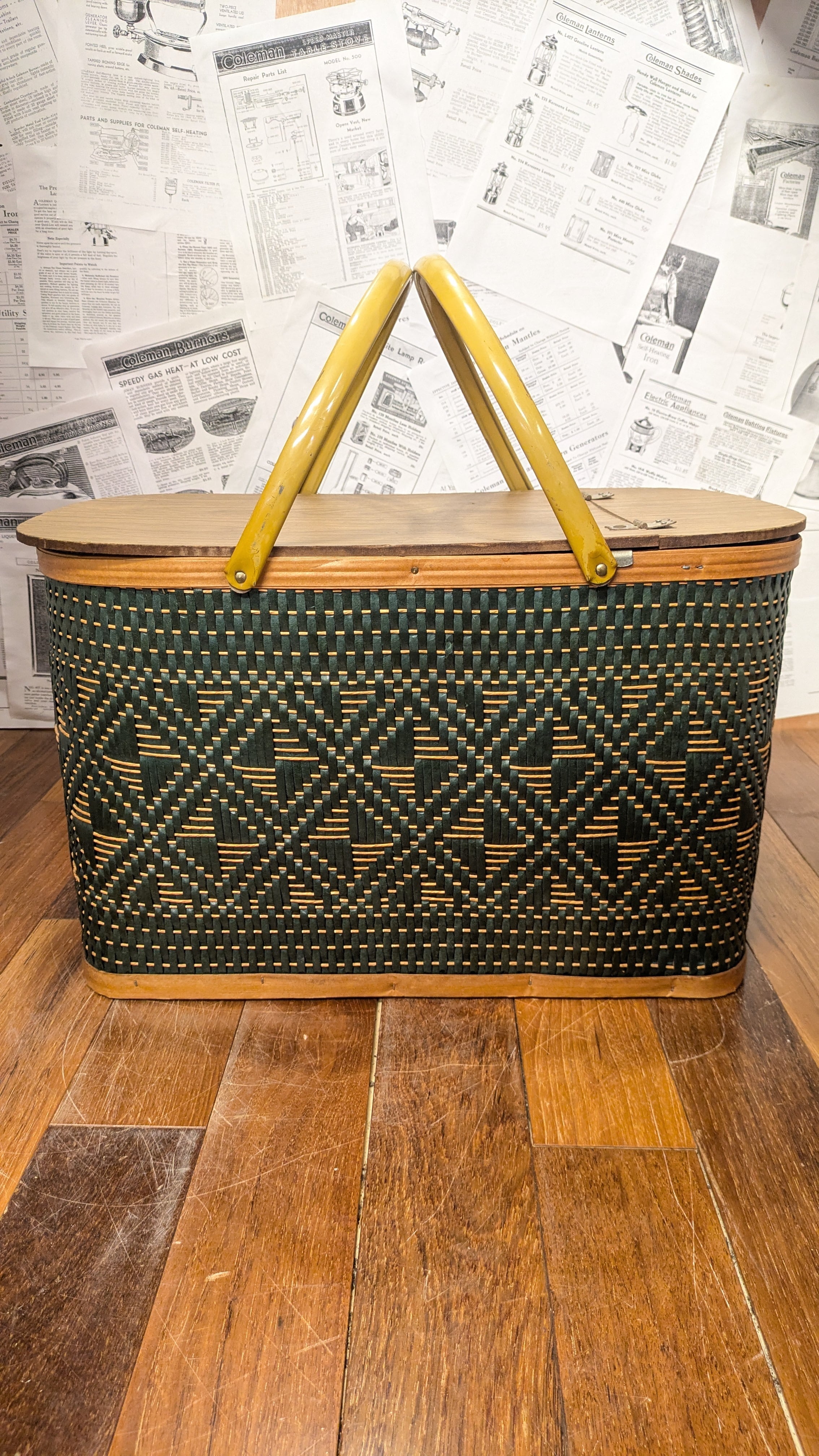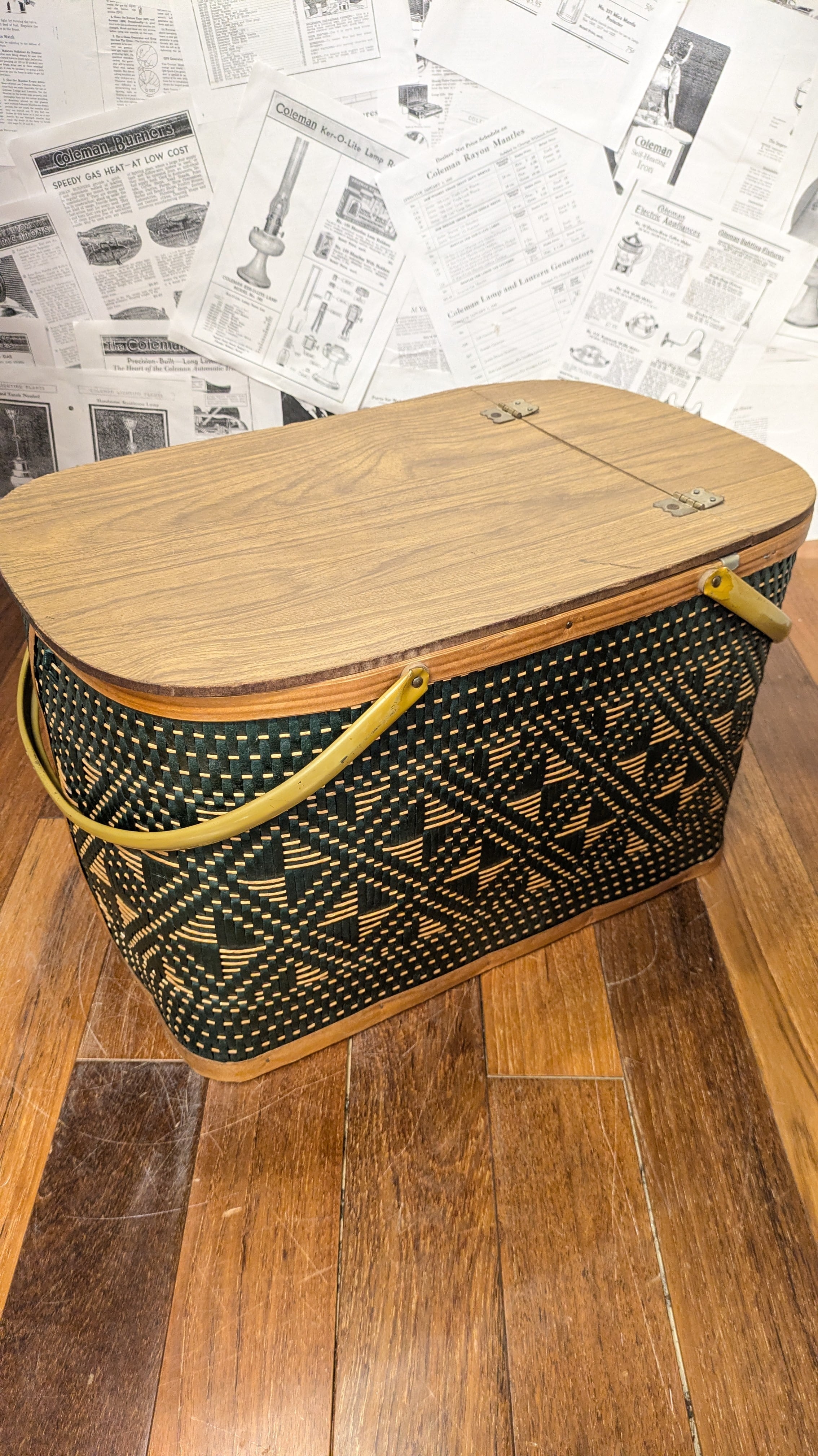 MINT!! Vintage Hawkeye PicnicBasket StorageBox Antique vintagecamping Green ビンテージ ホークアイ ピクニックバスケット 収納ボックス 籠 バスケット アメリカ ビンテージキャンプ